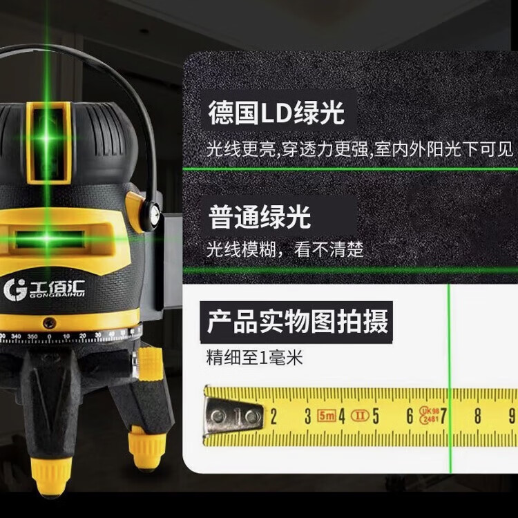 Gongbaihui level strong light green light flashing high-precision infrared laser line marking indoor and outdoor universal 2-line super green light with dual batteries - flashing