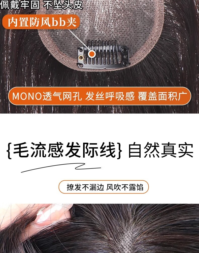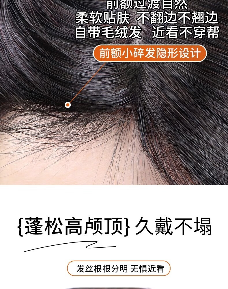 Sky Tree Silkworm Feather 0.1mm wig women's top breathable real hair seamless hair volume increase fluffy gray hair replacement piece 0.1mm feather feeling hand-woven-eight-character style 8*11 natural color