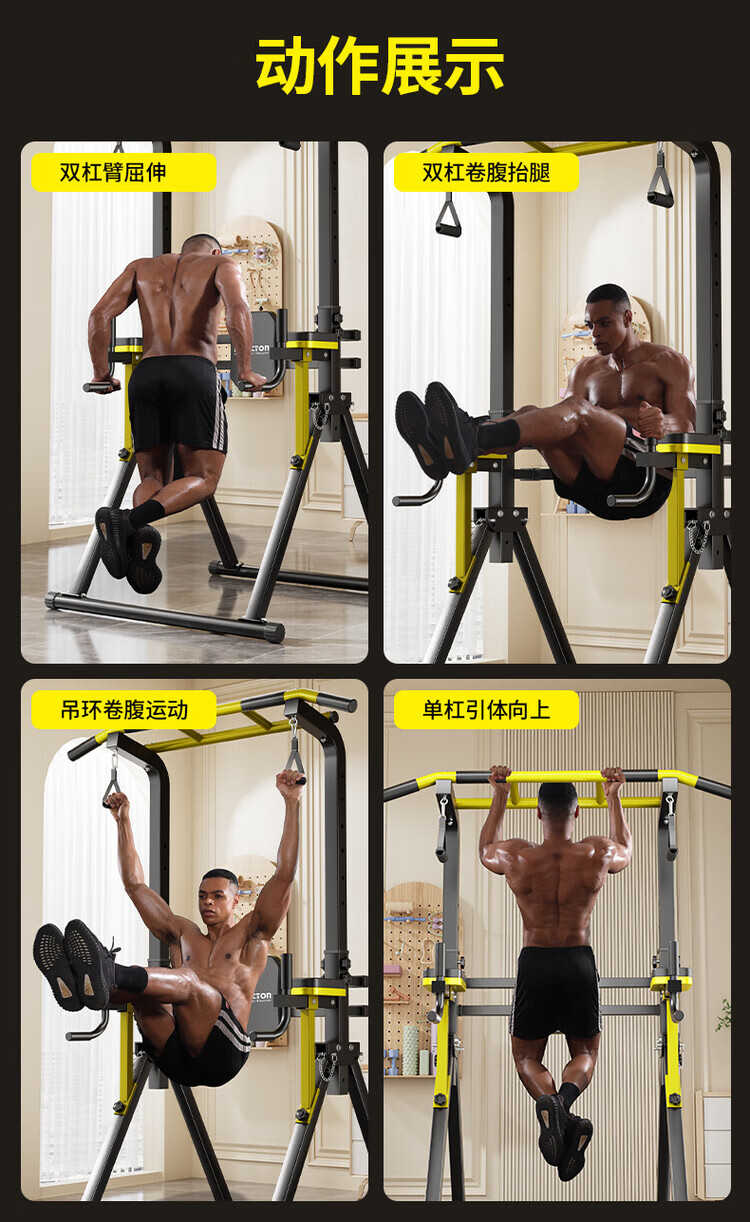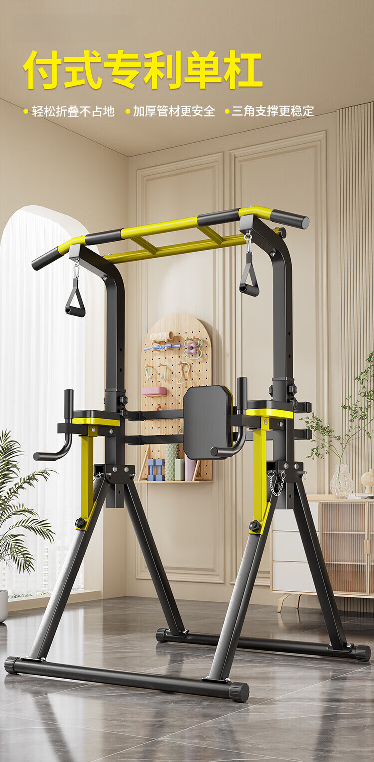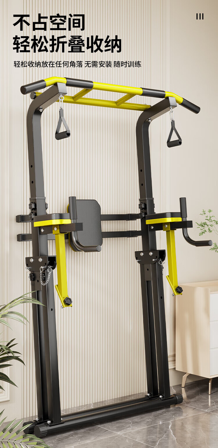 Lingluo German Folding Horizontal Bar Fitness Equipment Home Indoor Pull-Up Rack Family Children's Boom Parallel Bar Arm Flex and Extension Flagship Model - Yellow and Black + Triangular Ring + Feet Auxiliary Belt