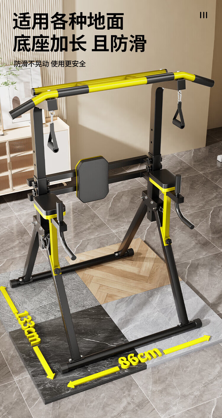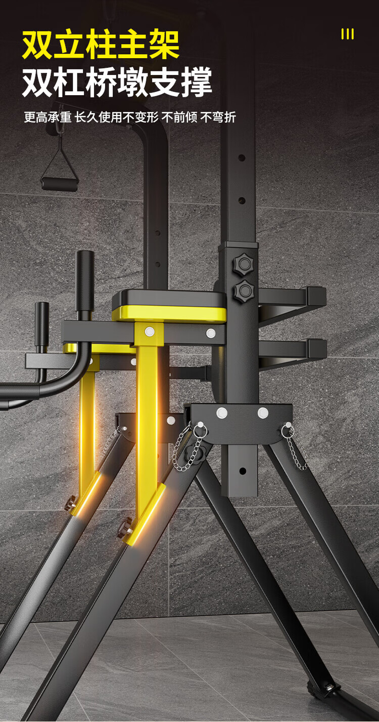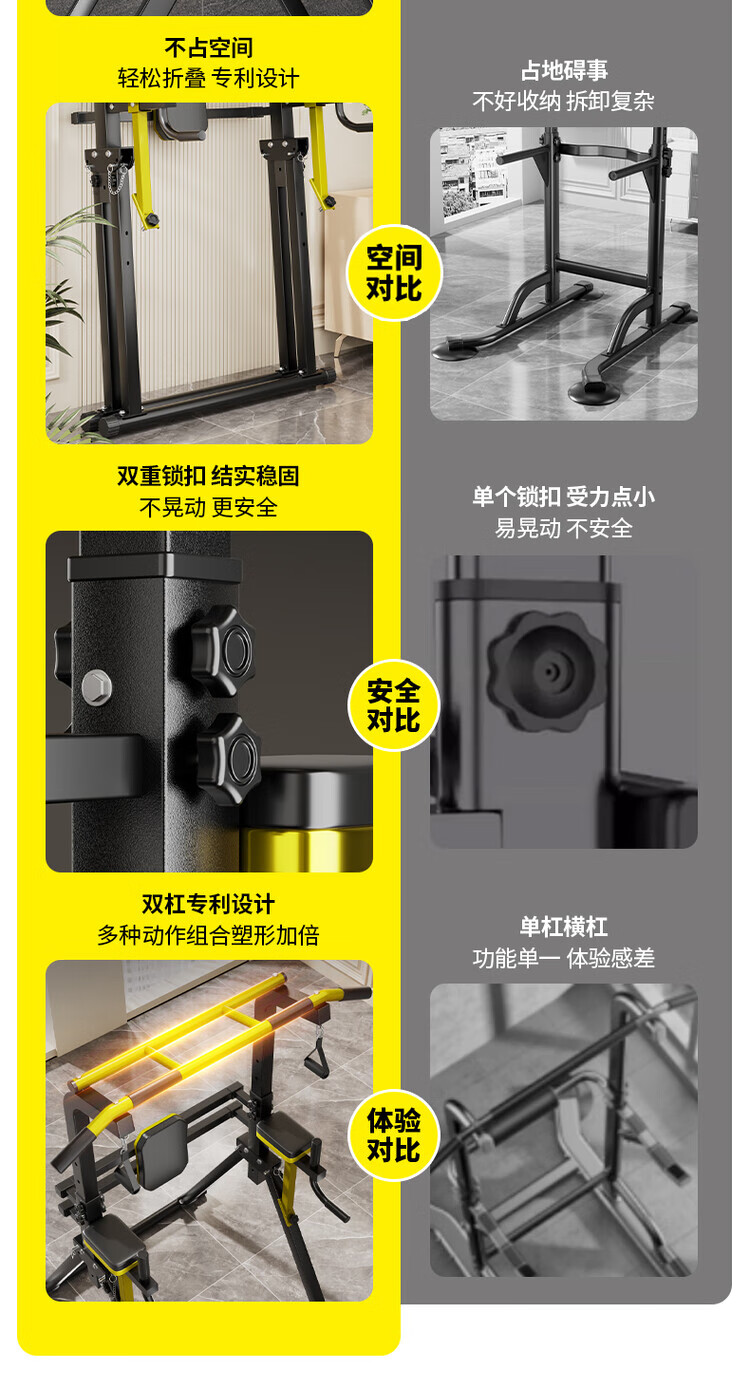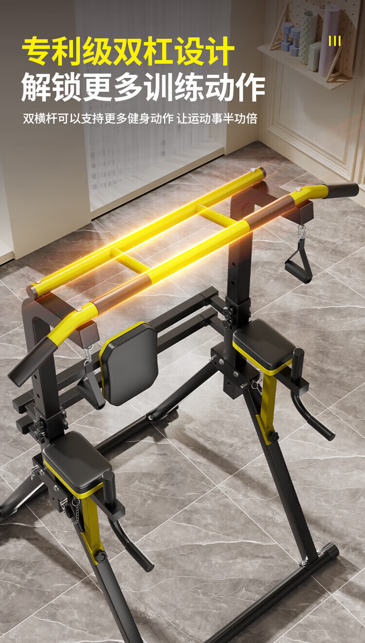 Lingluo German Folding Horizontal Bar Fitness Equipment Home Indoor Pull-Up Rack Family Children's Boom Parallel Bar Arm Flex and Extension Flagship Model - Yellow and Black + Triangular Ring + Feet Auxiliary Belt