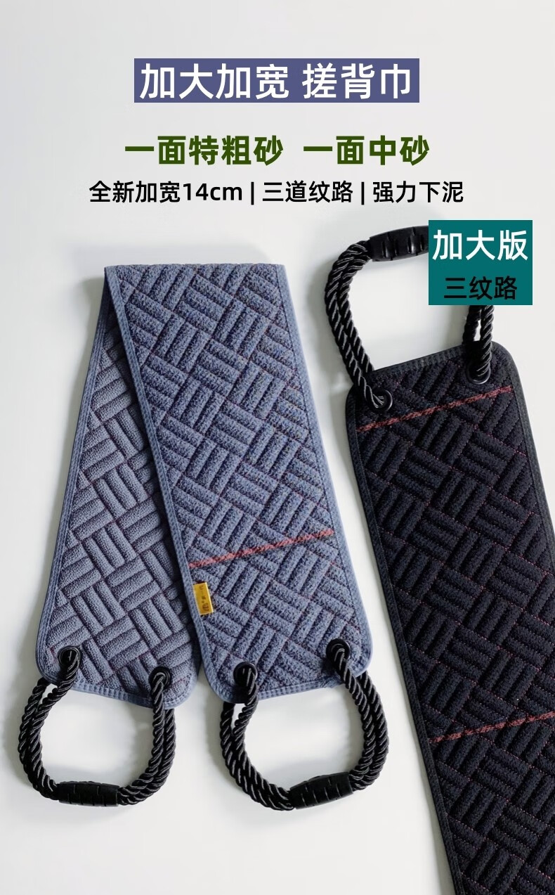 High-end quality men's special back rub towel, bath towel, strong mud rub artifact, coarse sand double-sided strip, widened gray three-texture back rub strip