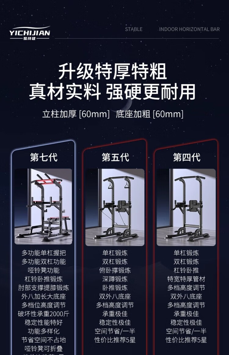 Lingluo German horizontal bar home pull-up device bench press multi-functional indoor adult sports fitness equipment comprehensive equipment Centaur seat-6 in 1 single parallel bar + foldable dumbbell bench 2.4 meters