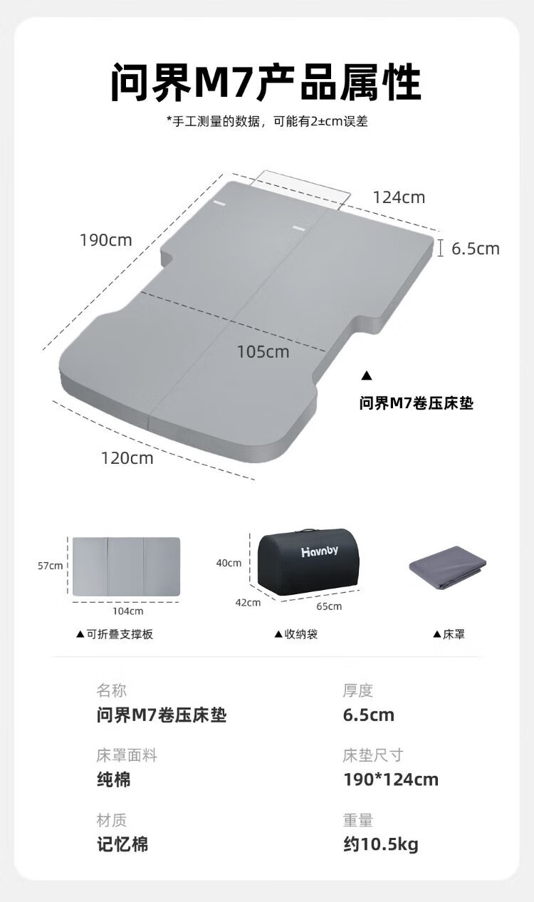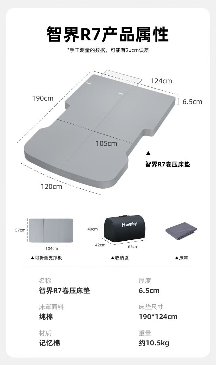 Havnby Anwen white is suitable for M7 Zhijie R7 car mattress trunk camping non-inflatable sleeping memory foam Zhijie R7 double rolled model (with dark bed cover) with dark bed cover