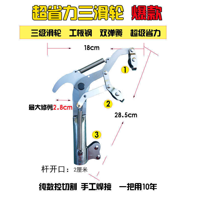 Qinkai high-altitude tree pruning artifact, fruit-picking artifact, longan scissors, high-branch shears, telescopic pole, high-altitude pruning scissors, extended, super labor-saving three-wheel shears (no rope)