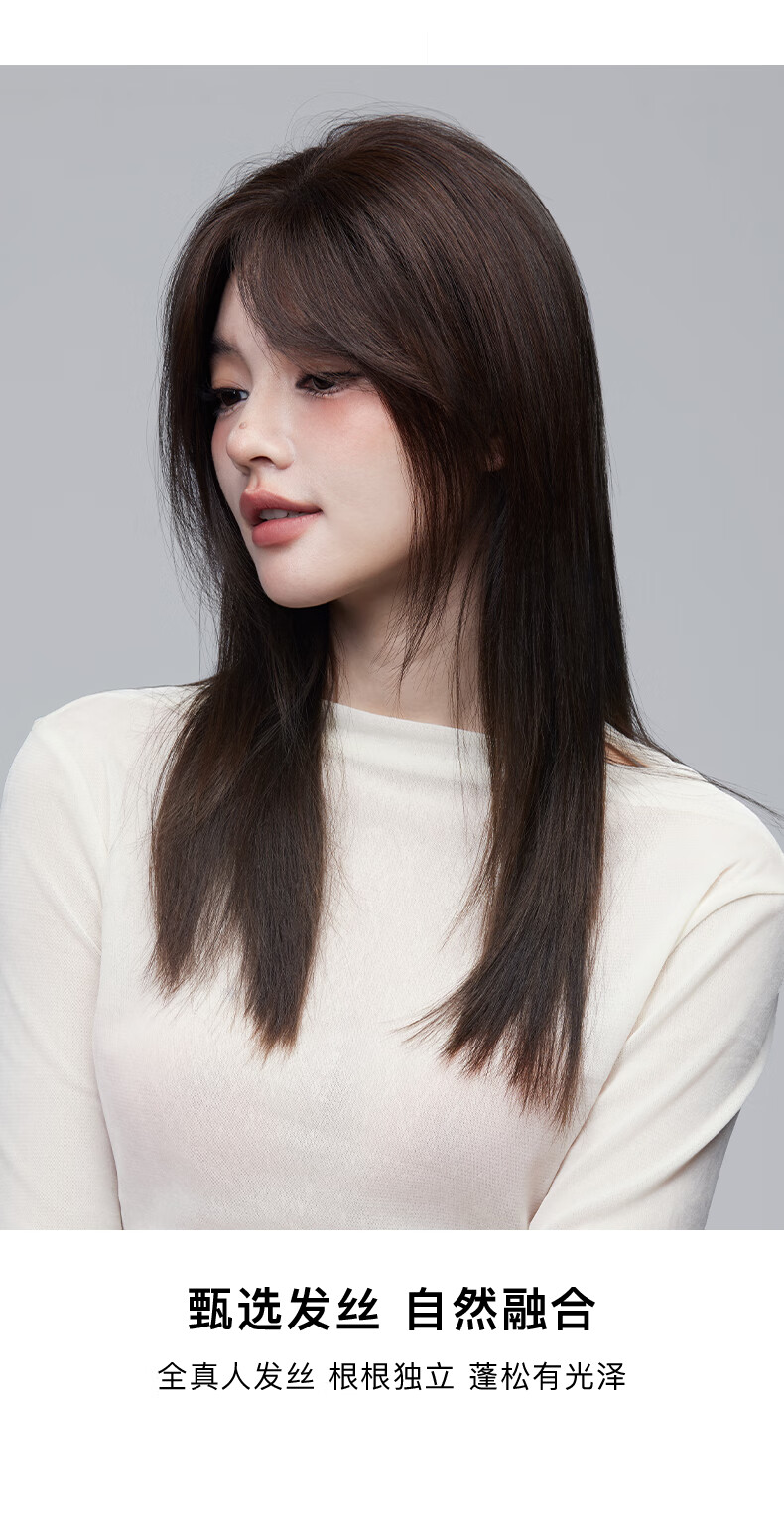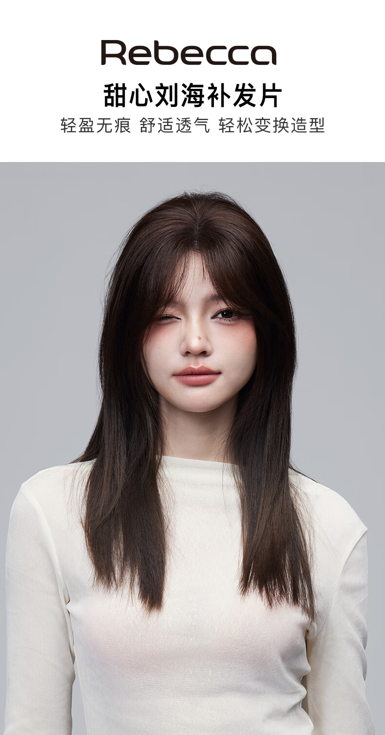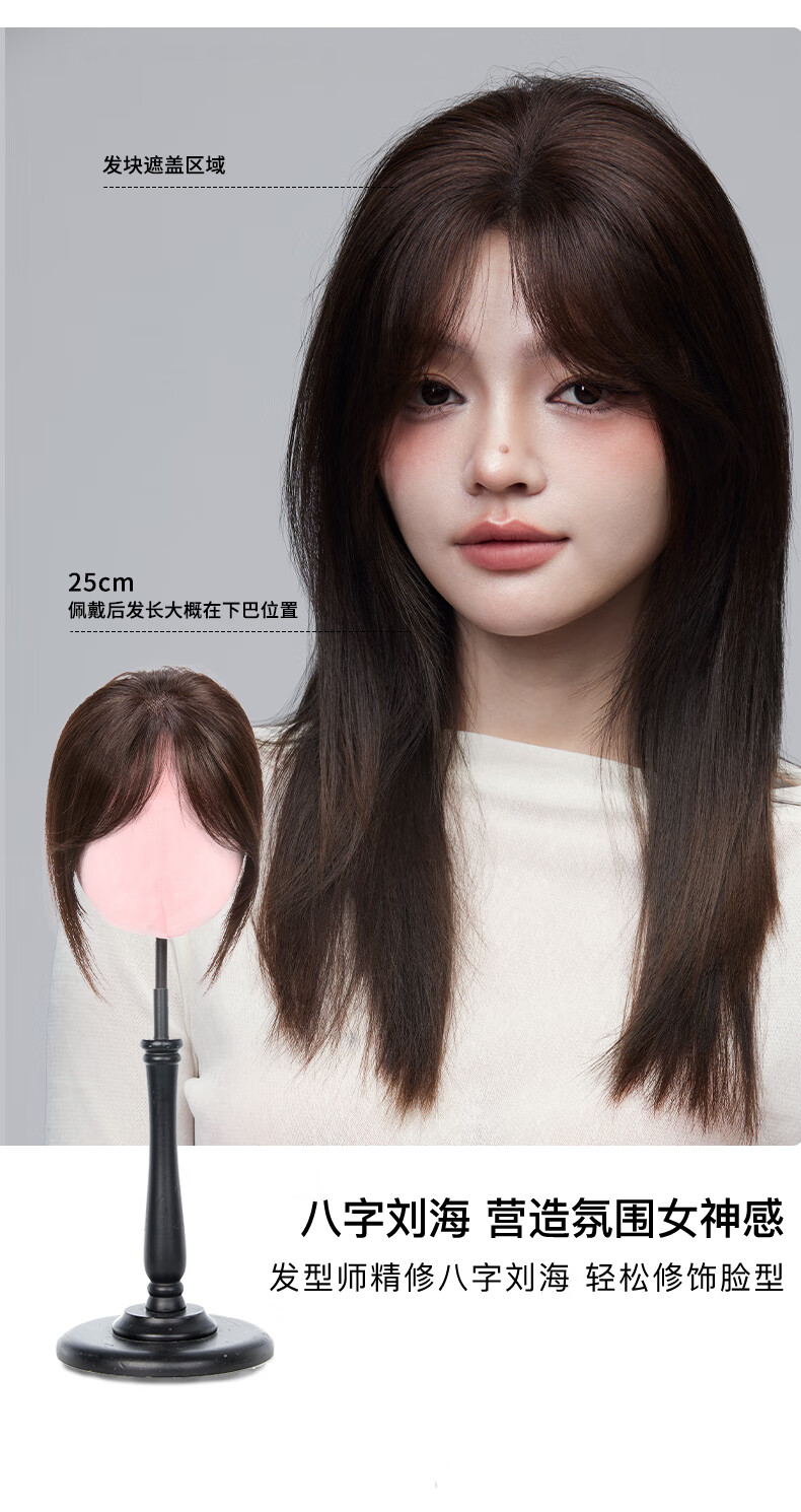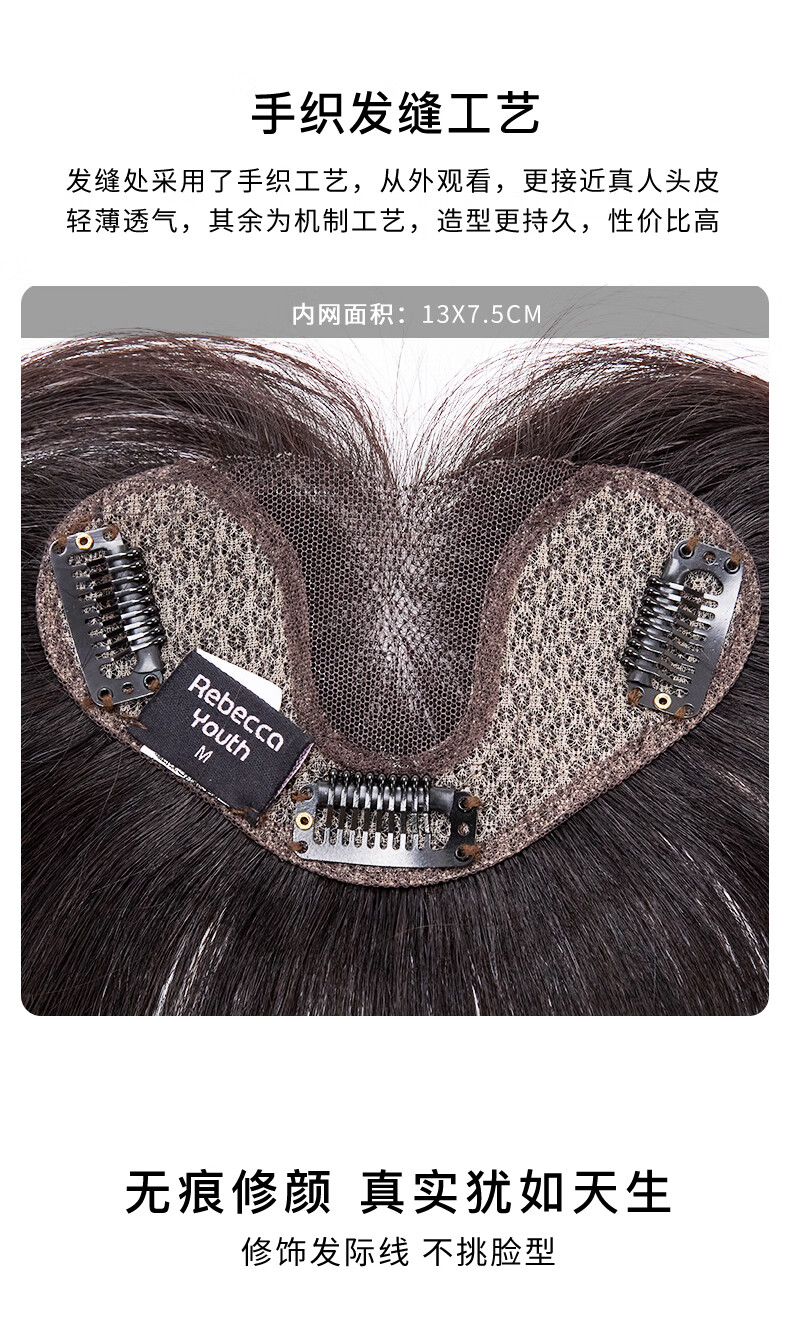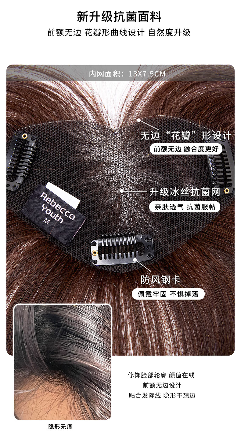 Rebecca (Rebecca) wig female bangs wig piece human hair imported Swiss mesh top hair extension cover white hair high skull wig piece eight-character bangs dark brown 25cm hand-woven hair seam