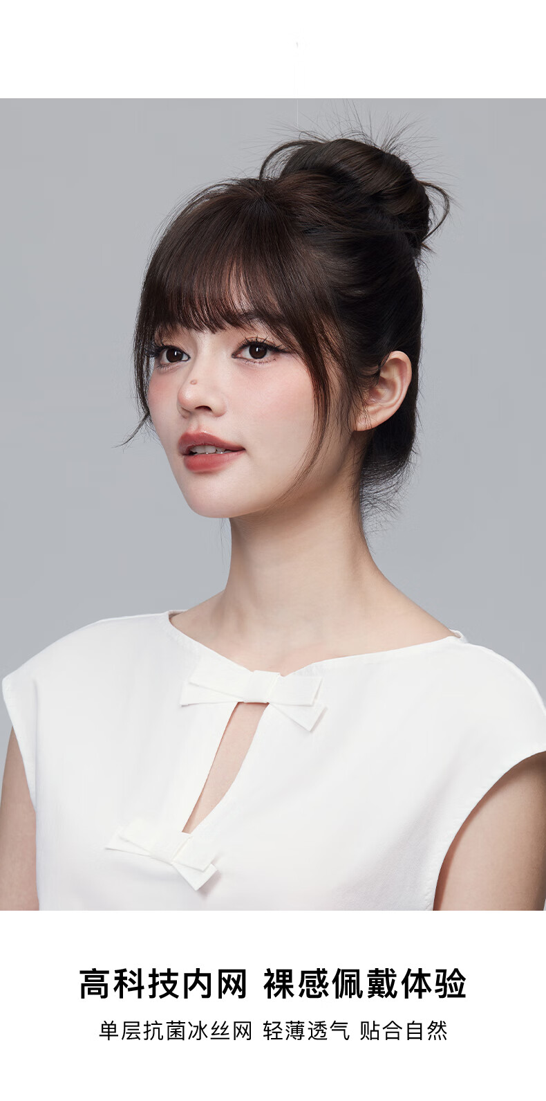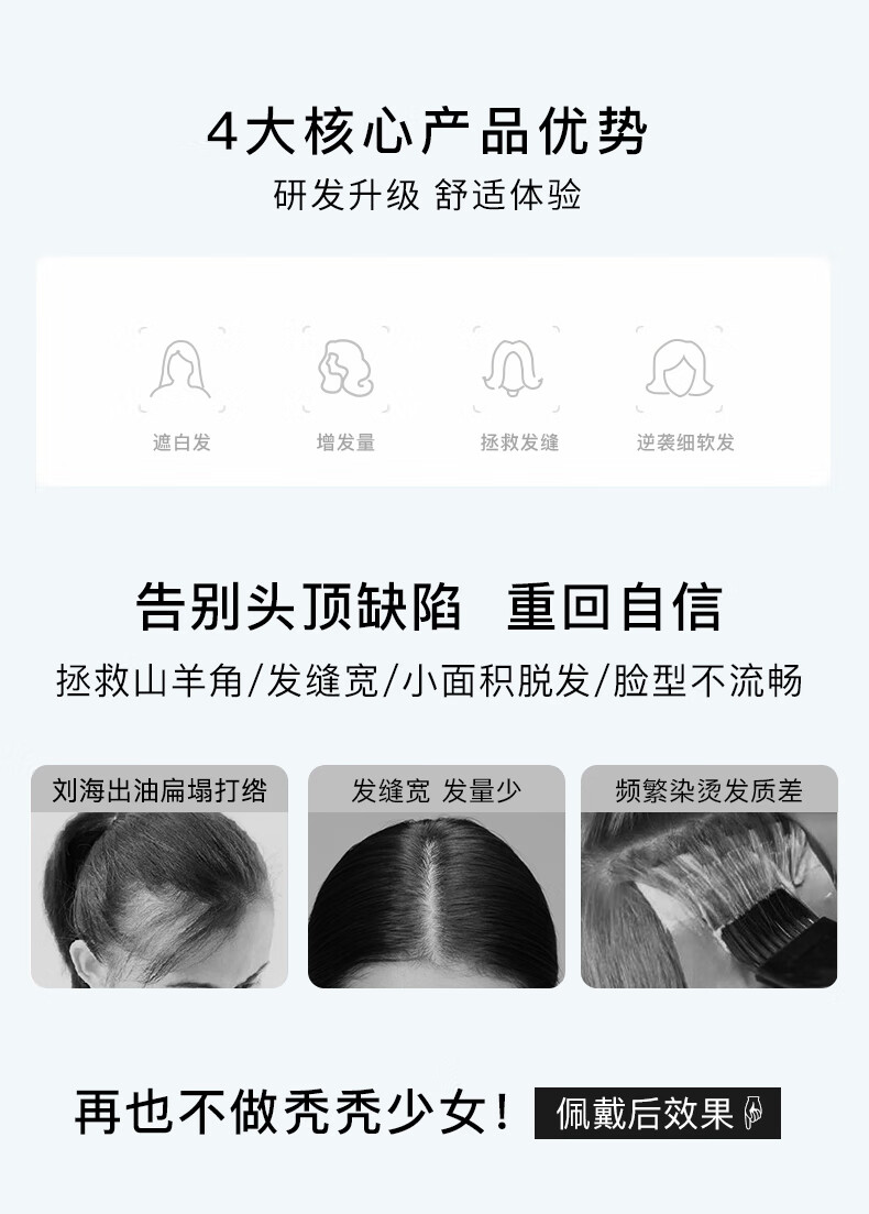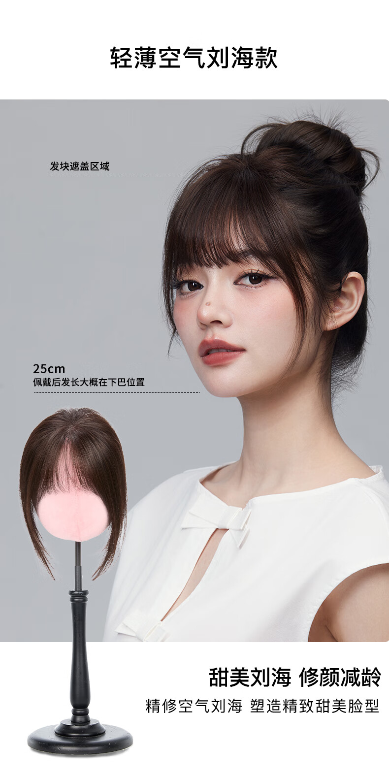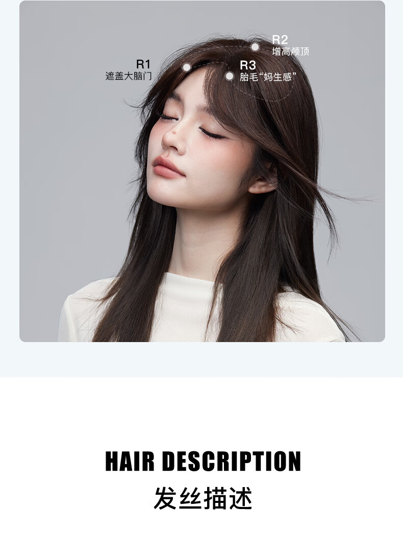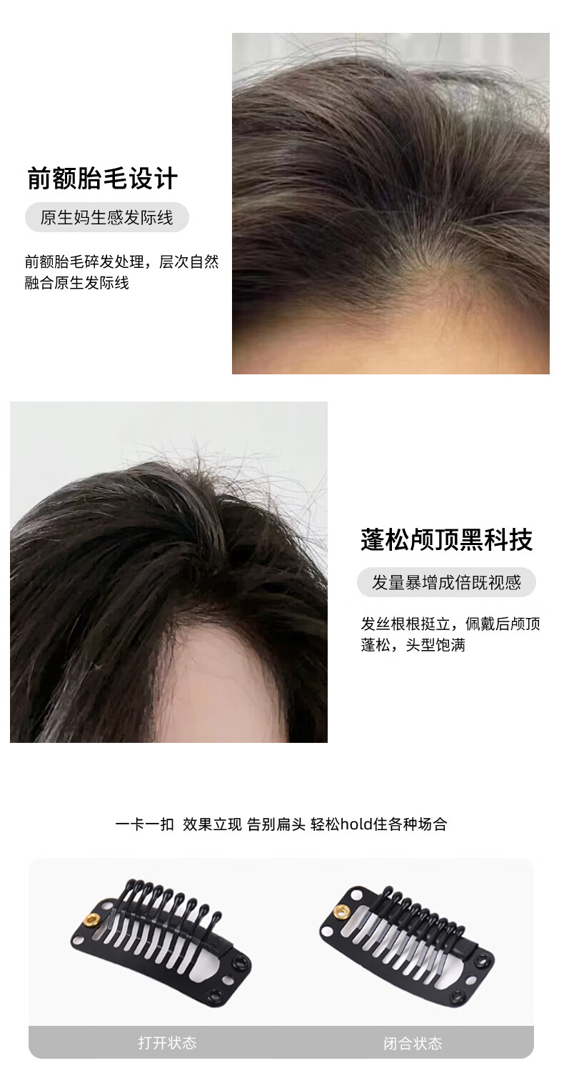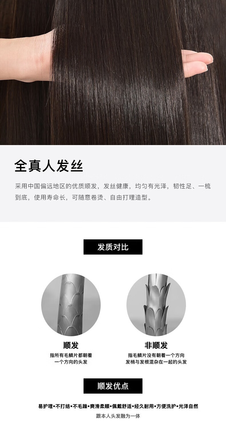 Rebecca (Rebecca) wig female bangs wig piece human hair imported Swiss mesh top hair extension cover white hair high skull wig piece eight-character bangs dark brown 25cm hand-woven hair seam