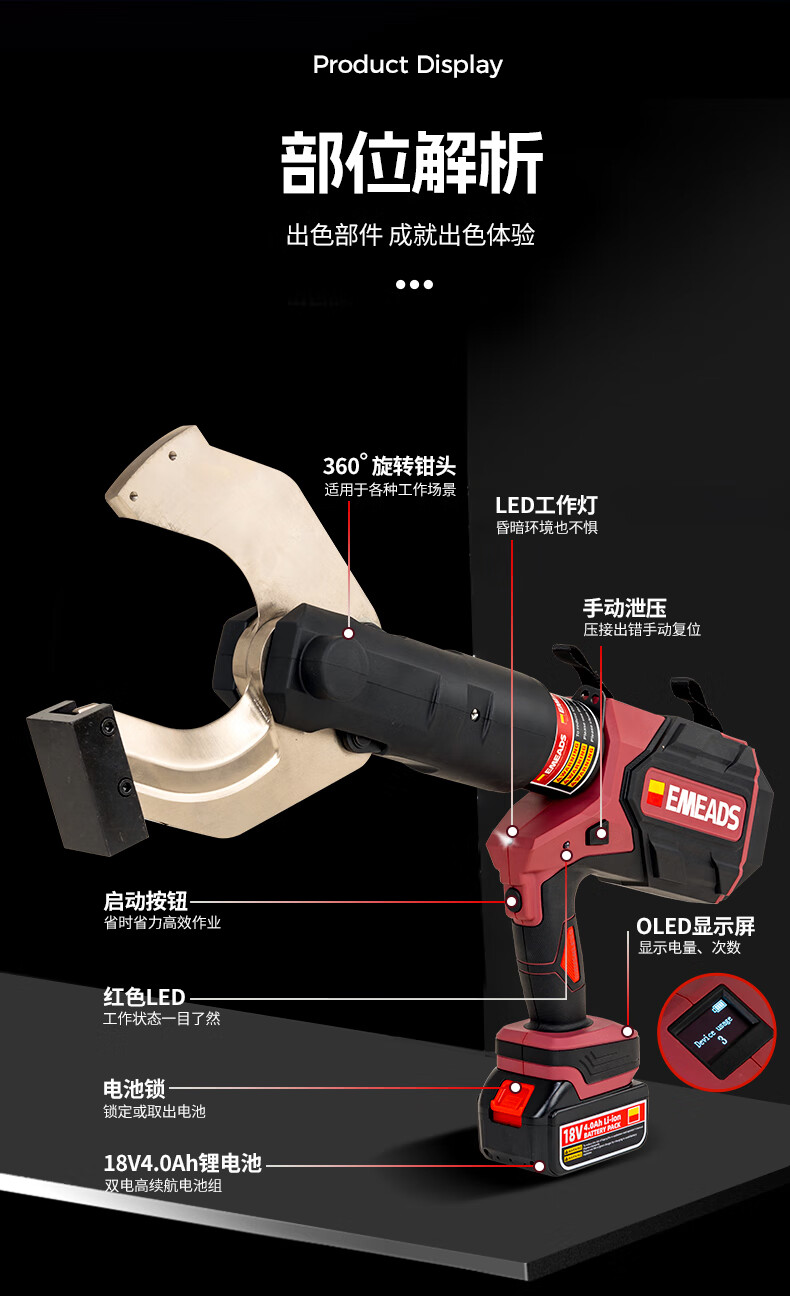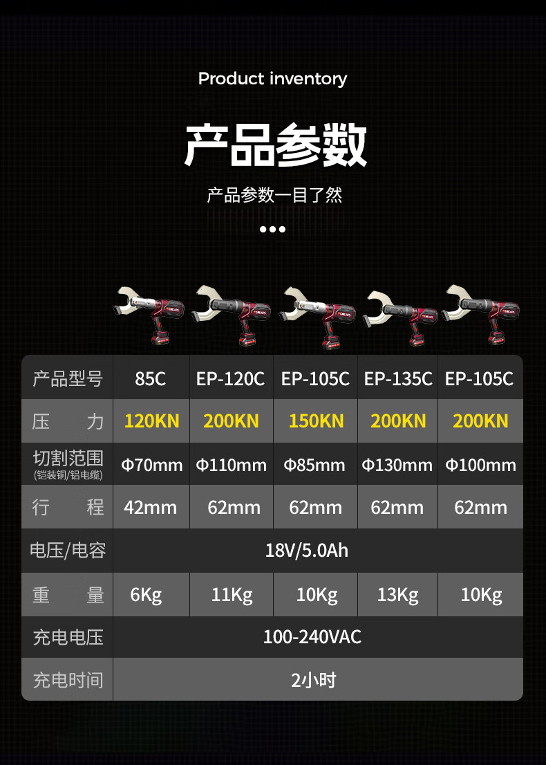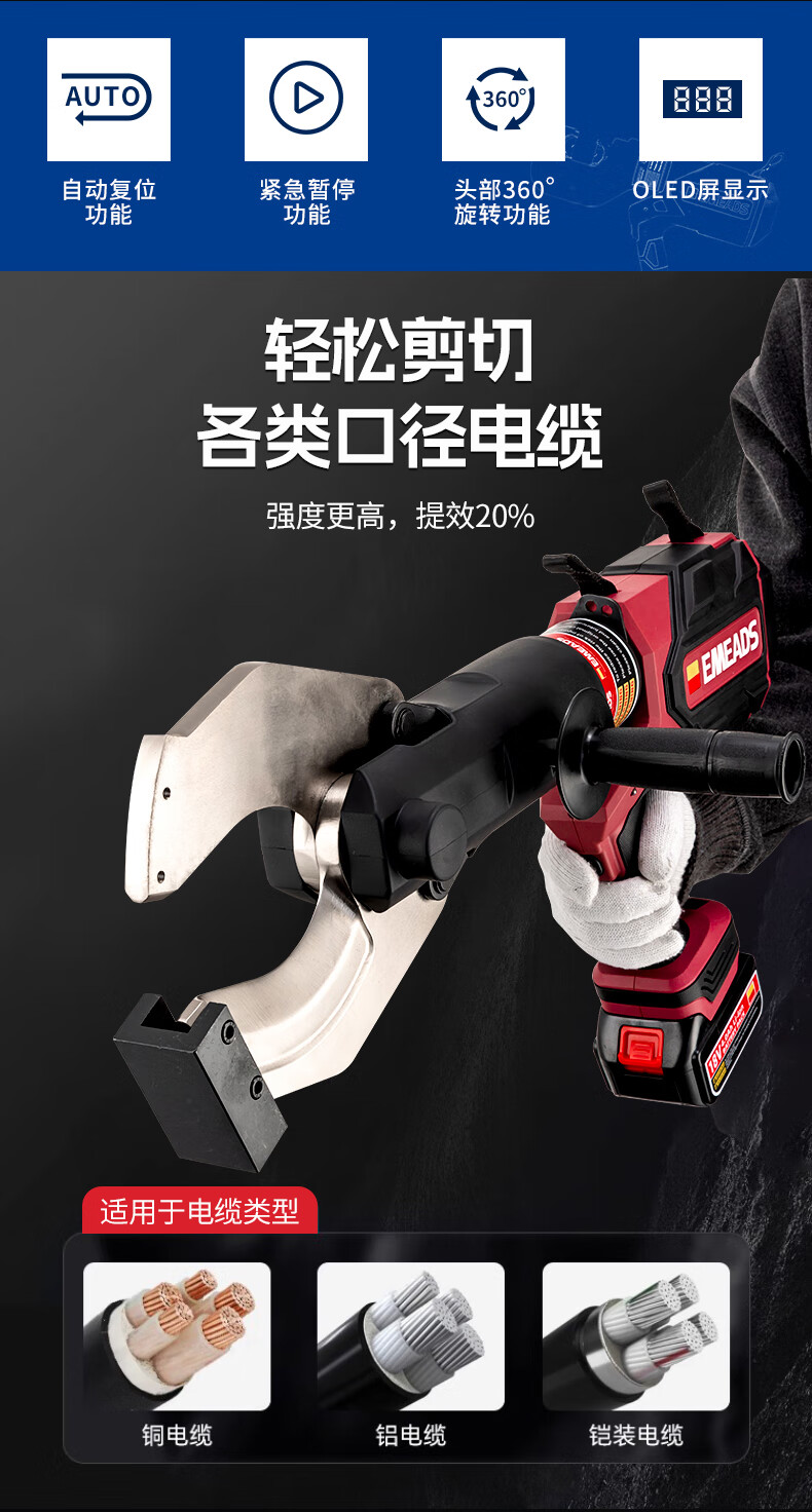 IMIZ Electric Hydraulic Scissors Hydraulic Cable Cutter Rechargeable Brushless Wire Cutter Cable Special for Cable Cutting Digital Display Continuous EP-85C+ Brushless Motor One-button Start Two Batteries and One Charge