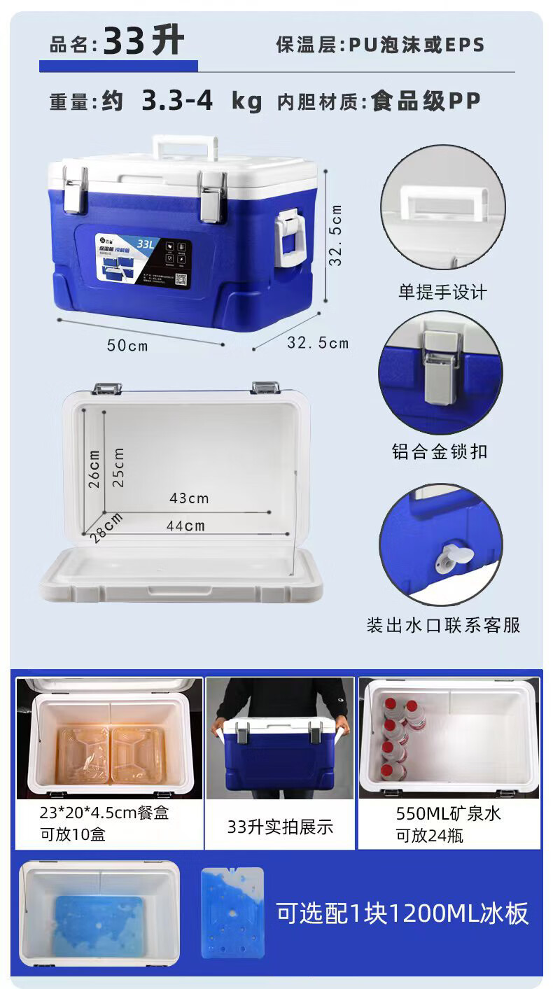 Sentai Insulated Box Large Capacity Food Grade Vehicle Mounted Outdoor Commercial Household Stall Takeaway Food Delivery Insulated Seafood Refrigerator 33 Liters