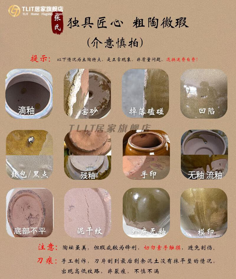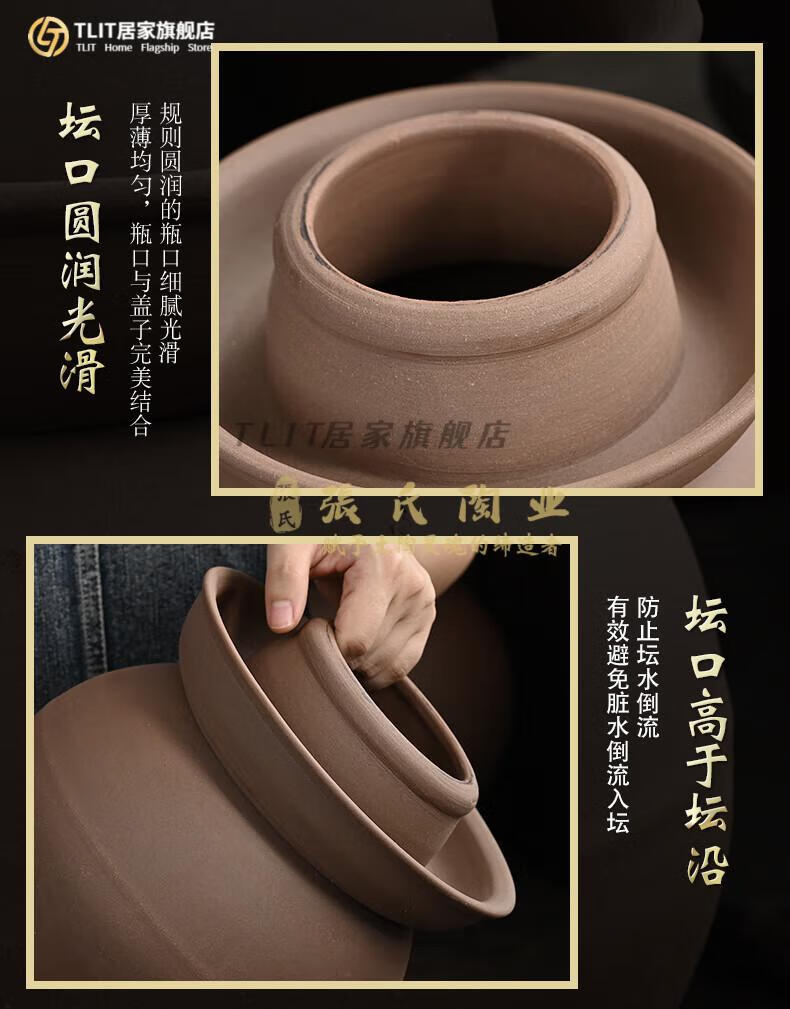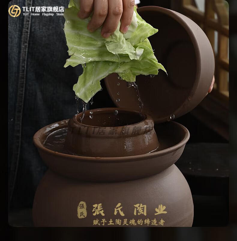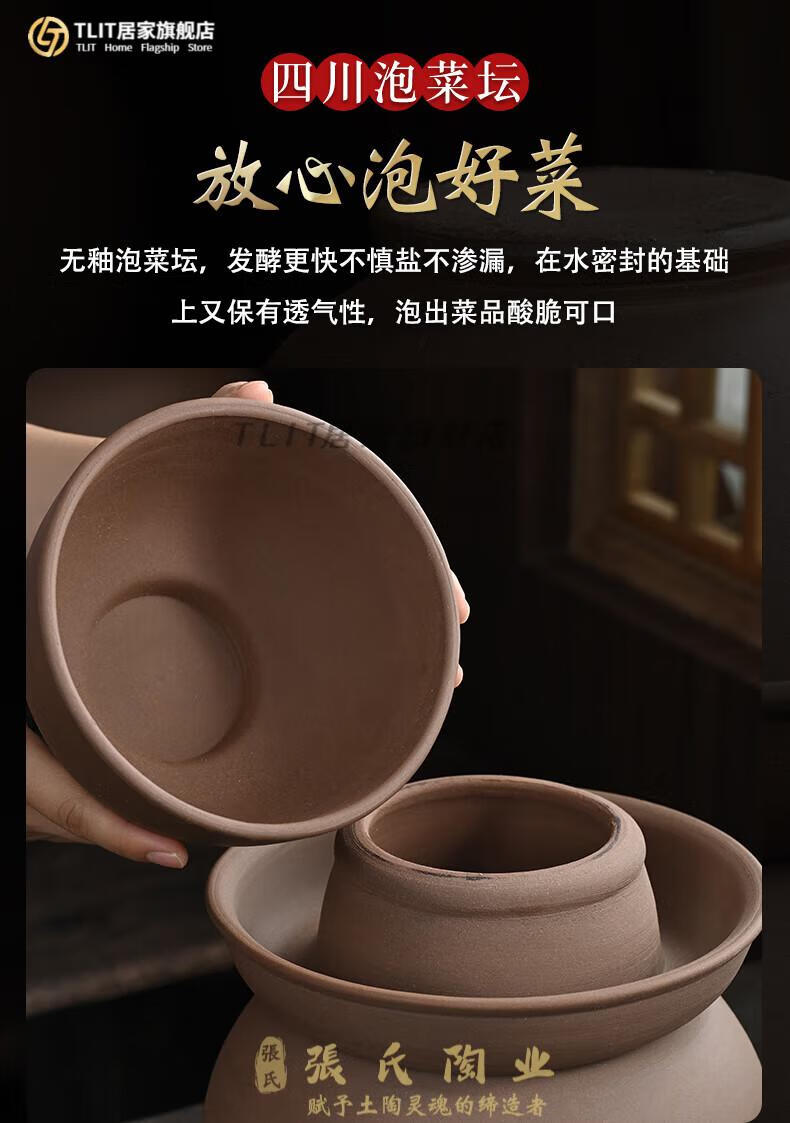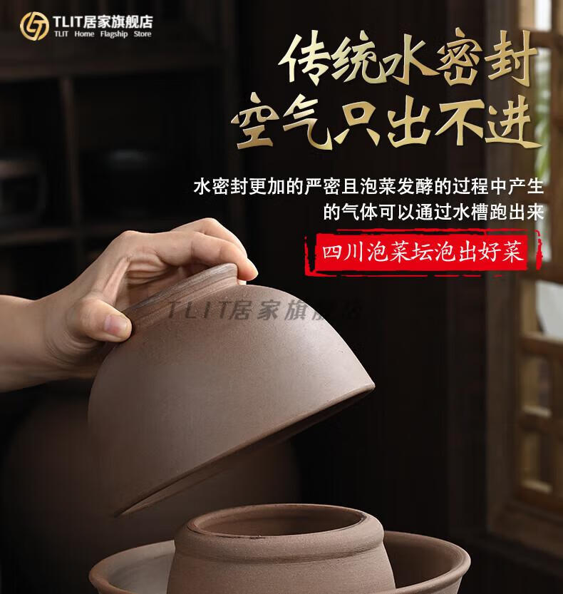 TLIT Jingdezhen Sichuan pickle jar unglazed sealed lidded pickled pickles earthenware small household ceramic old-fashioned pickling 20/catties water capacity unglazed pickle jar