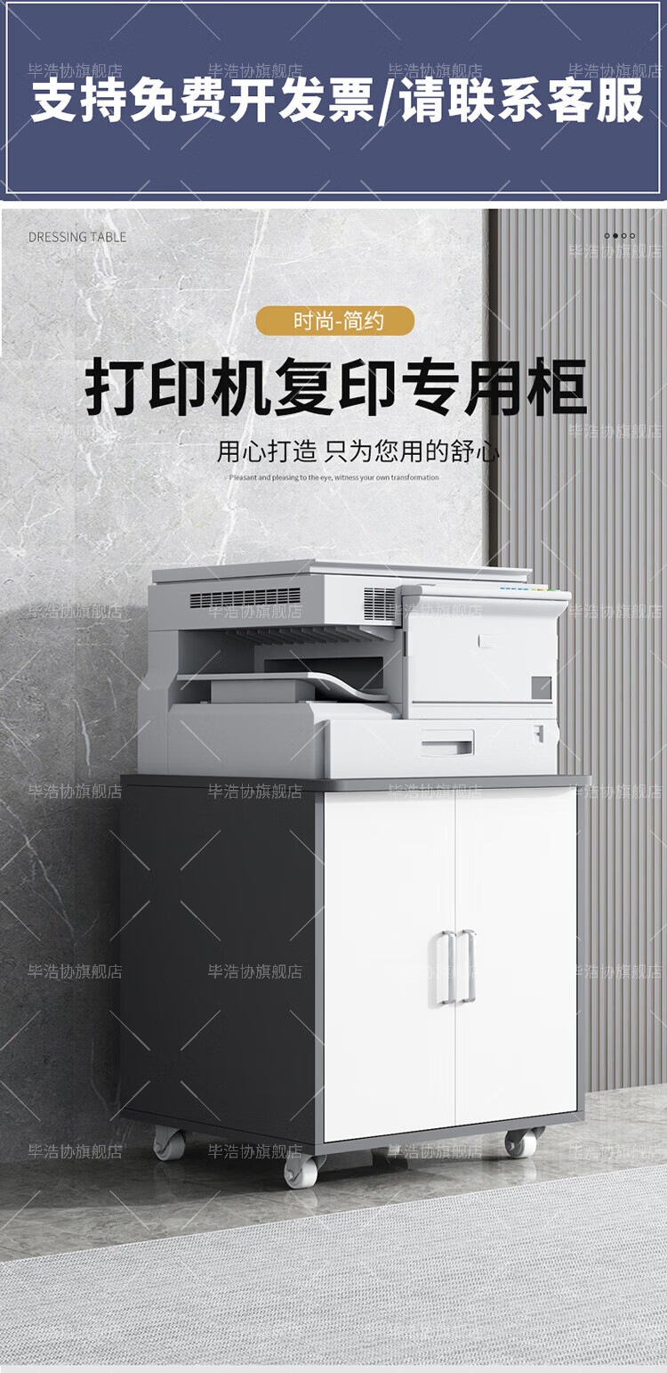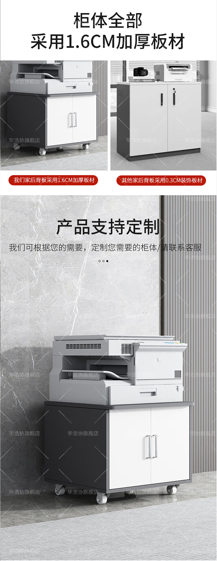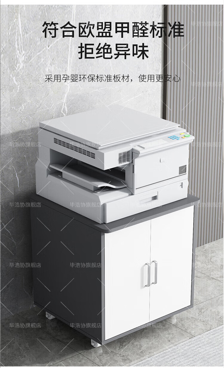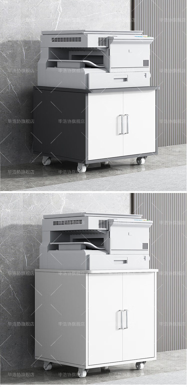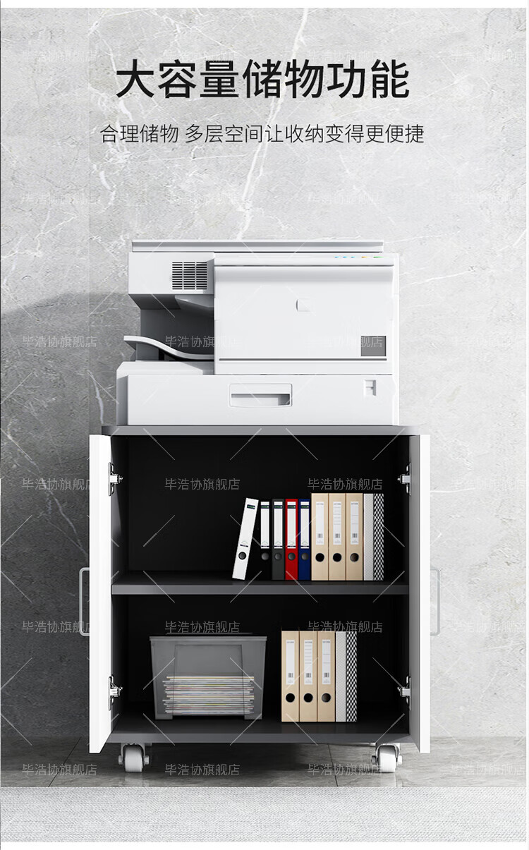 Zimuyaju printer cabinet A3 copy cabinet rounded corners mobile base cabinet locker file cabinet information cabinet glass door customization 60 high gray plus white