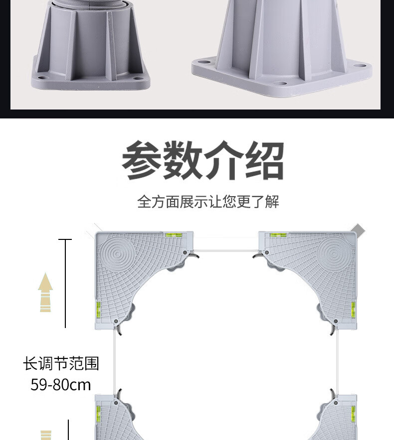 Washing machine support base universal mobile rack semi-automatic double cylinder double cylinder heightening moisture-proof bracket storage rack gray double cylinder extension tube 8 feet
