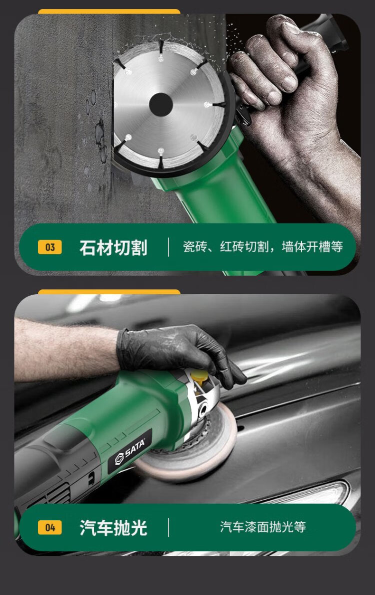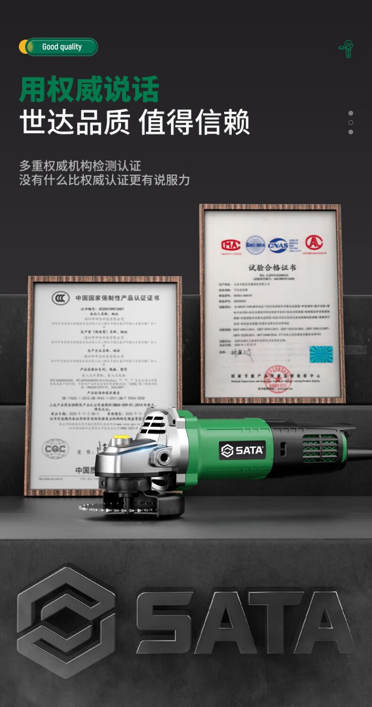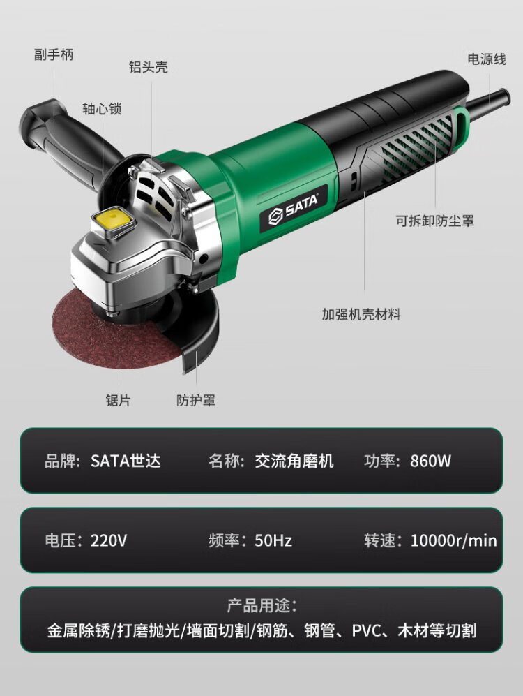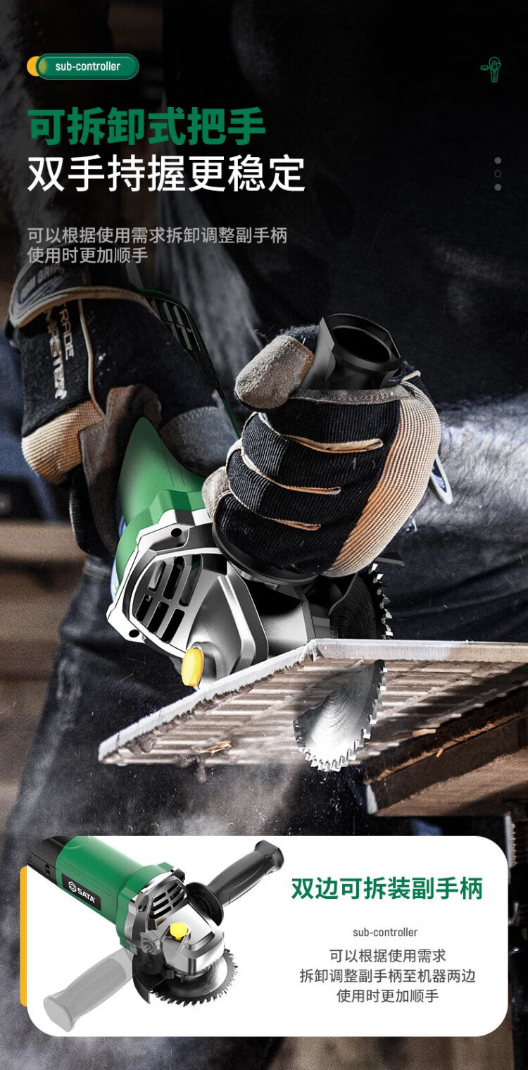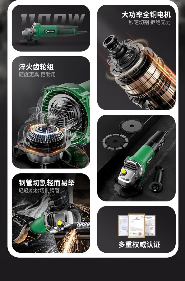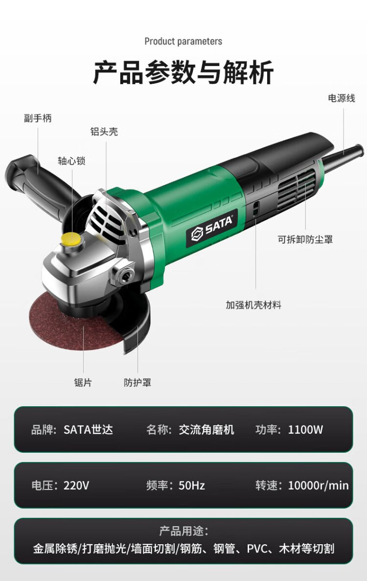 SATA angle grinder multi-function cutting machine household high-power hand grinder polishing machine polishing machine (industrial model/1100W) SC51312 basic package