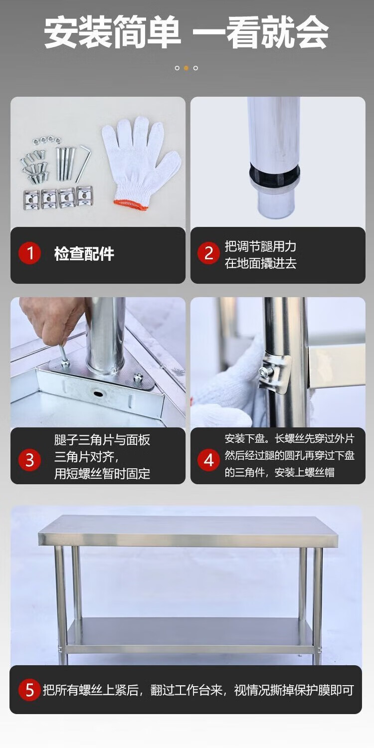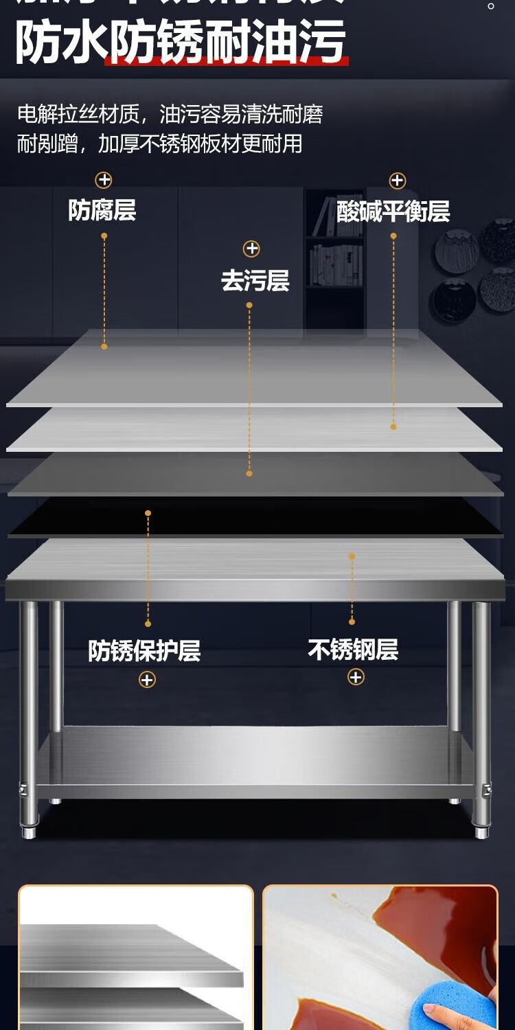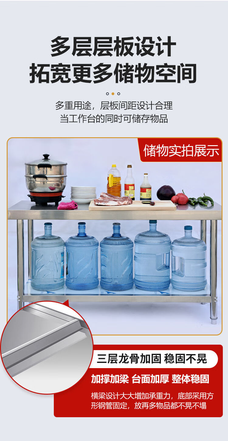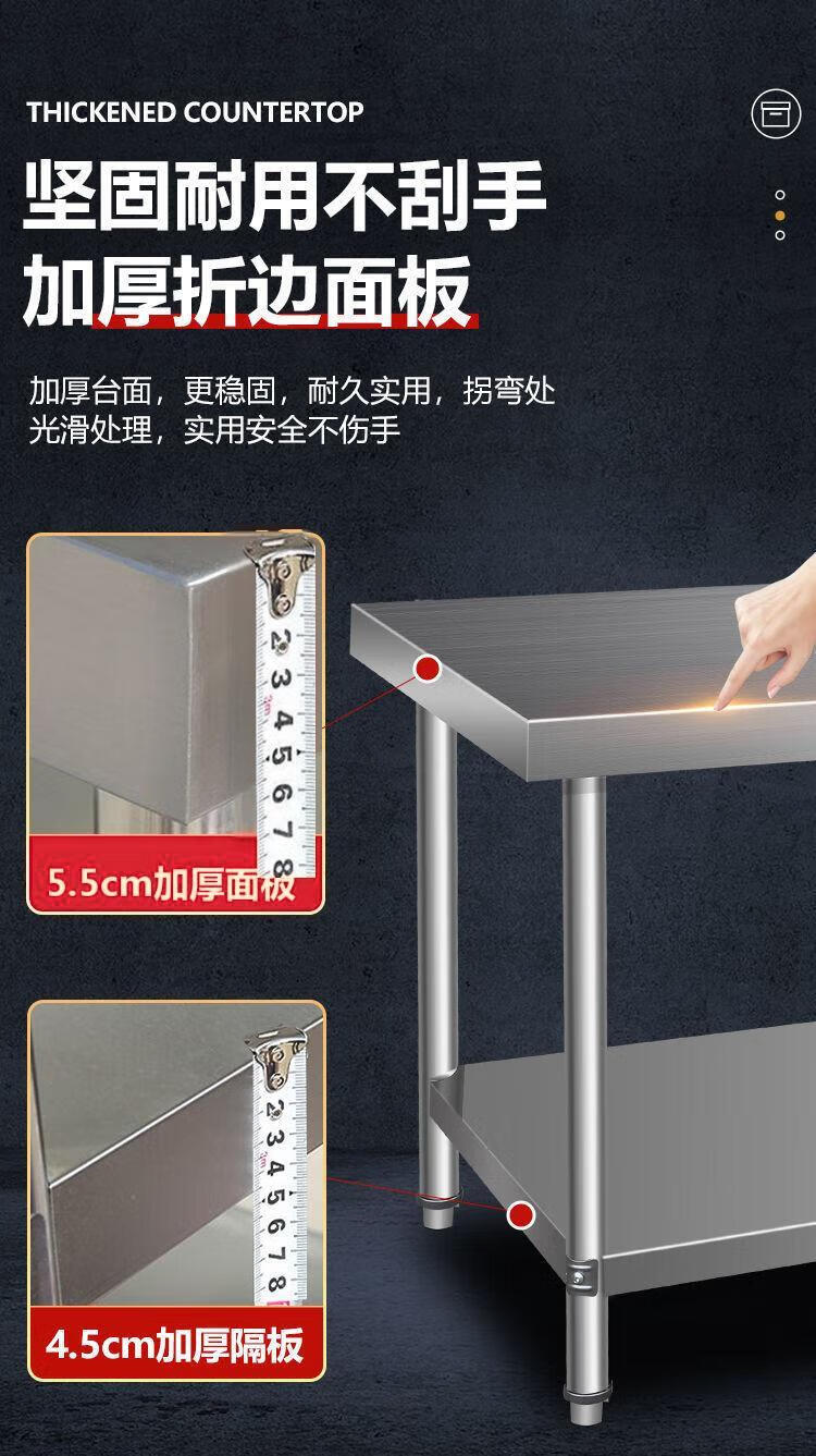 Thickened stainless steel workbench, kitchen workbench, multifunctional vegetable cutting table, commercial customizable loading table, packing table, single layer (no density board), length 150*width 70*height 80cm