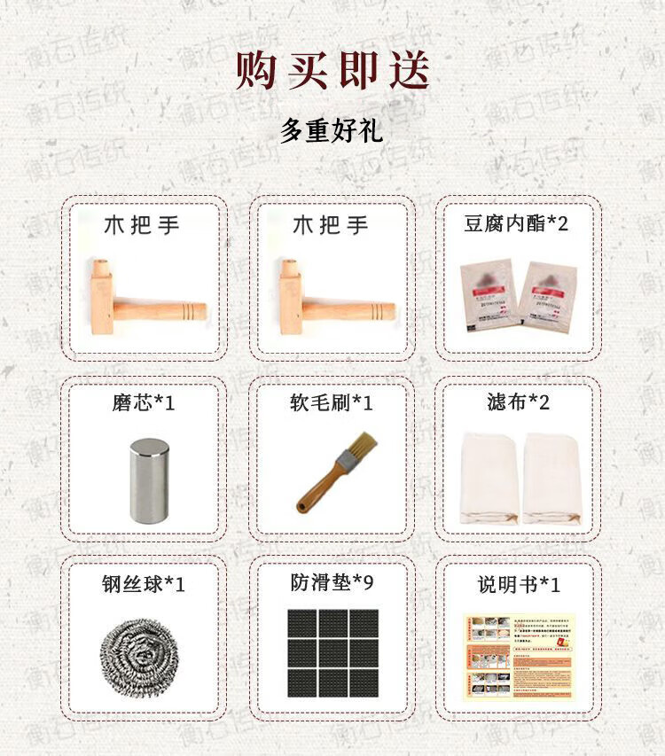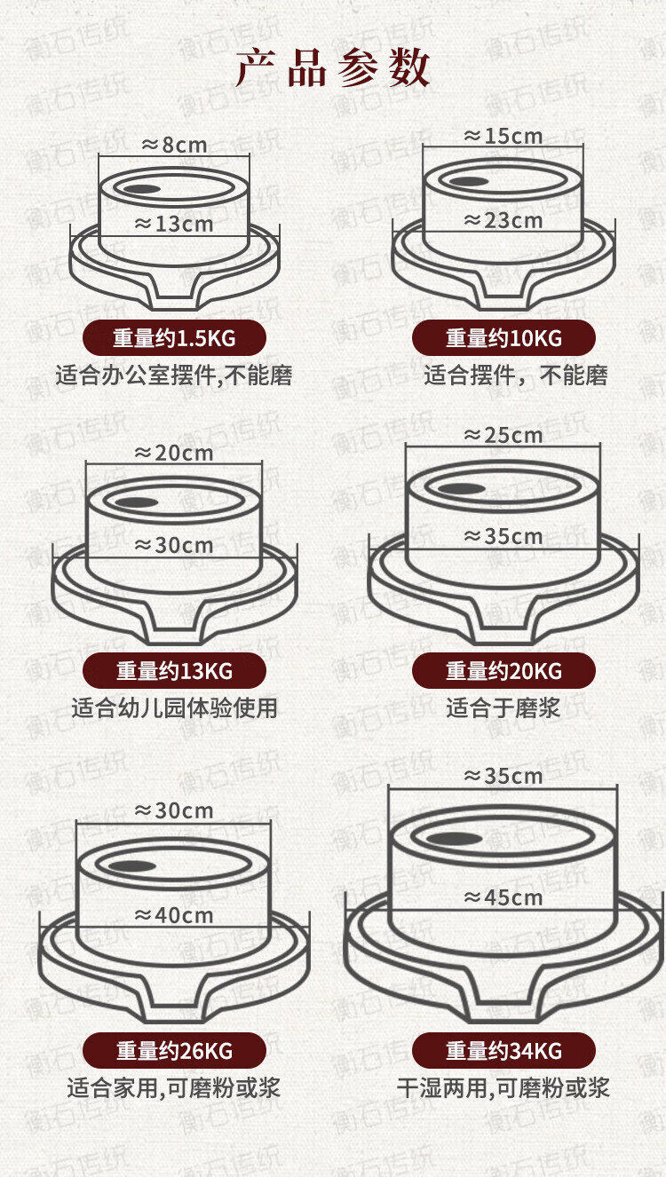 Small stone mill household millstone natural millstone hand push old bluestone granite handmade small intestine powder machine rice pulp machine new thickened 25*35cm + thickness adjustment shaft