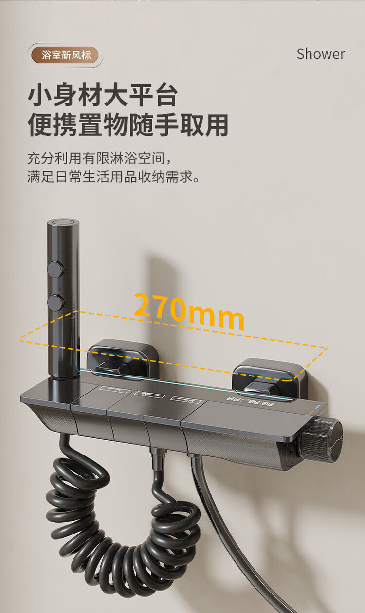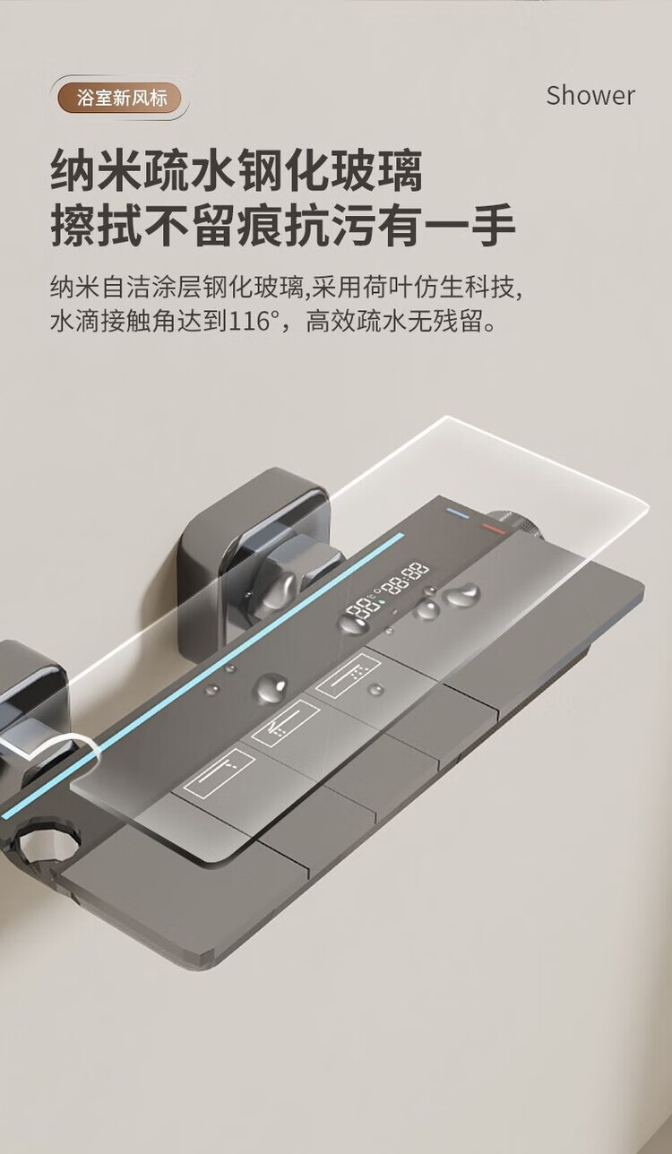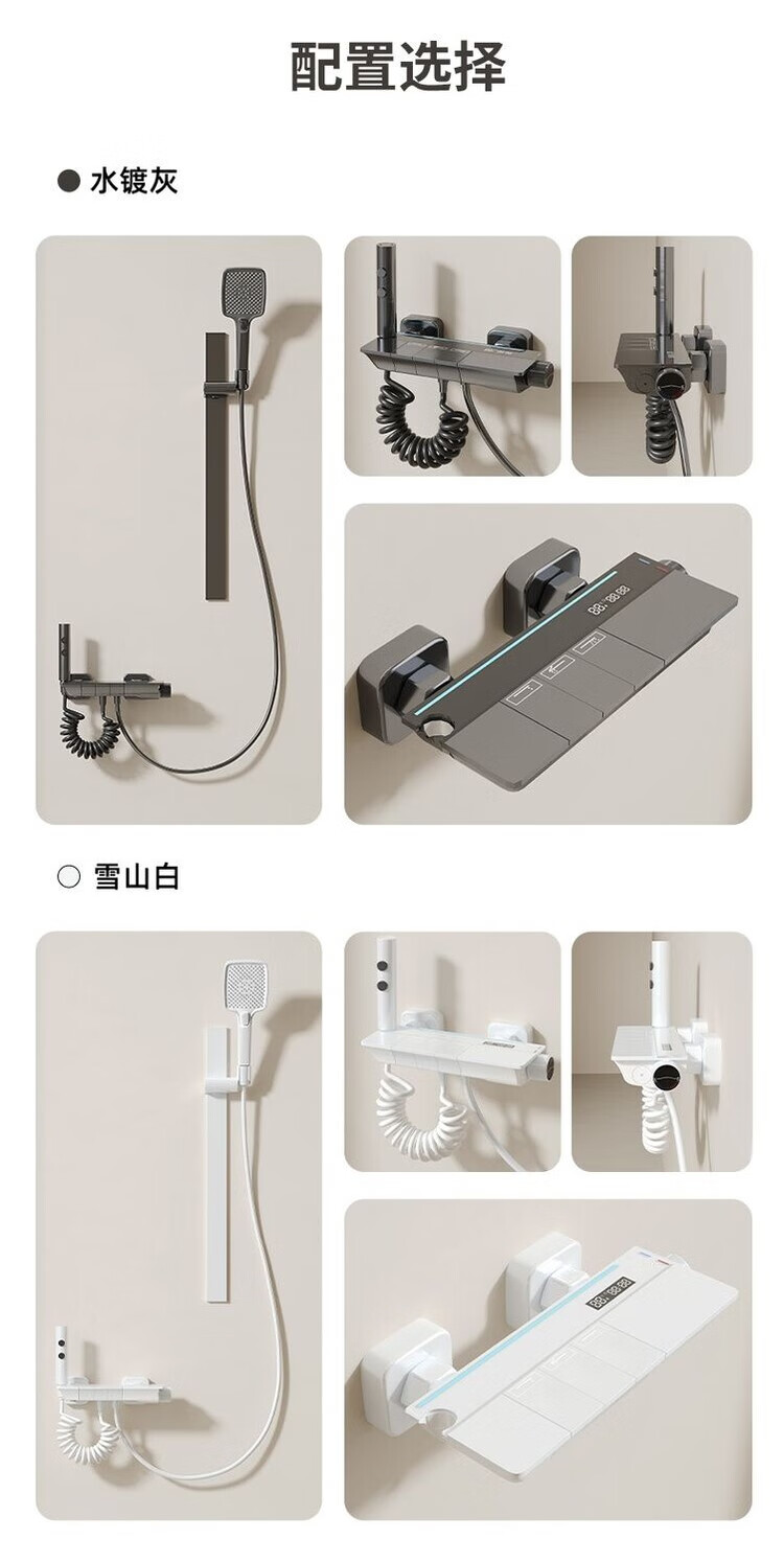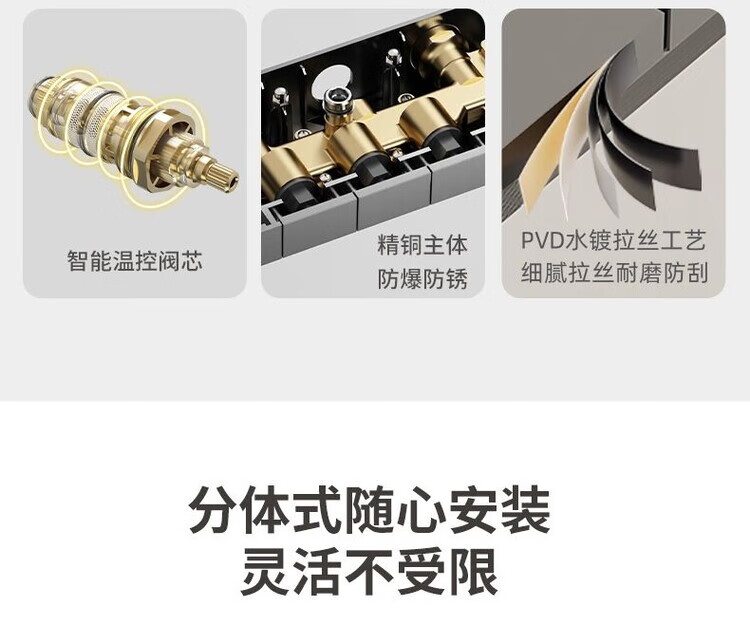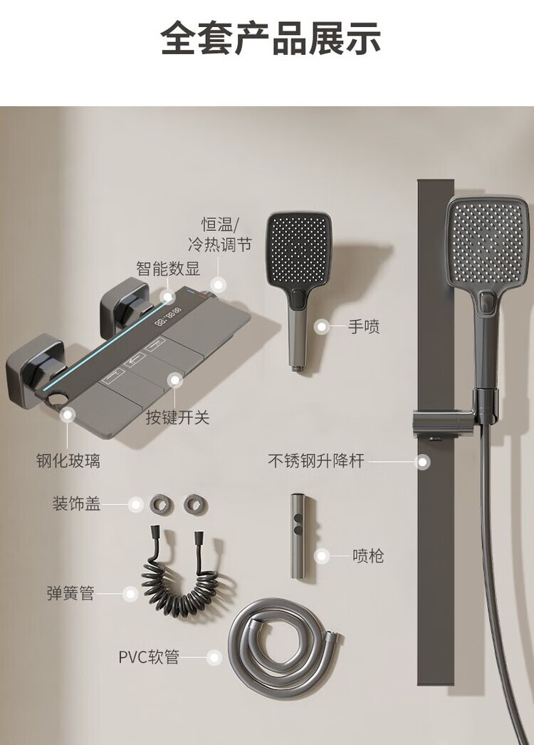 JOMOO New 2025 Split Simple Topless Spray Shower Set for Home Constant Temperature Digital Display Bathroom All-Copper Shower Booster Sprinkler Key Three Levels PVD Brushed Gray-Hot and Cold Style Self-installation Provides Installation Video