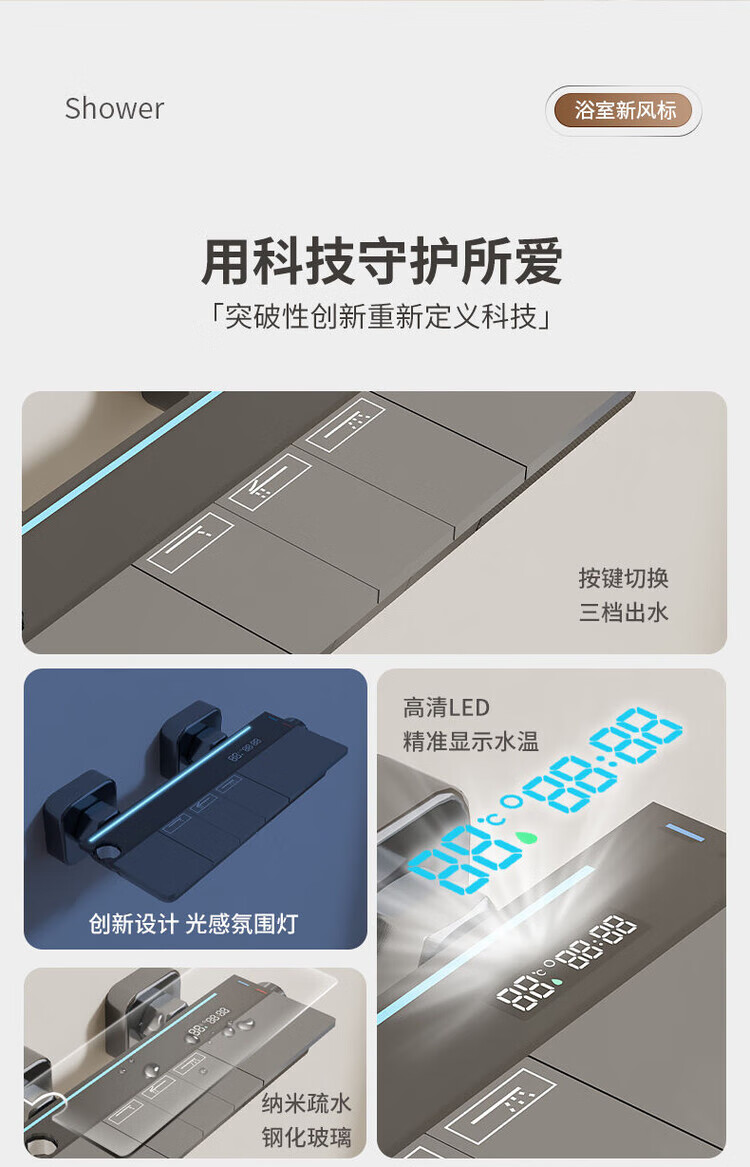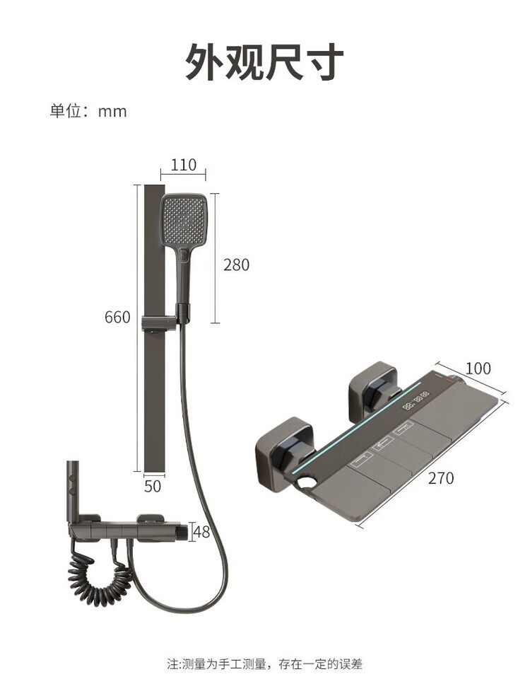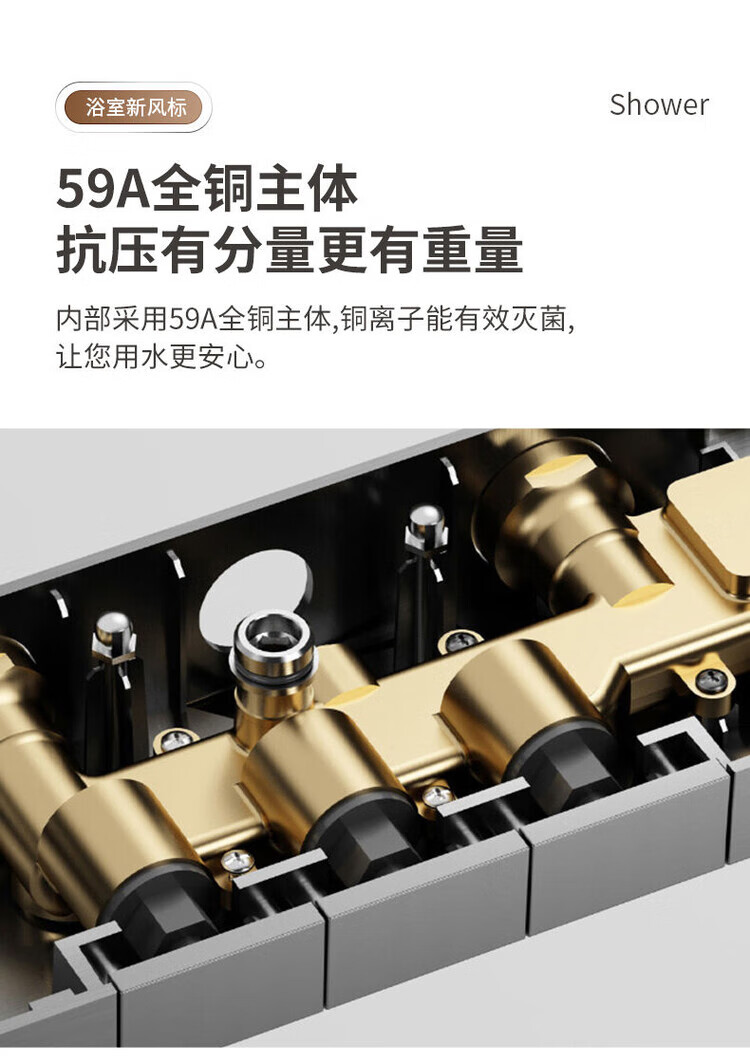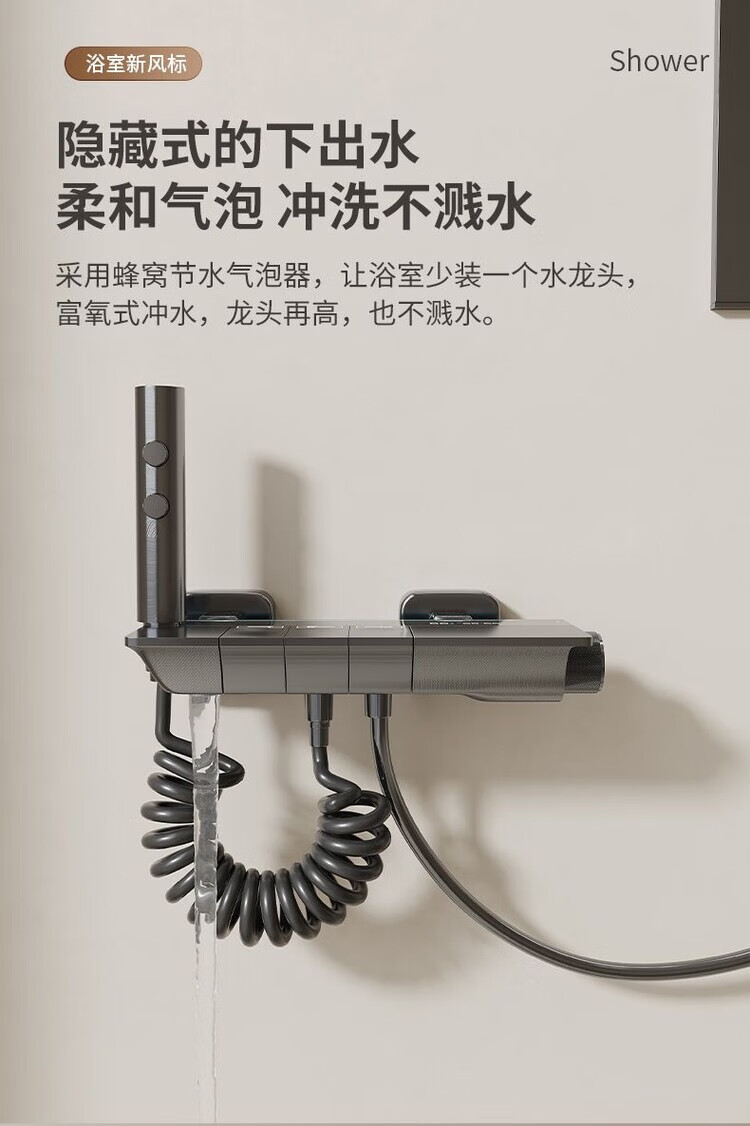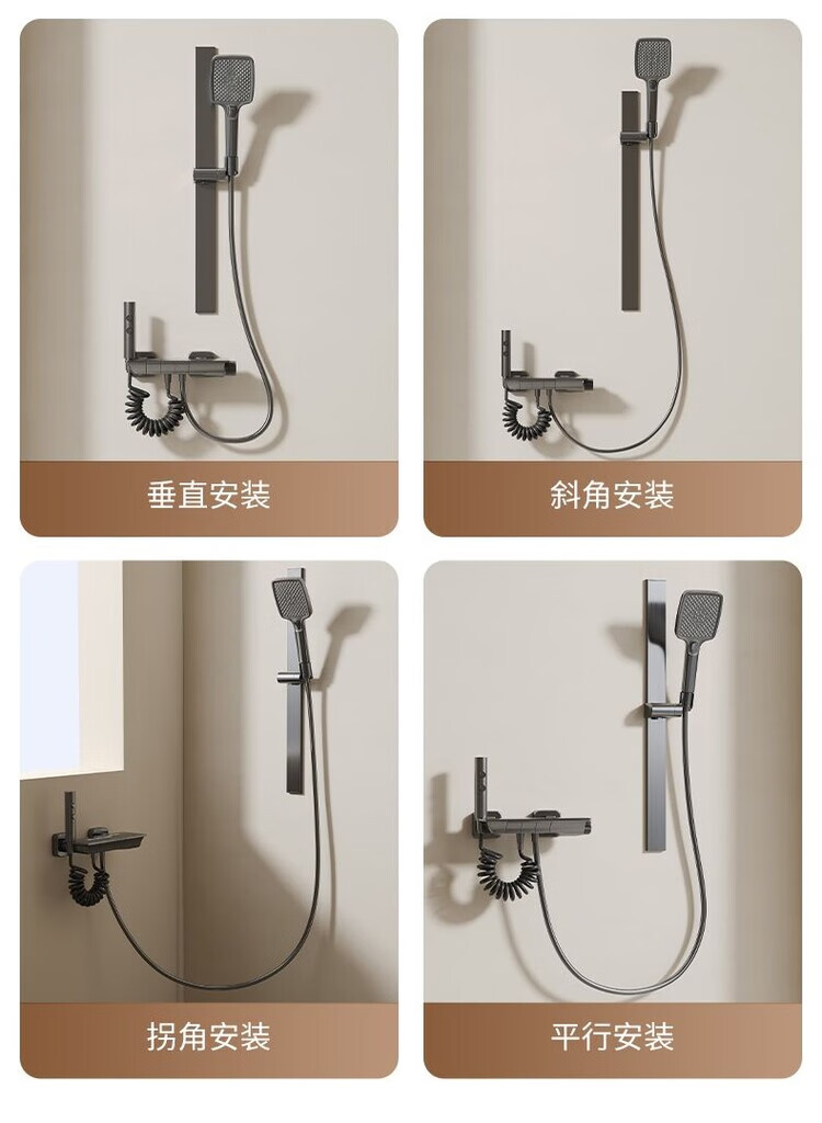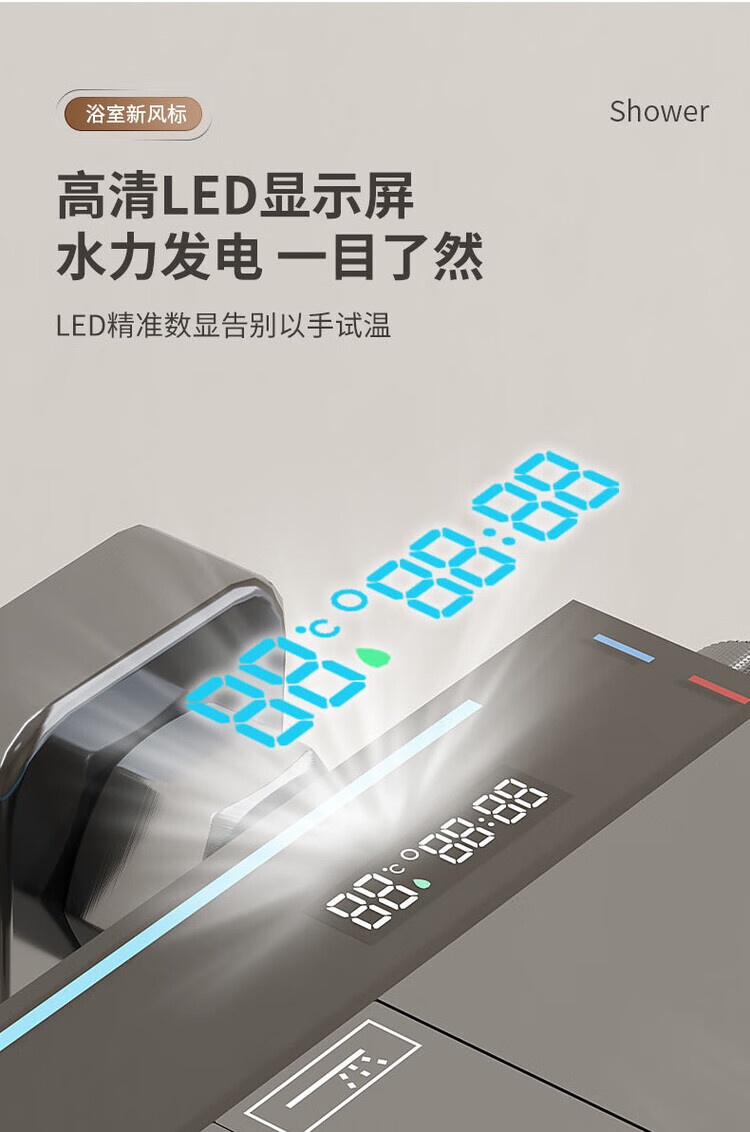JOMOO New 2025 Split Simple Topless Spray Shower Set for Home Constant Temperature Digital Display Bathroom All-Copper Shower Booster Sprinkler Key Three Levels PVD Brushed Gray-Hot and Cold Style Self-installation Provides Installation Video