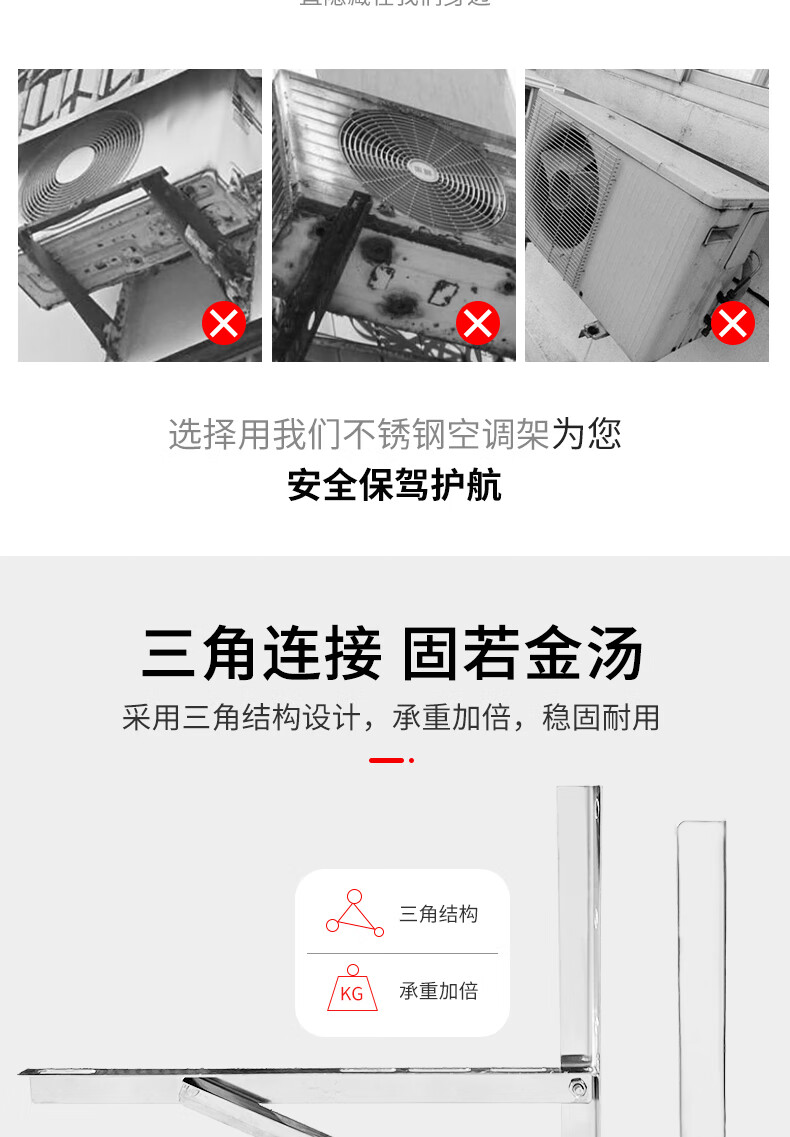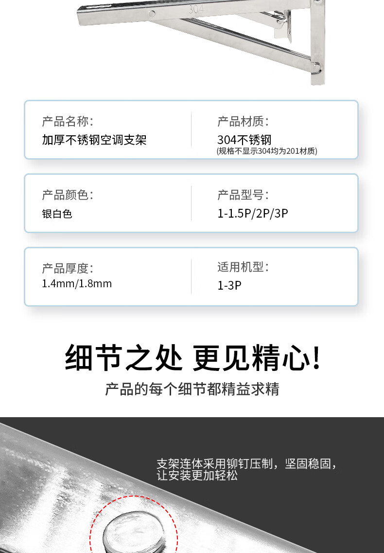 304 stainless steel air conditioner outdoor unit bracket 1.5 hp 2P3P air conditioner bracket Haiermei's Gree universal rack 1-1.5 hp stainless steel bracket without screws