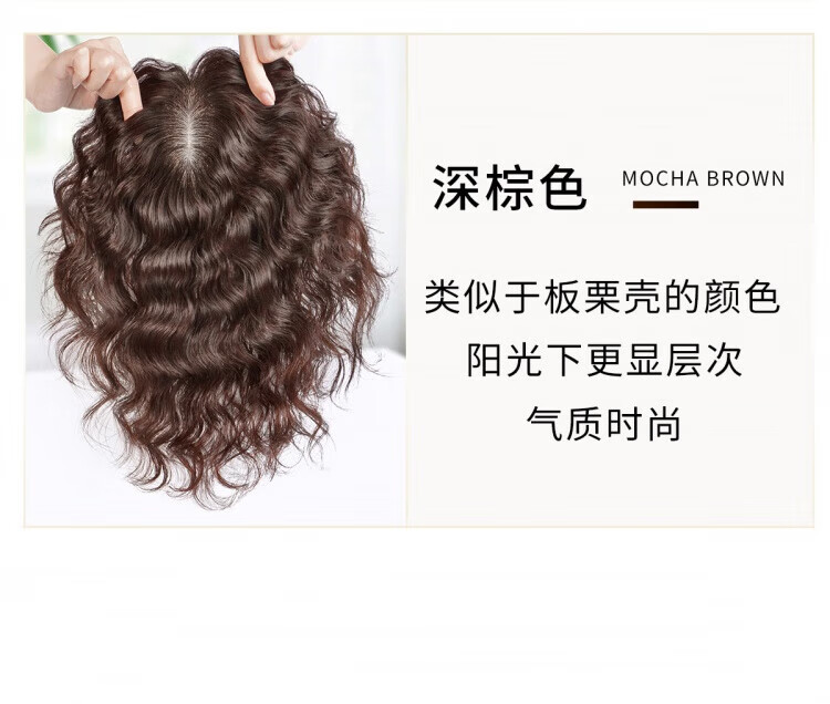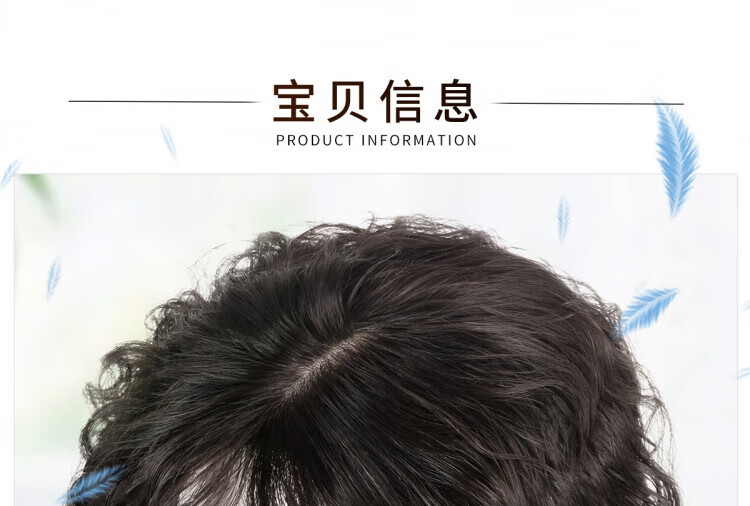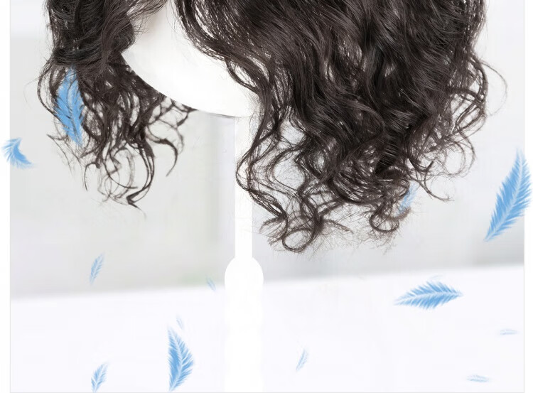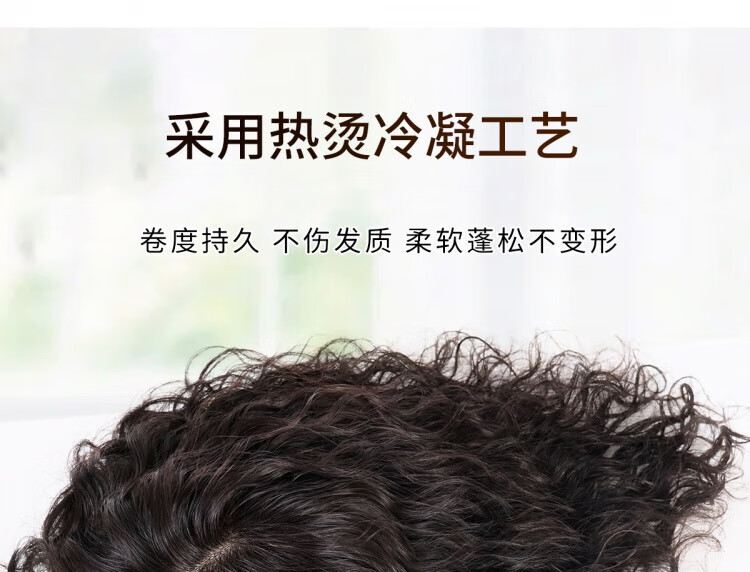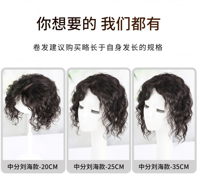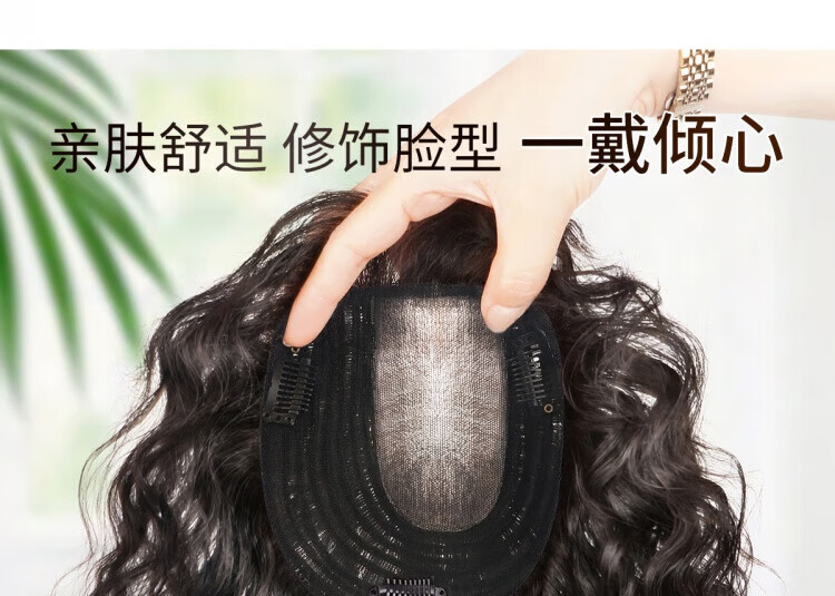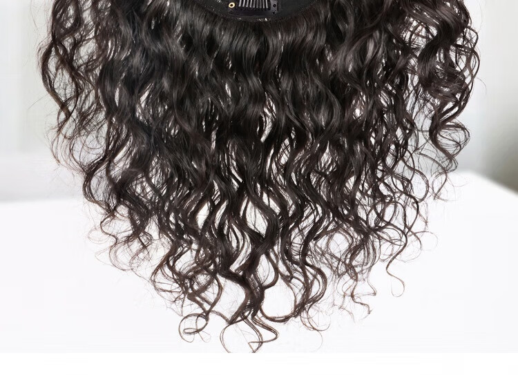 German quality wig piece for women to add fluffy hair volume to cover white hair, thin and seamless curly hair, full real hair, side-swept bangs - 35cm - natural black