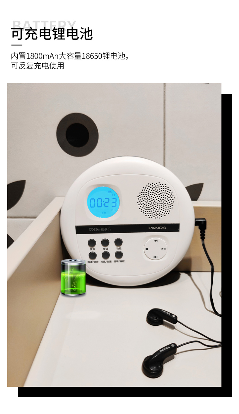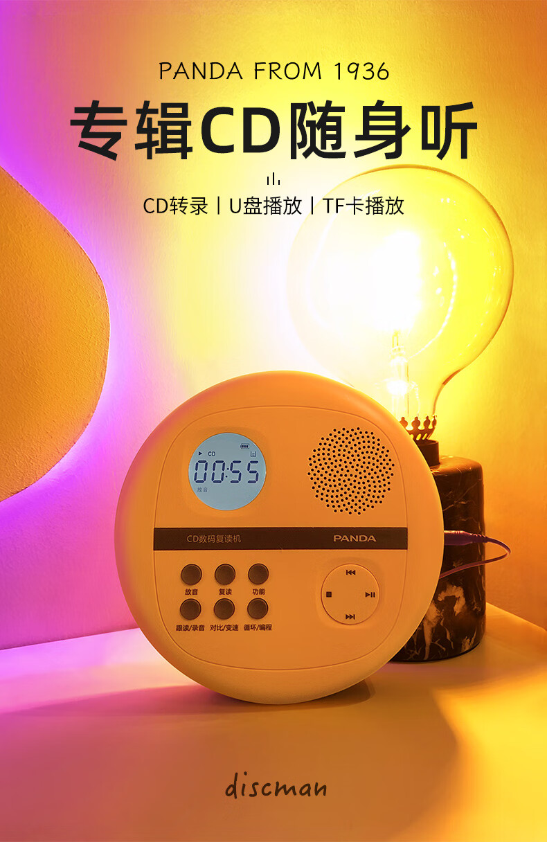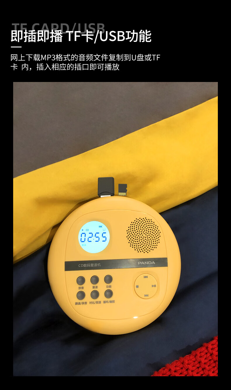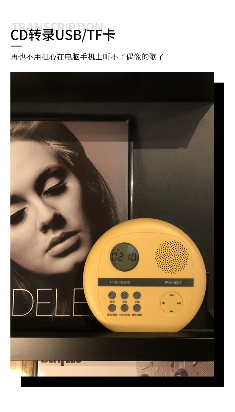 Panda (PANDA) F-01 CD Walkman CD Player Speaker Portable CD Player Playing CDs and Listening to Albums Record Player Music Player Card Insert U Disk Student Learning Repeater Blue + Charging Head