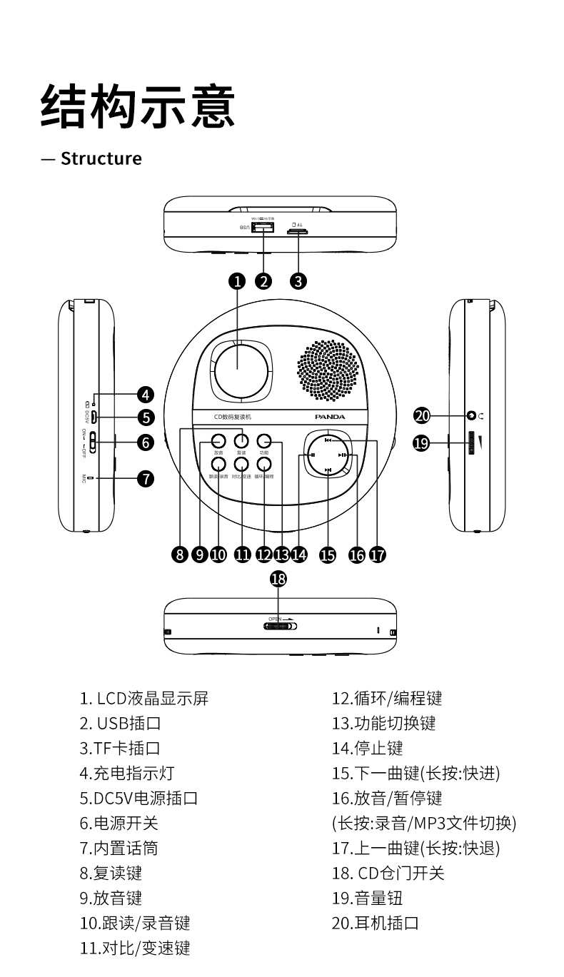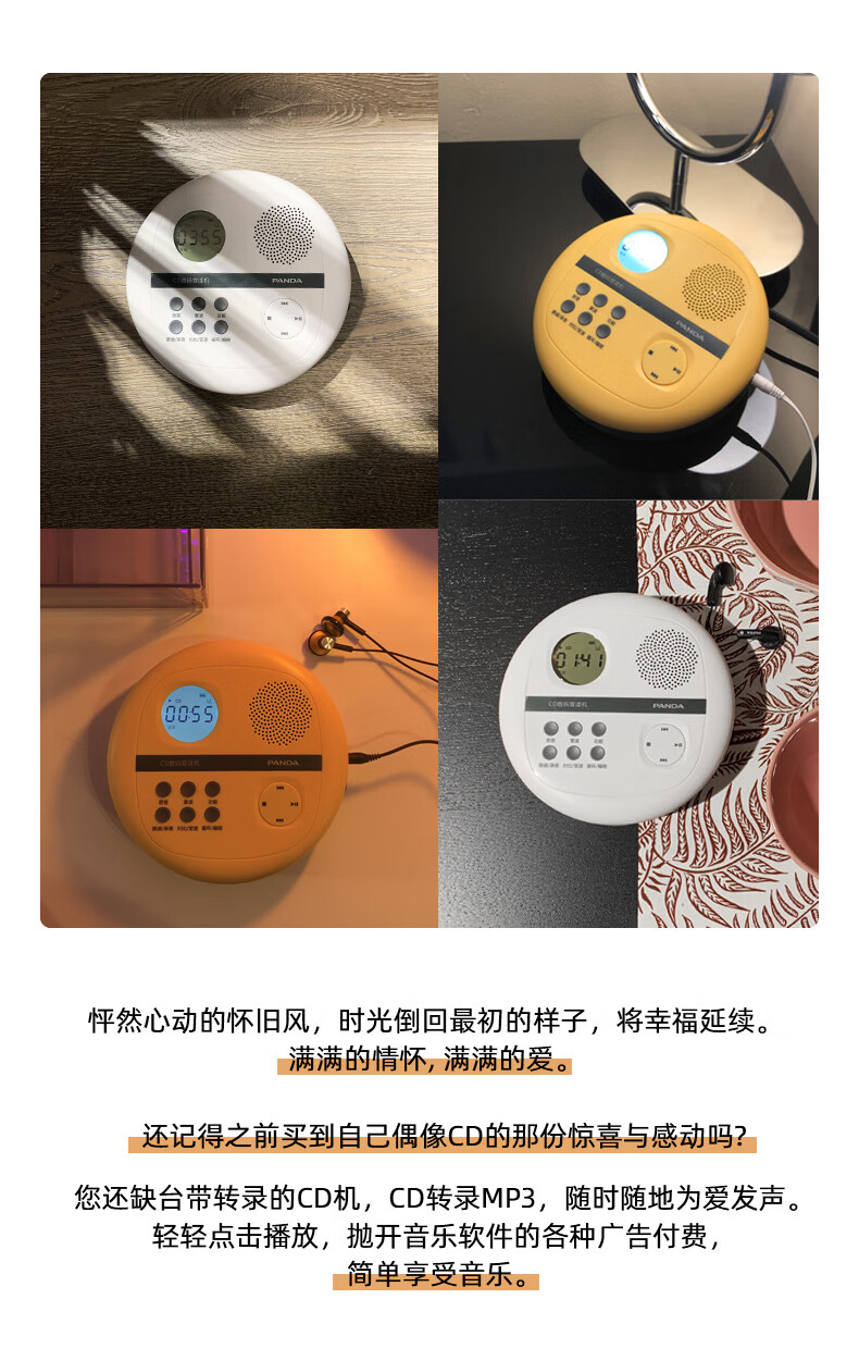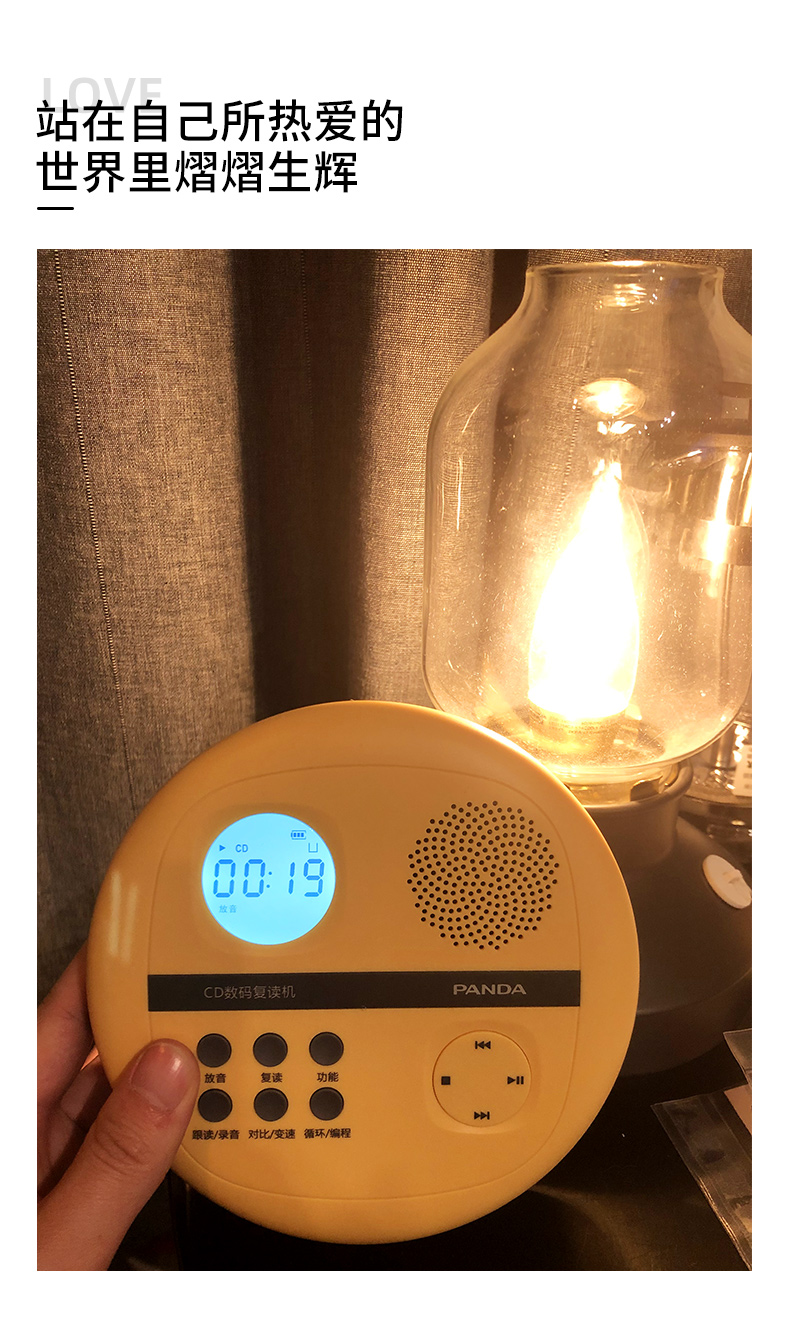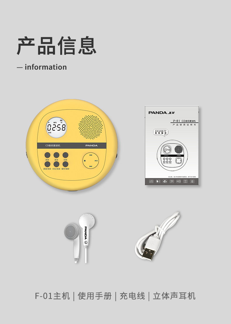 Panda (PANDA) F-01 CD Walkman CD Player Speaker Portable CD Player Playing CDs and Listening to Albums Record Player Music Player Card Insert U Disk Student Learning Repeater Blue + Charging Head