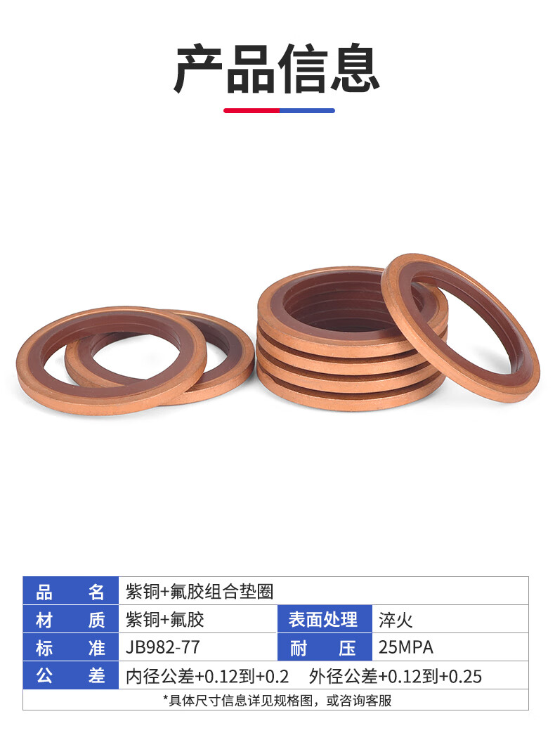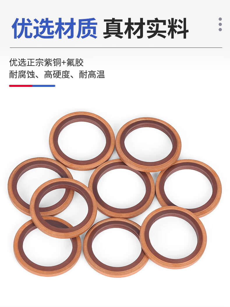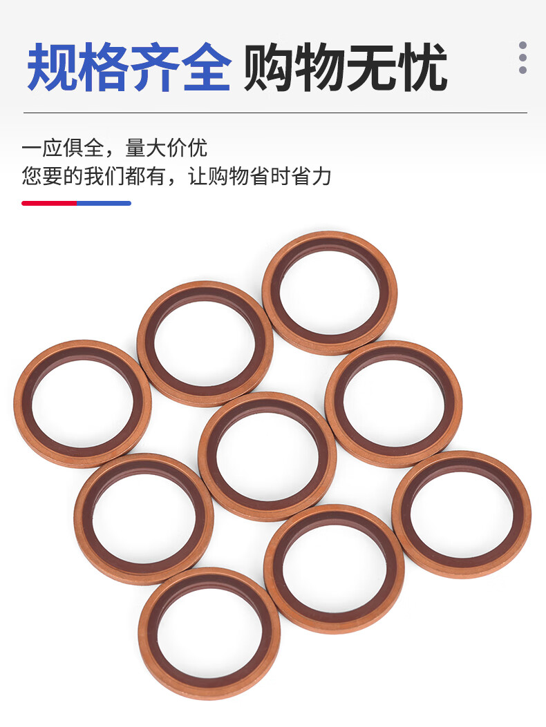 Jinggong (JINGGONG) copper fluorine rubber combination gasket JB982-77 quenched nitrile O-ring seal oil seal plate with high temperature resistance 6-60mm inner diameter 14mm (5 pieces)