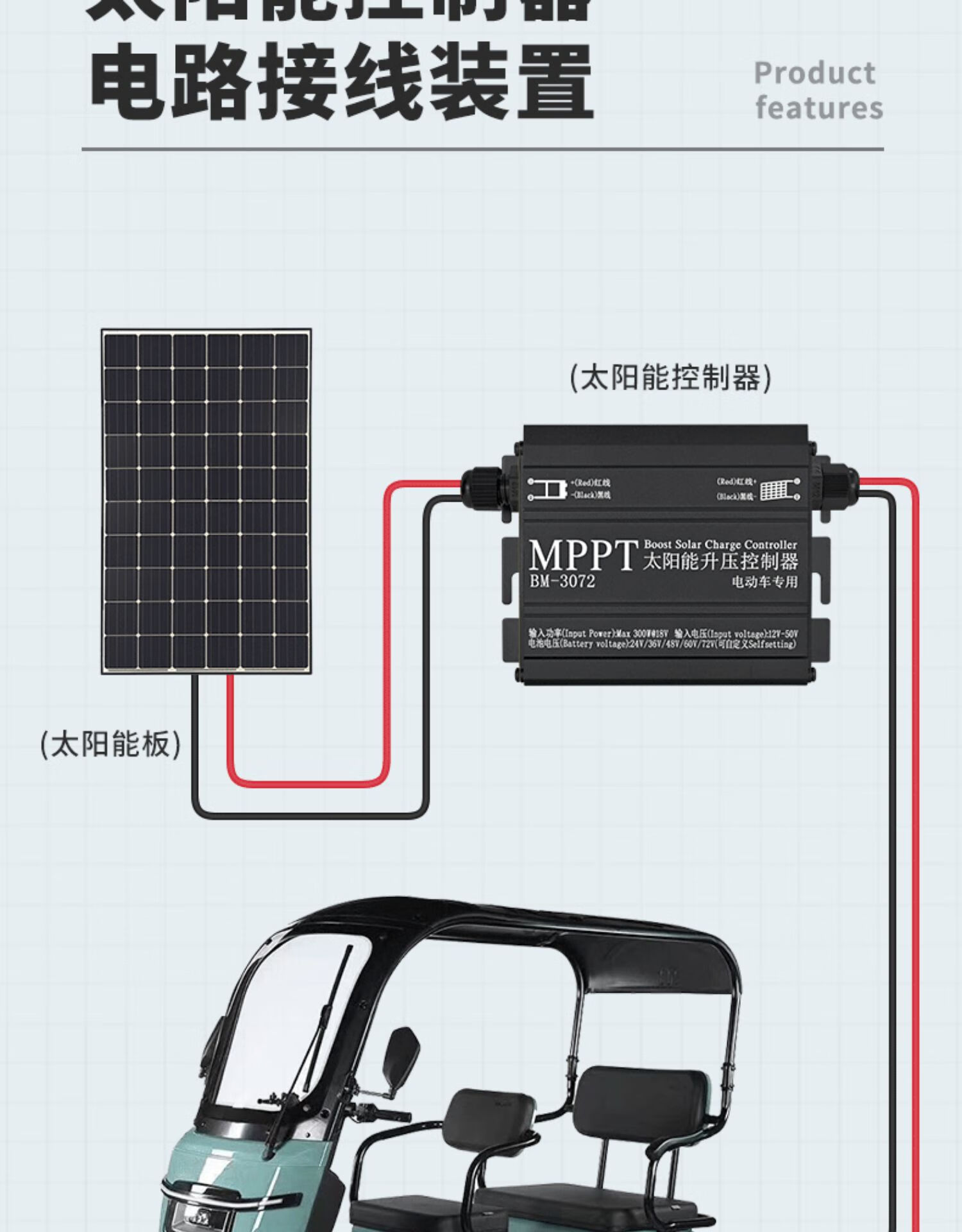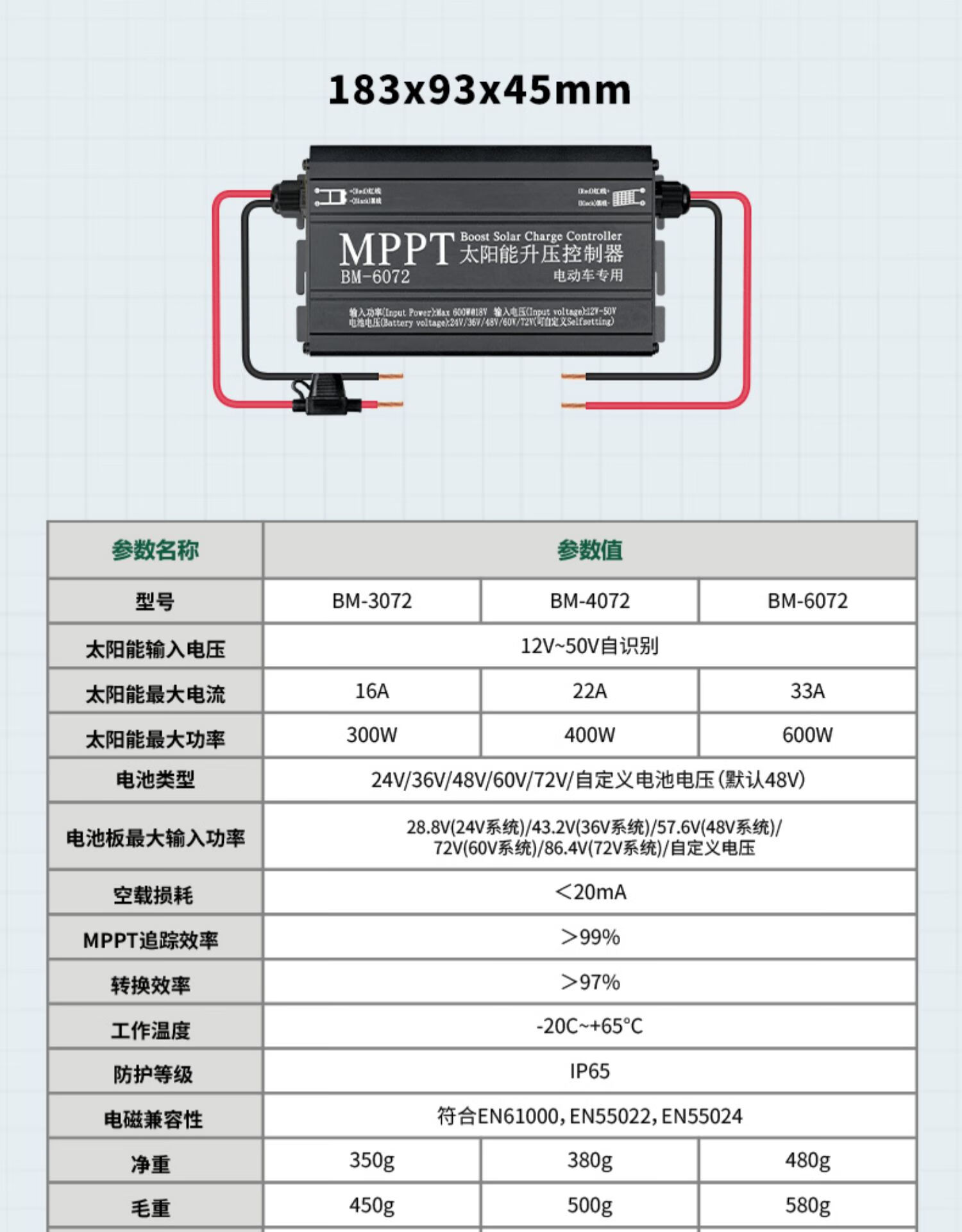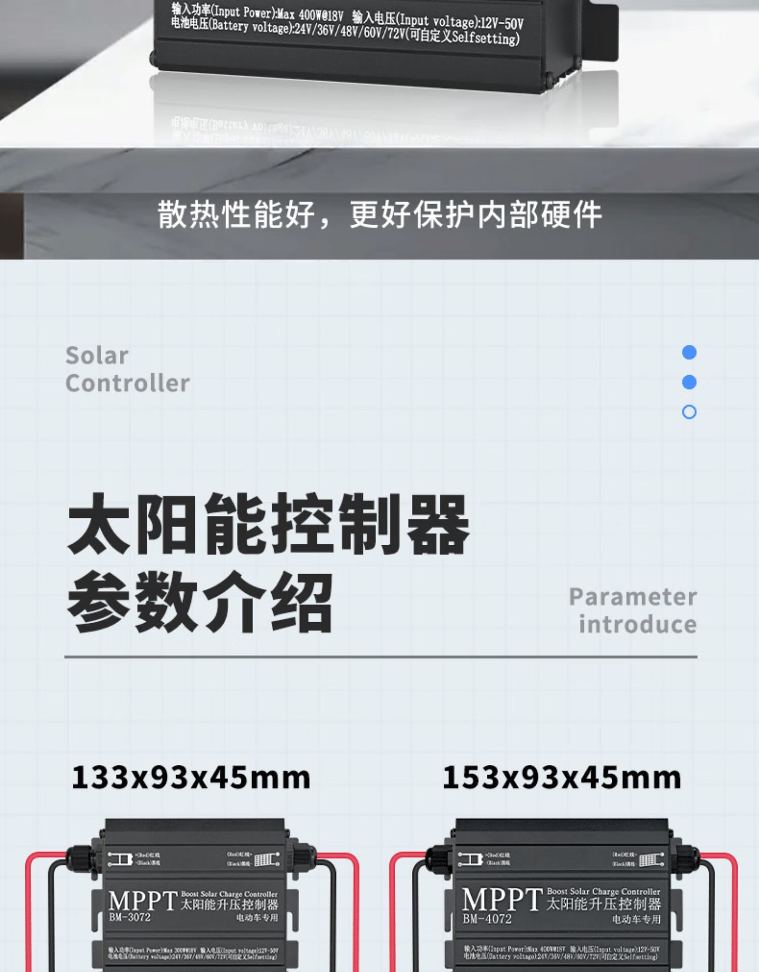 Electric vehicle charger 36V48V/60V/72V voltage adjustable lead-acid lithium battery MPPT solar controller MPPT boost controller - 400W