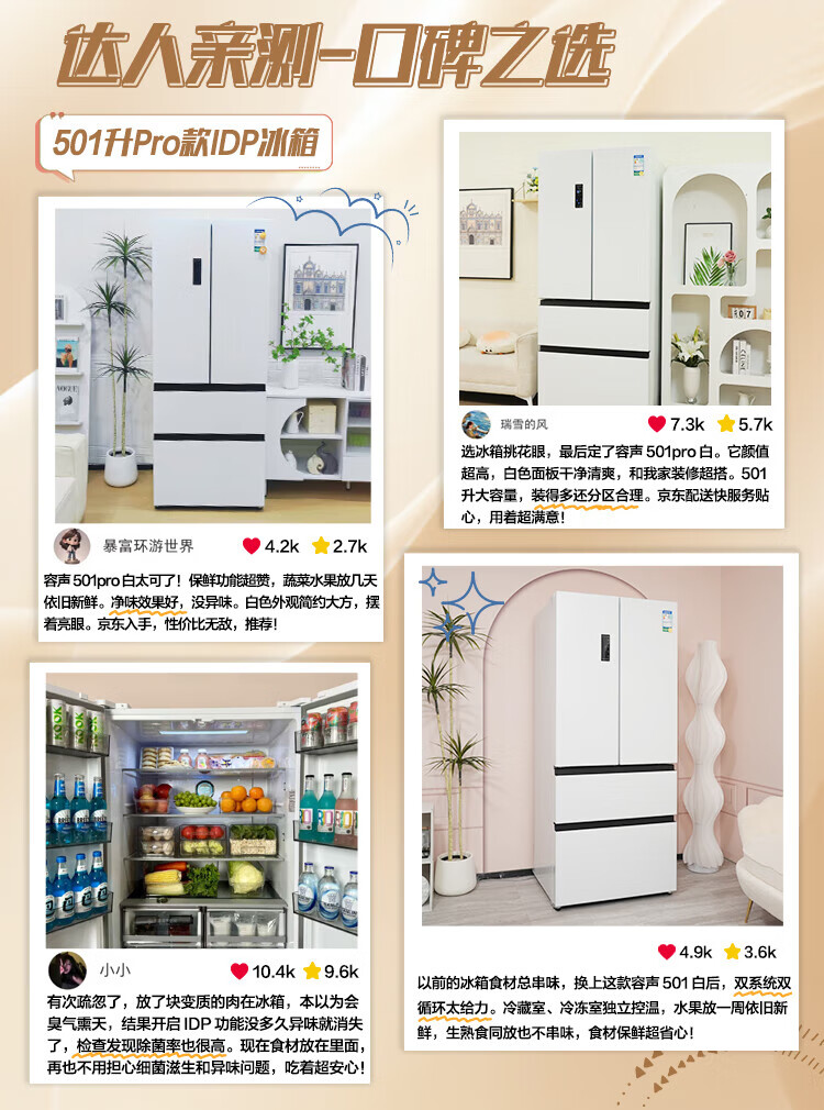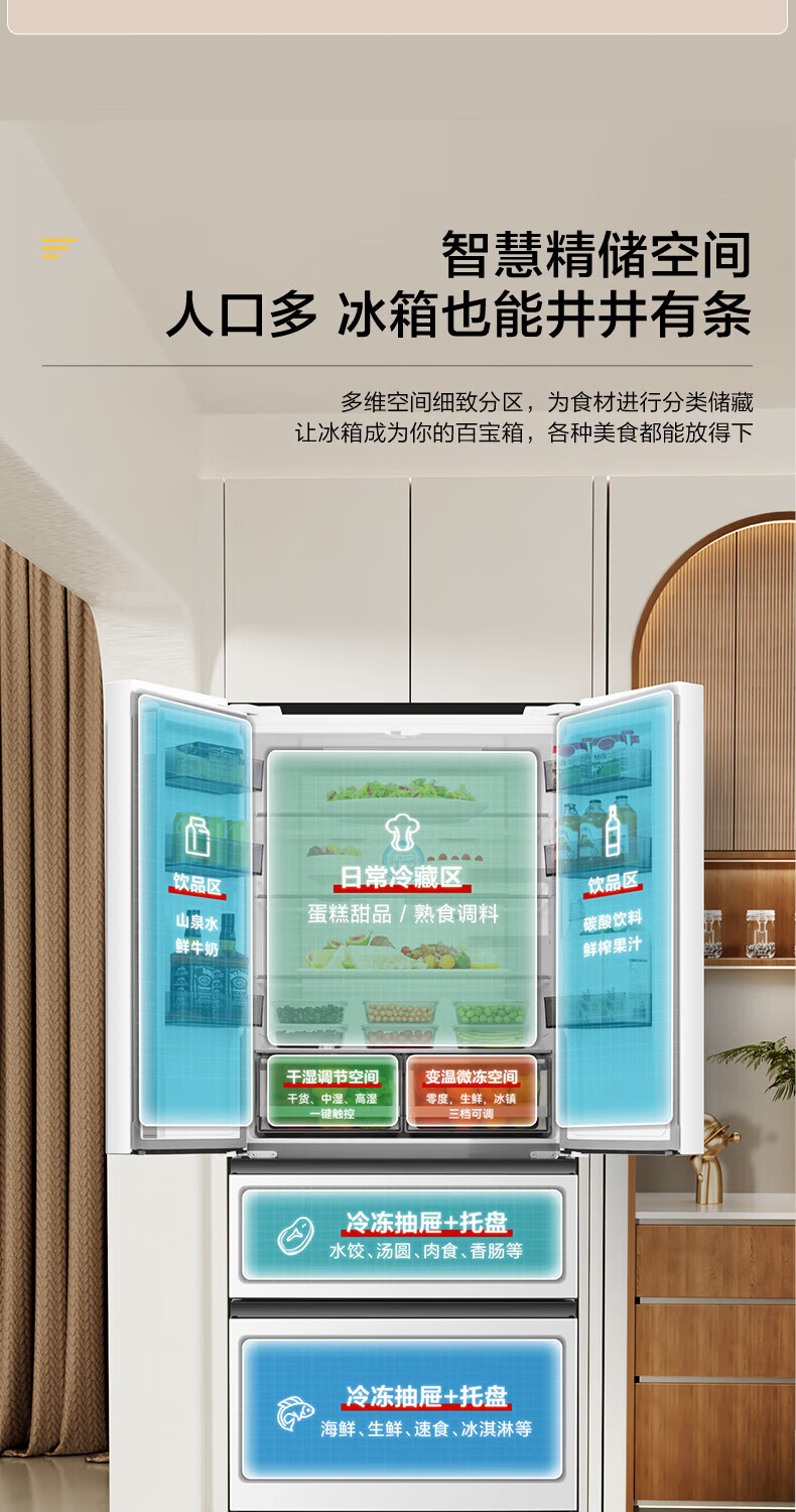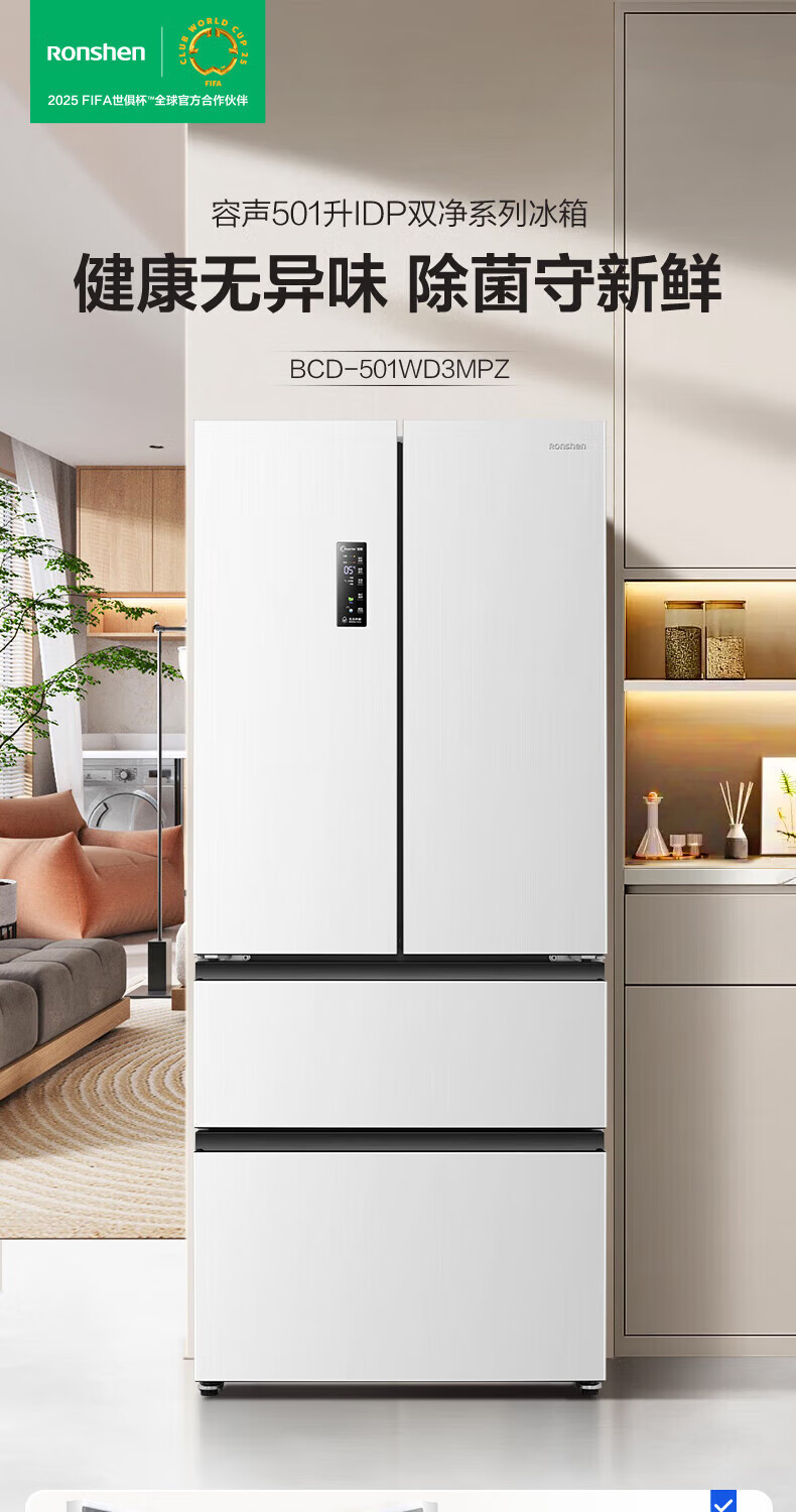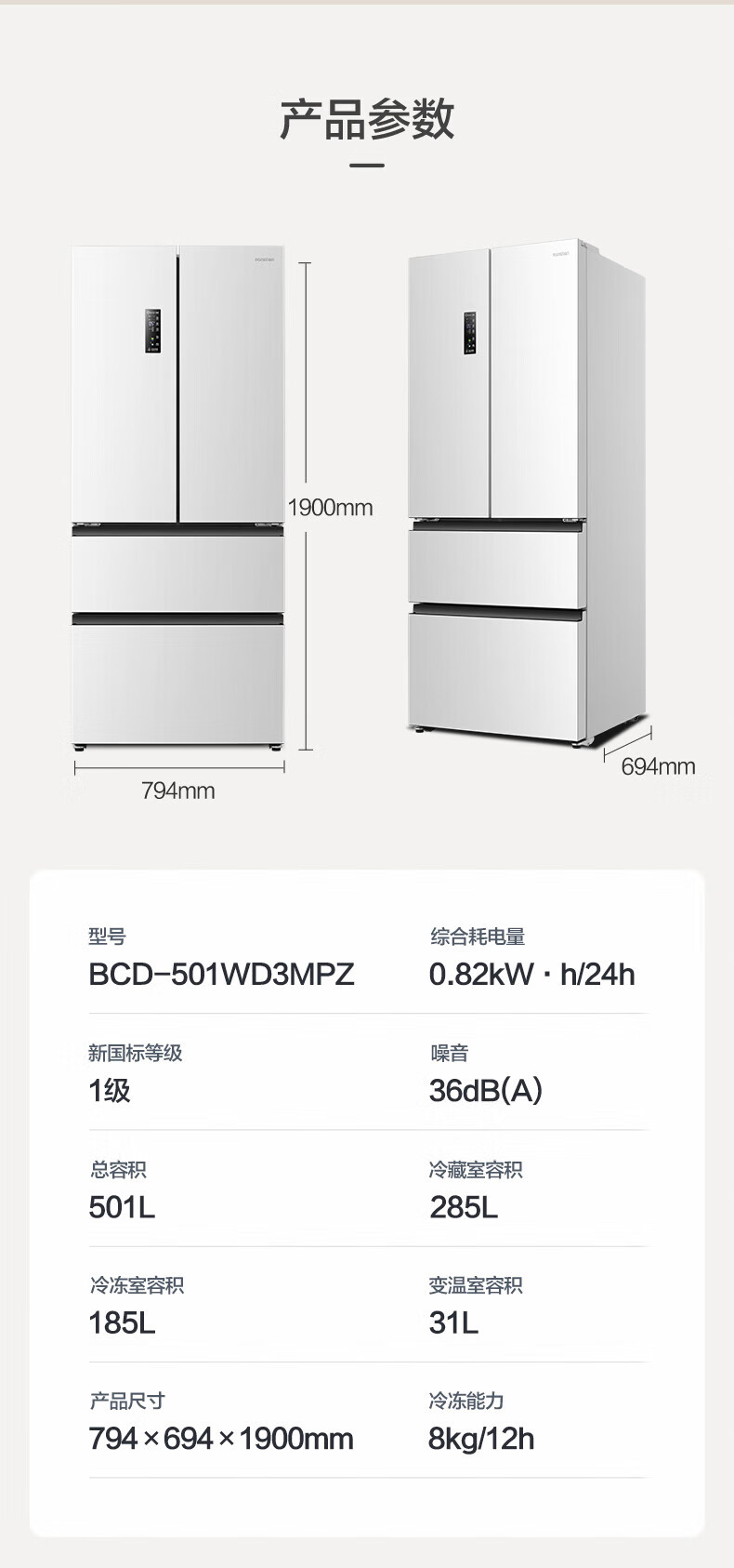 Rongsheng 501Pro French upgraded model 501 liter dual system double cycle refrigerator French multi-door IDP active sterilization blue light freshness BCD-501WD3MPZ Haoyue White BCD-501WD3MPZ Haoyue White