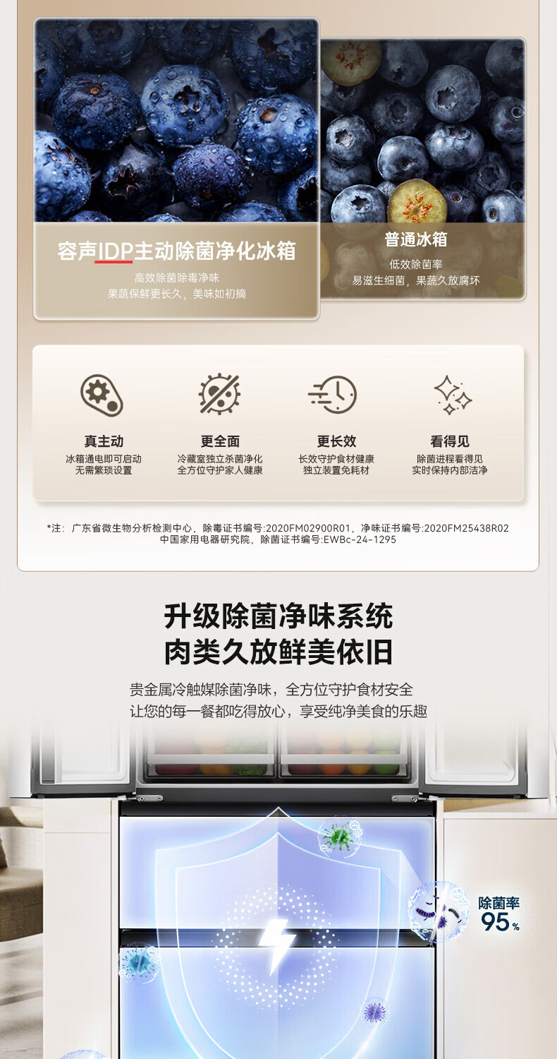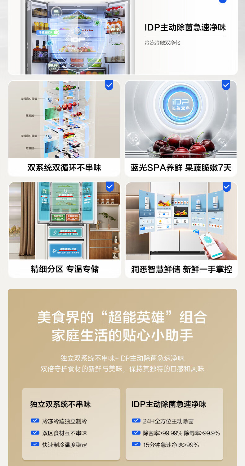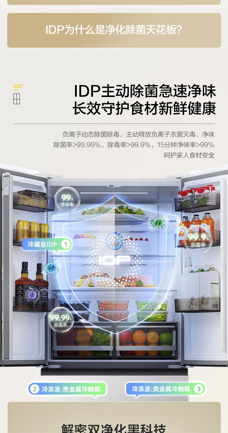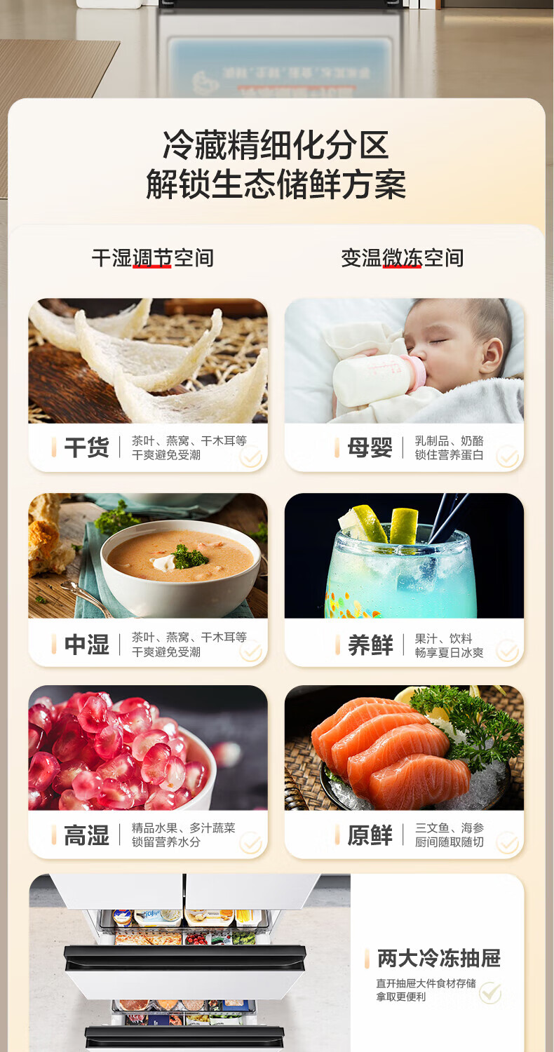 Rongsheng 501Pro French upgraded model 501 liter dual system double cycle refrigerator French multi-door IDP active sterilization blue light freshness BCD-501WD3MPZ Haoyue White BCD-501WD3MPZ Haoyue White