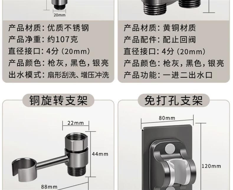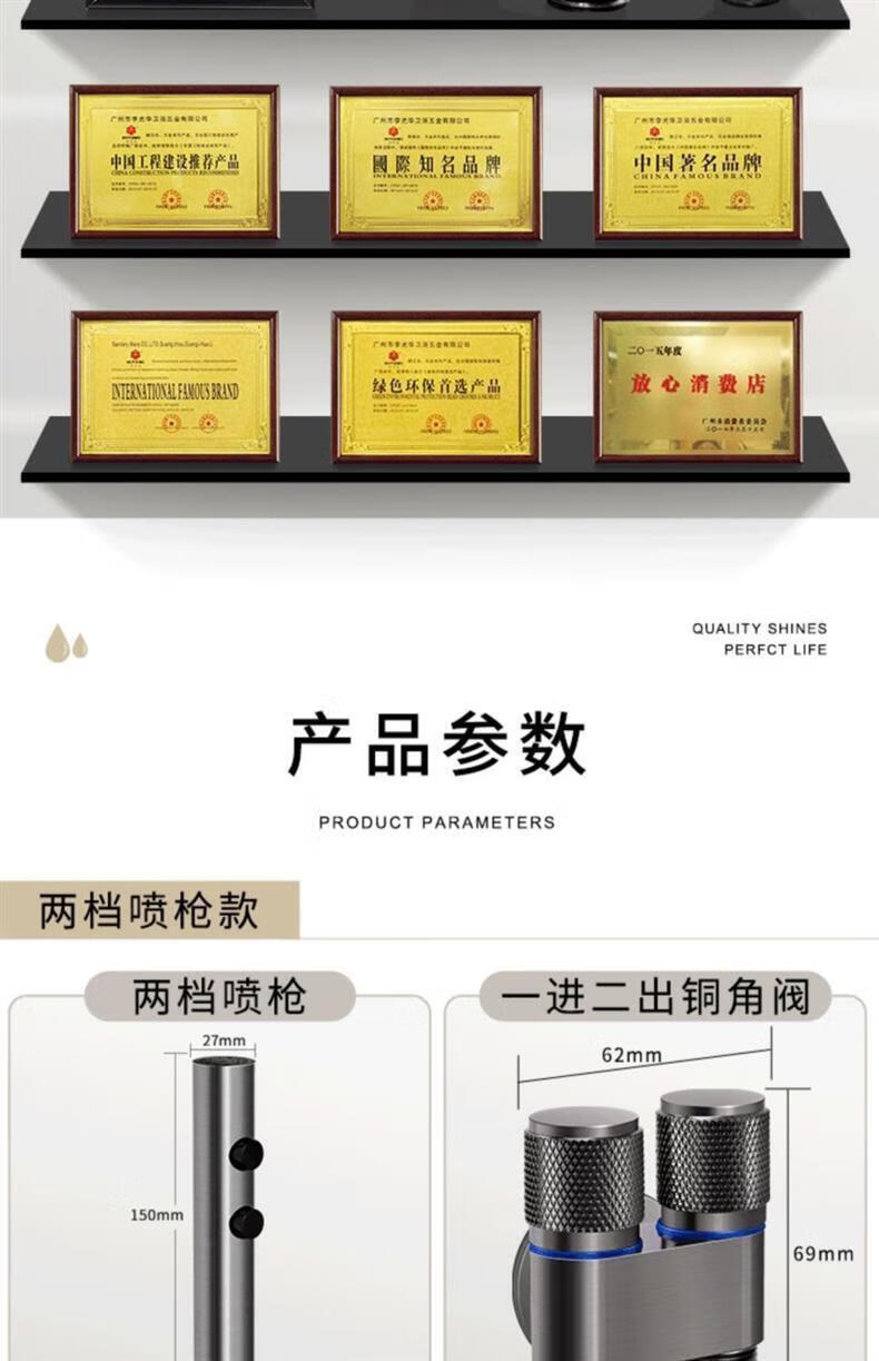 Jomoo new German all-copper toilet companion high-pressure flushing spray gun set dual-control angle valve one in and two out faucet gun ash set-copper bracket-copper spray gun