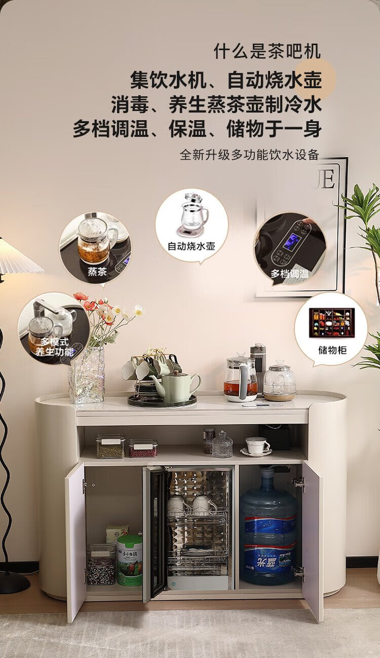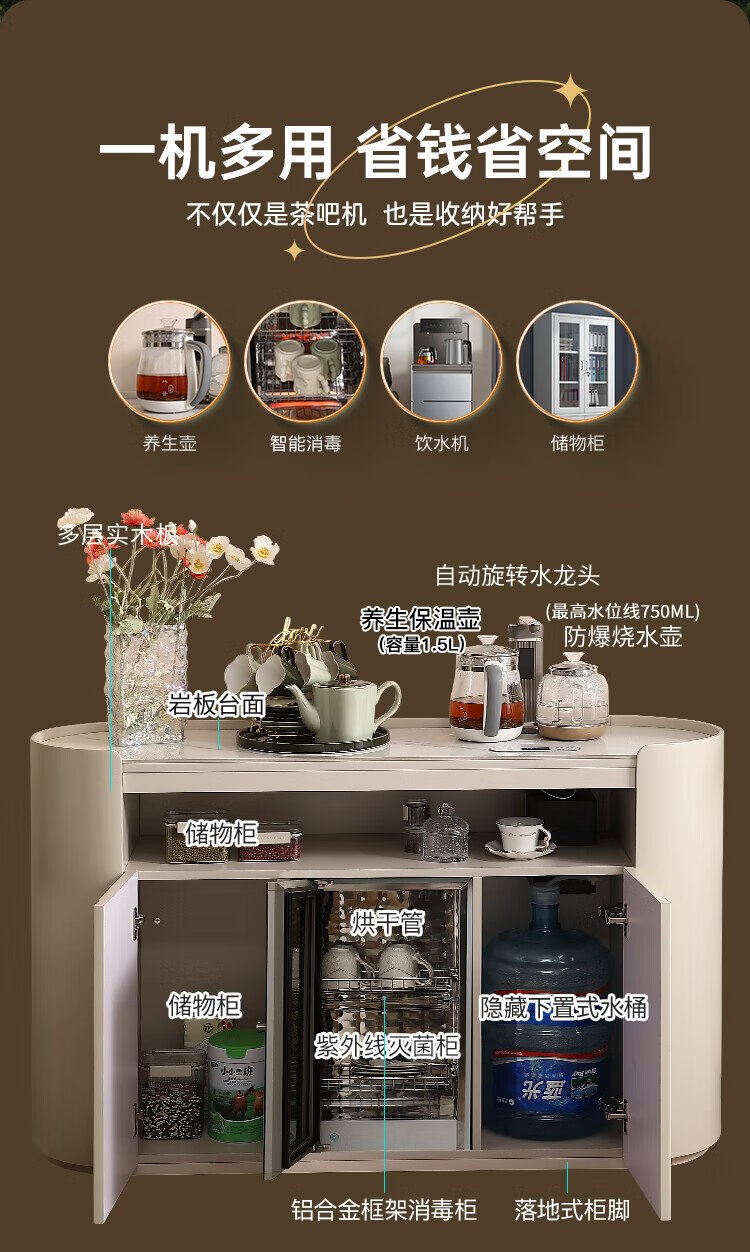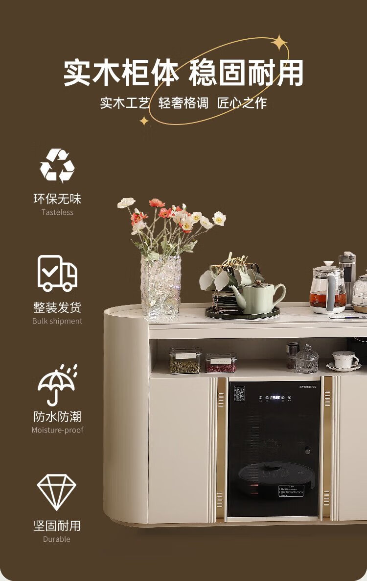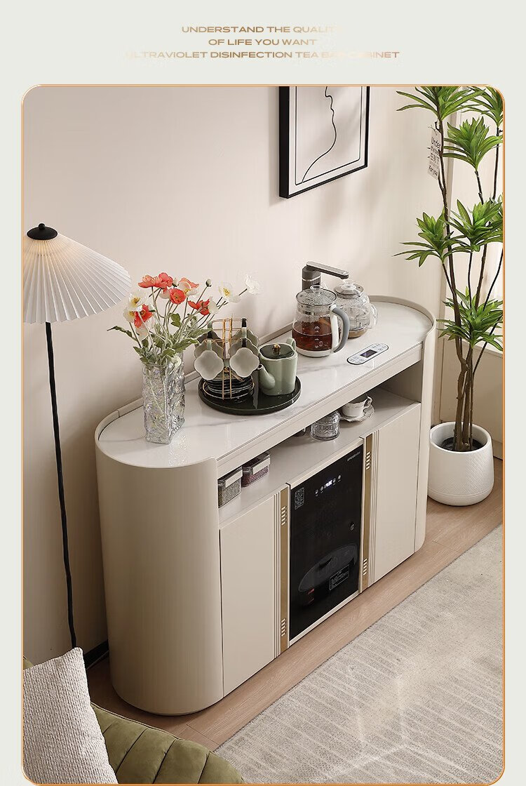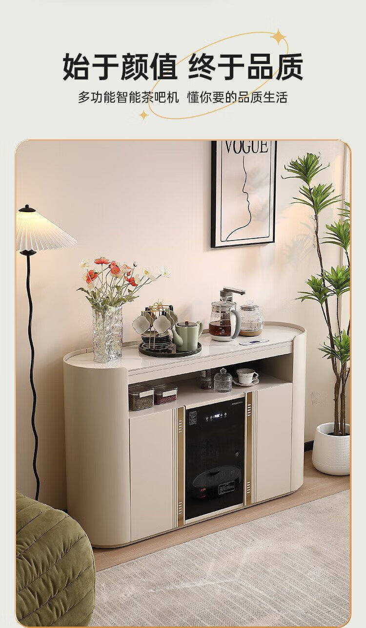 Yiban modern light luxury solid wood tea bar machine cabinet integrated cabinet 2025 new household high-end intelligent voice disinfection water dispenser B-61 three-door refrigerator tea bar machine (pearl milk white) instant cooling type