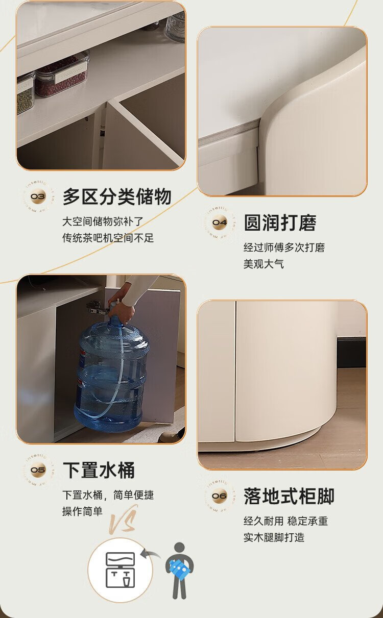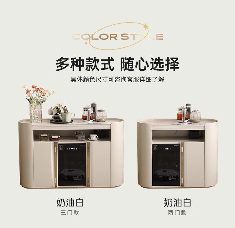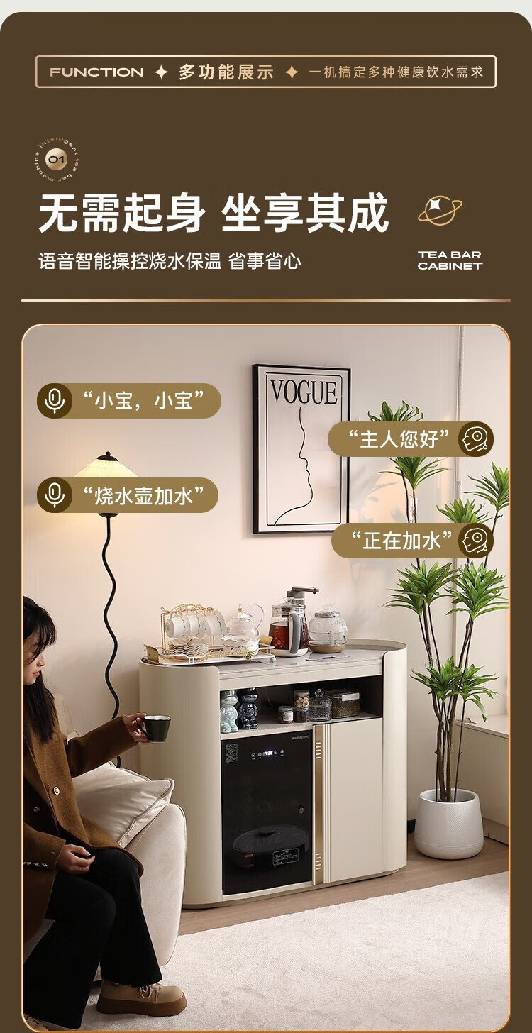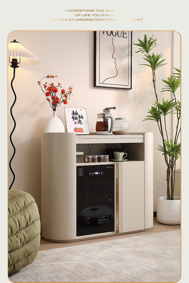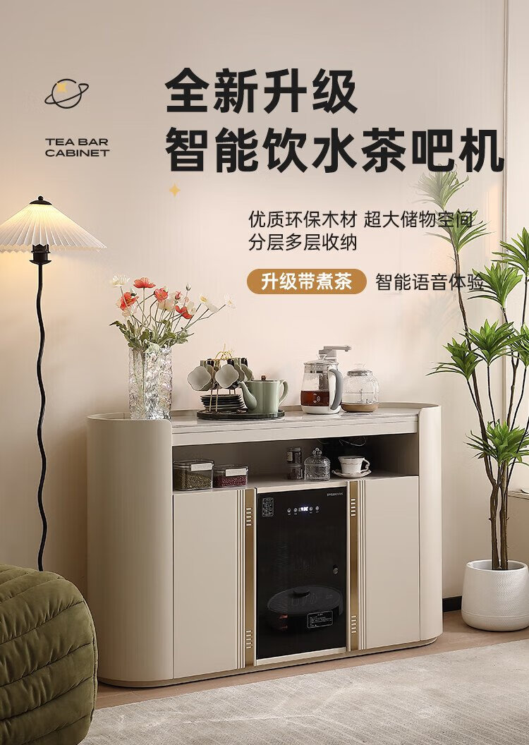 Yiban modern light luxury solid wood tea bar machine cabinet integrated cabinet 2025 new household high-end intelligent voice disinfection water dispenser B-61 three-door refrigerator tea bar machine (pearl milk white) instant cooling type