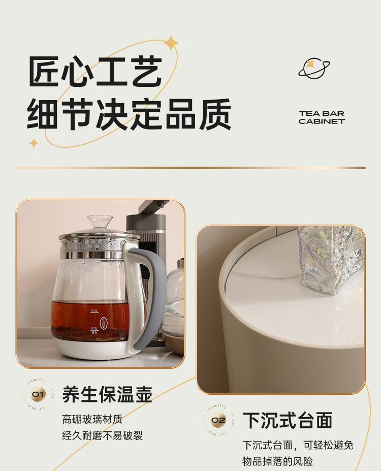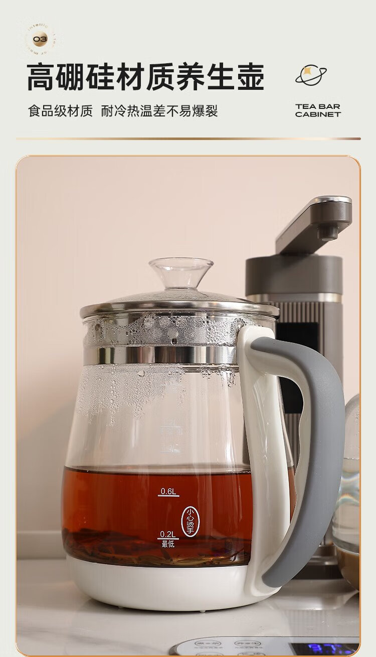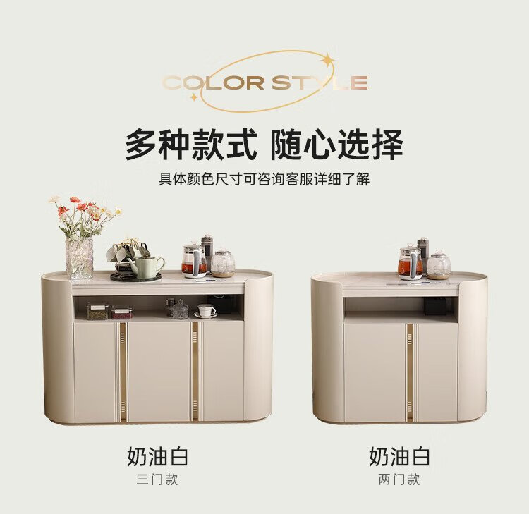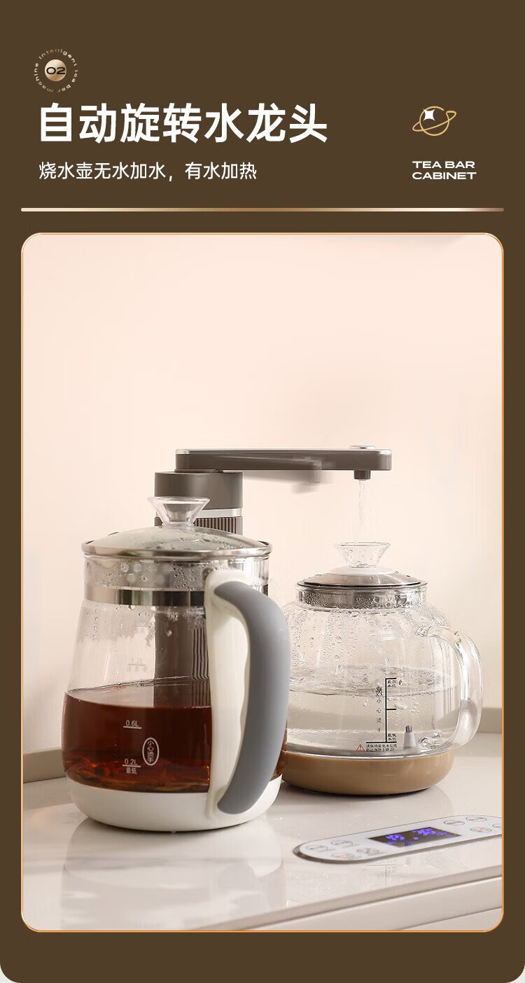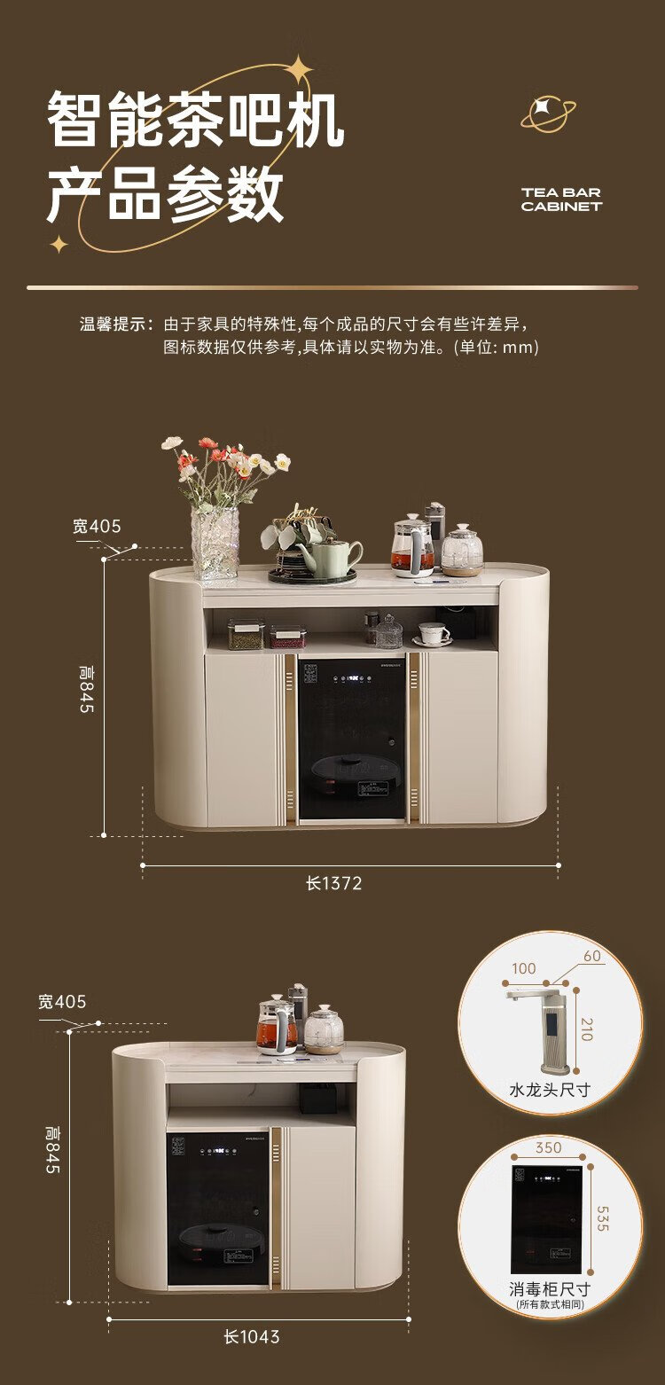 Yiban modern light luxury solid wood tea bar machine cabinet integrated cabinet 2025 new household high-end intelligent voice disinfection water dispenser B-61 three-door refrigerator tea bar machine (pearl milk white) instant cooling type