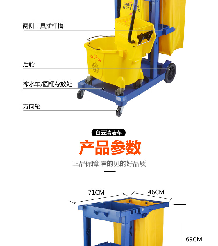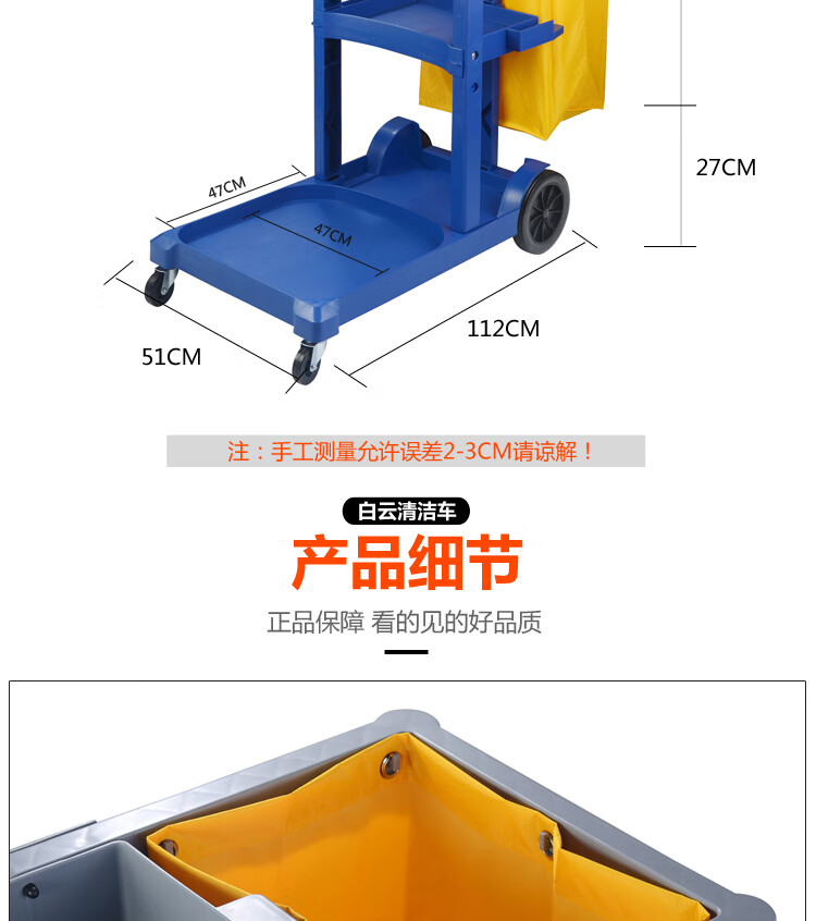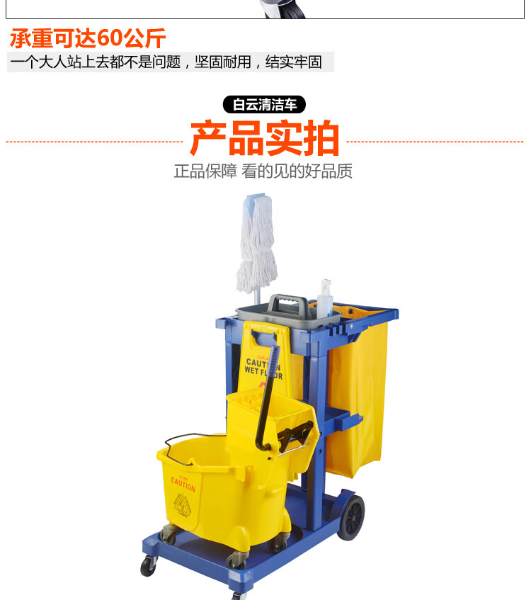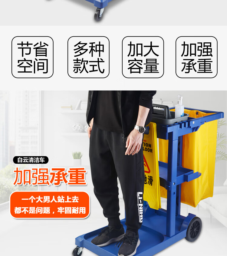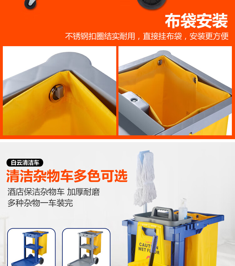 Baiyun cleaning cart multi-functional trolley property cleaning tools guest room cleaning hotel linen blue cart enhanced thickened Baiyun brand
