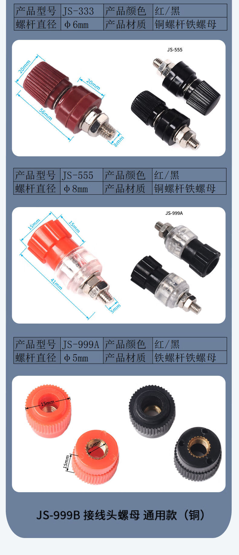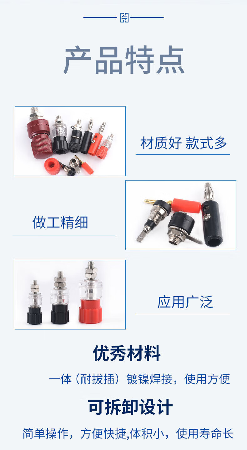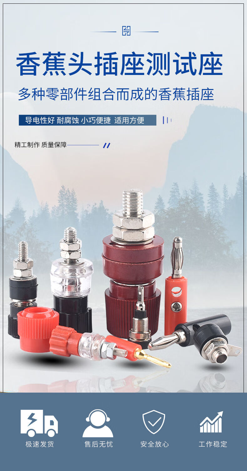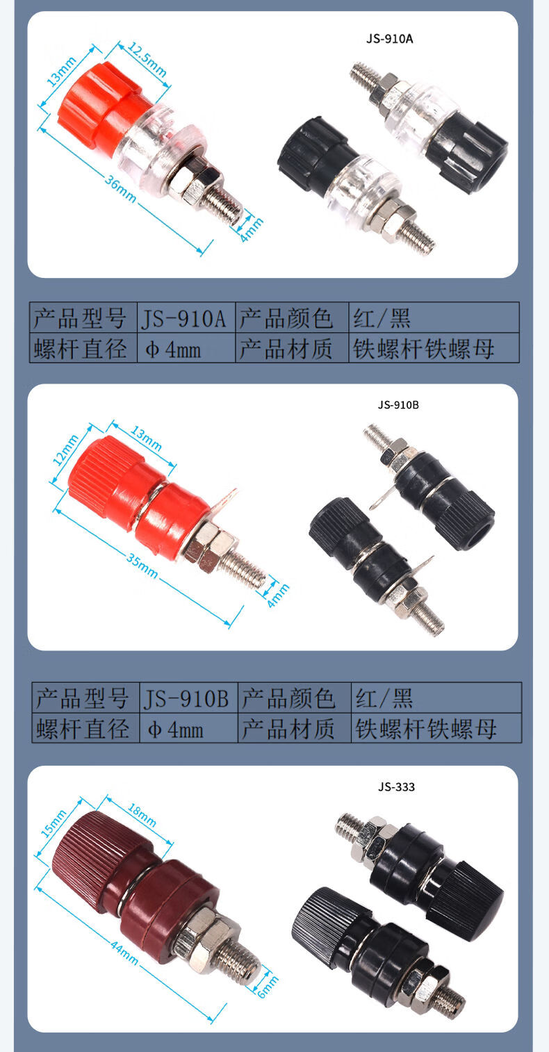 Banana head socket binding post 3/4/5/6/7.5mm test socket terminal block red black large medium small 333 black (nickel plated copper post) 6mm
