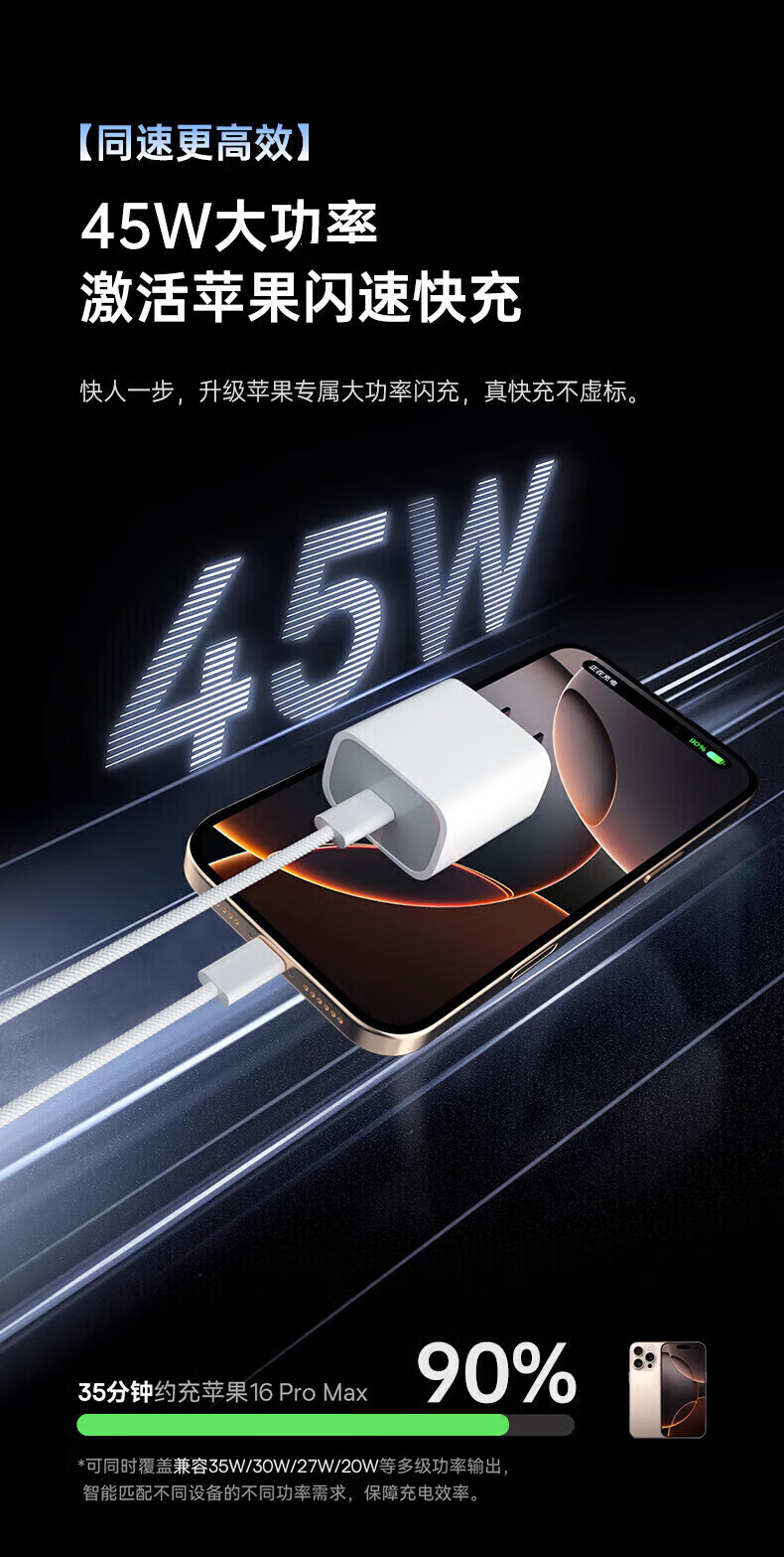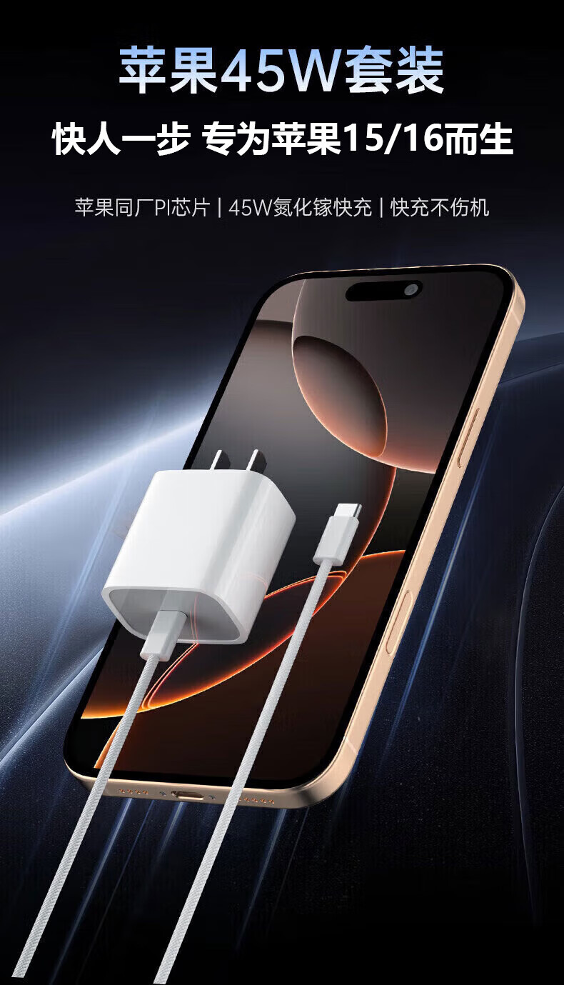 Ruiyang adapts to Apple 17 charging cable 45W fast charging set iPhone16Plus/promax/15Air original dual type-c mobile phone charger genuine charging head data cable original genuine dual C port丨60W braided fast charging cable 1.0 meters