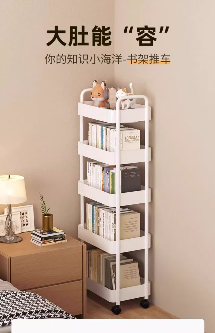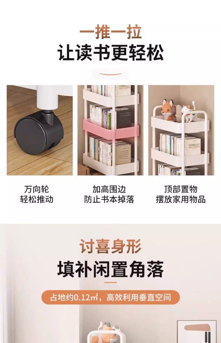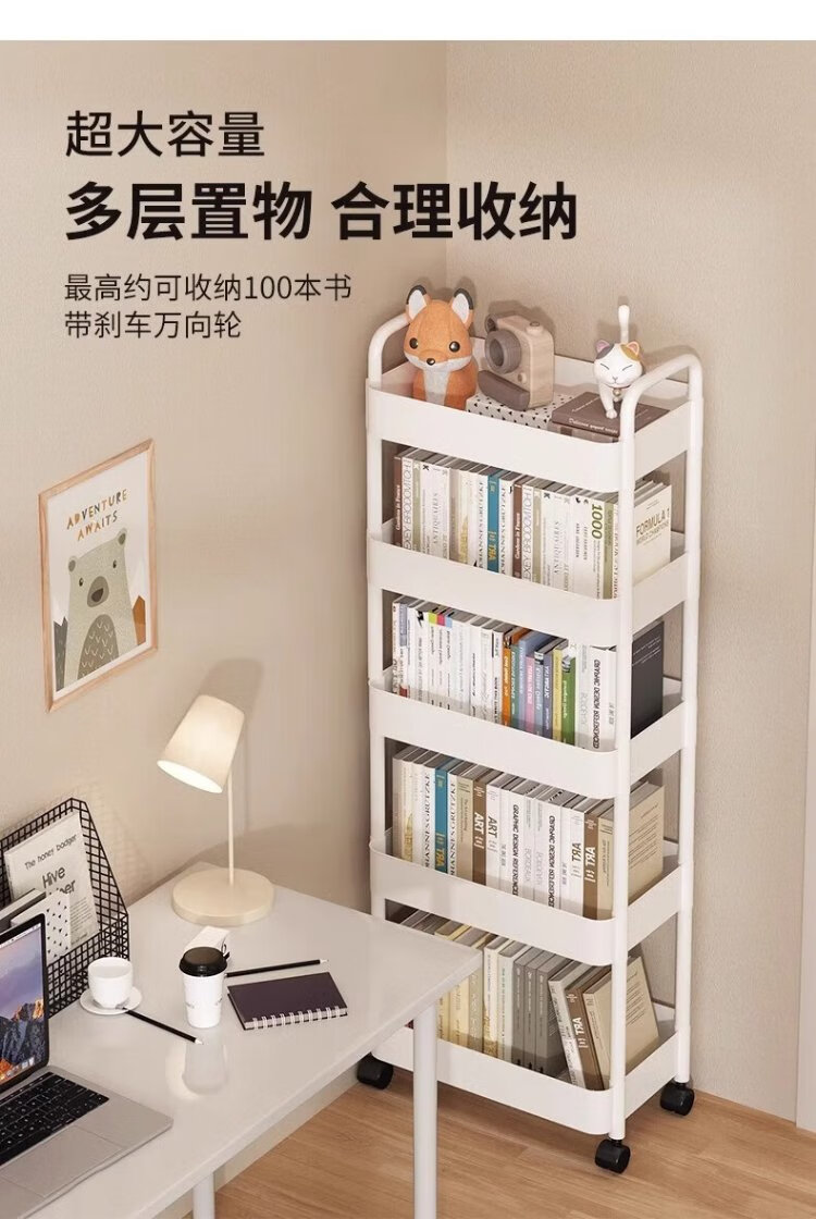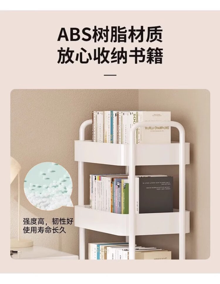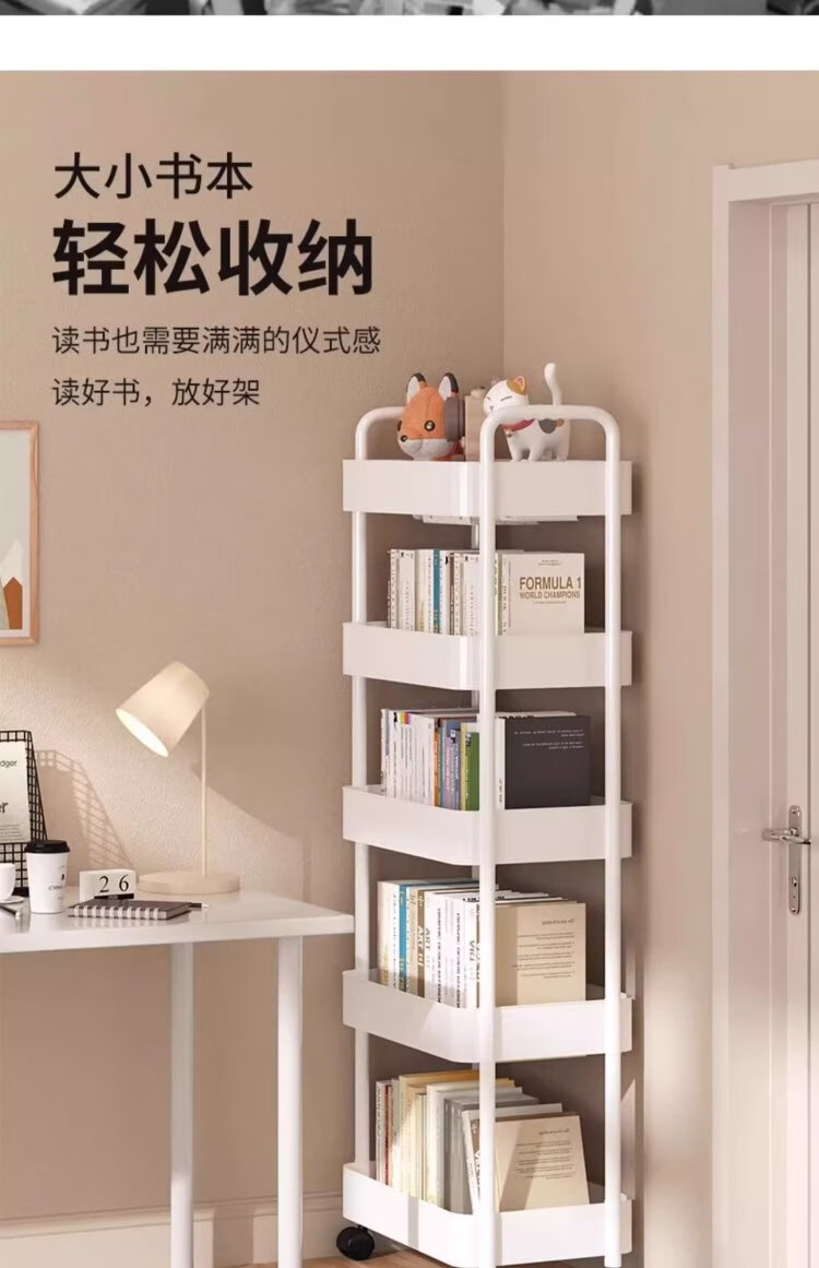 Xinwujia Bookshelf Trolley Storage Rack Desktop Storage Rack Simple Household Toy Bookcase with Wheels Mobile Floor-standing Snacks 3-layer-Milk White Free 4 Universal Wheels