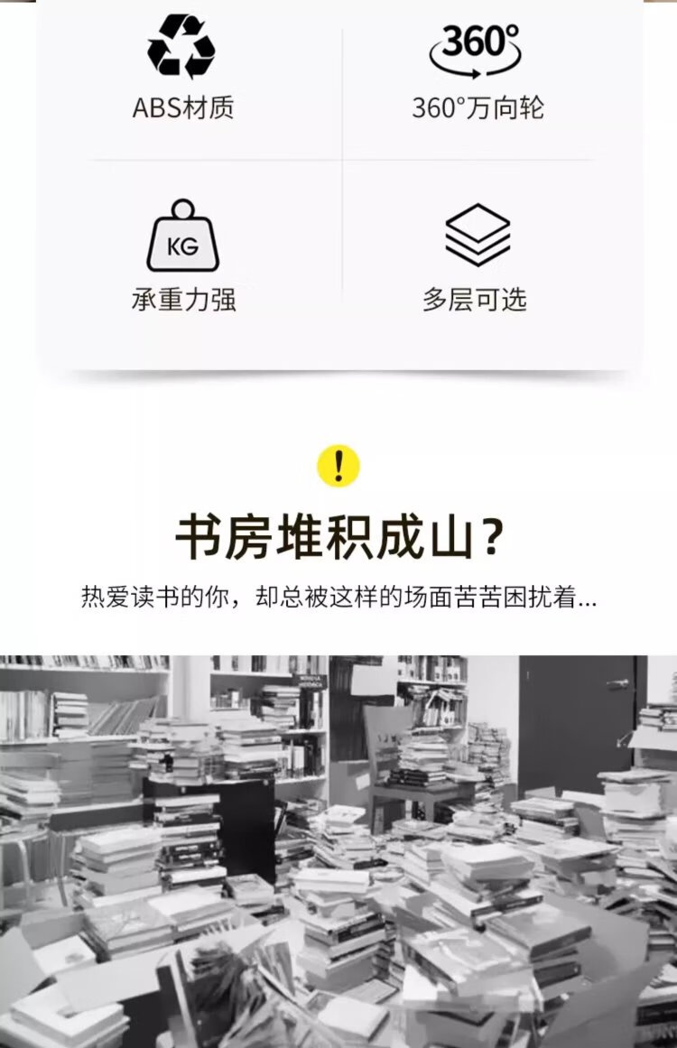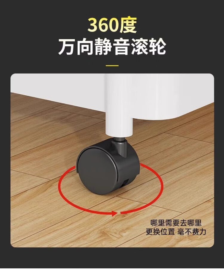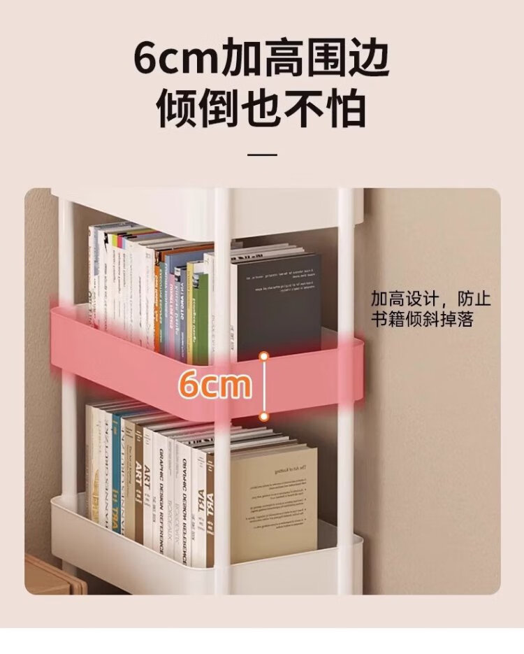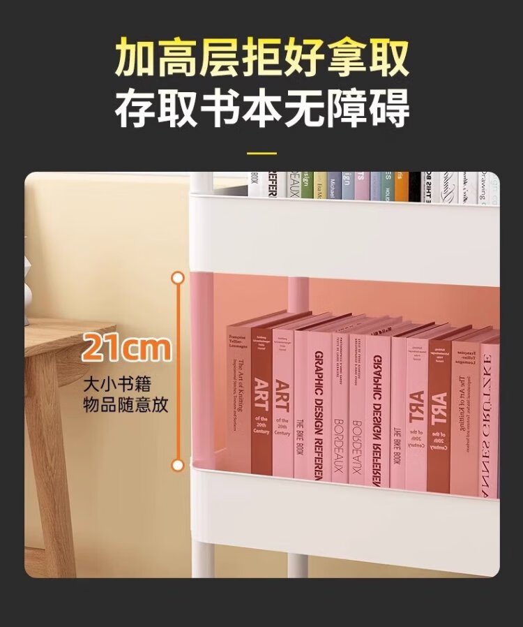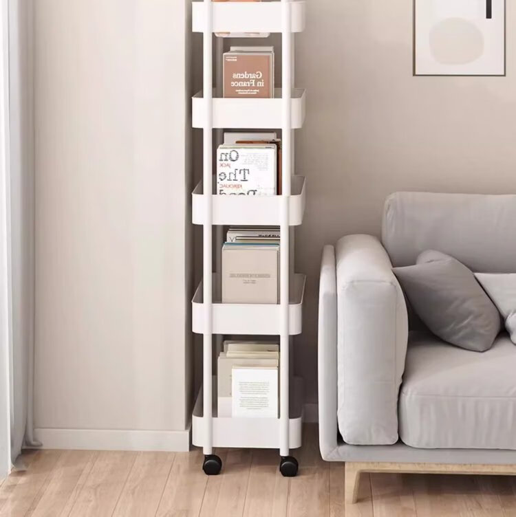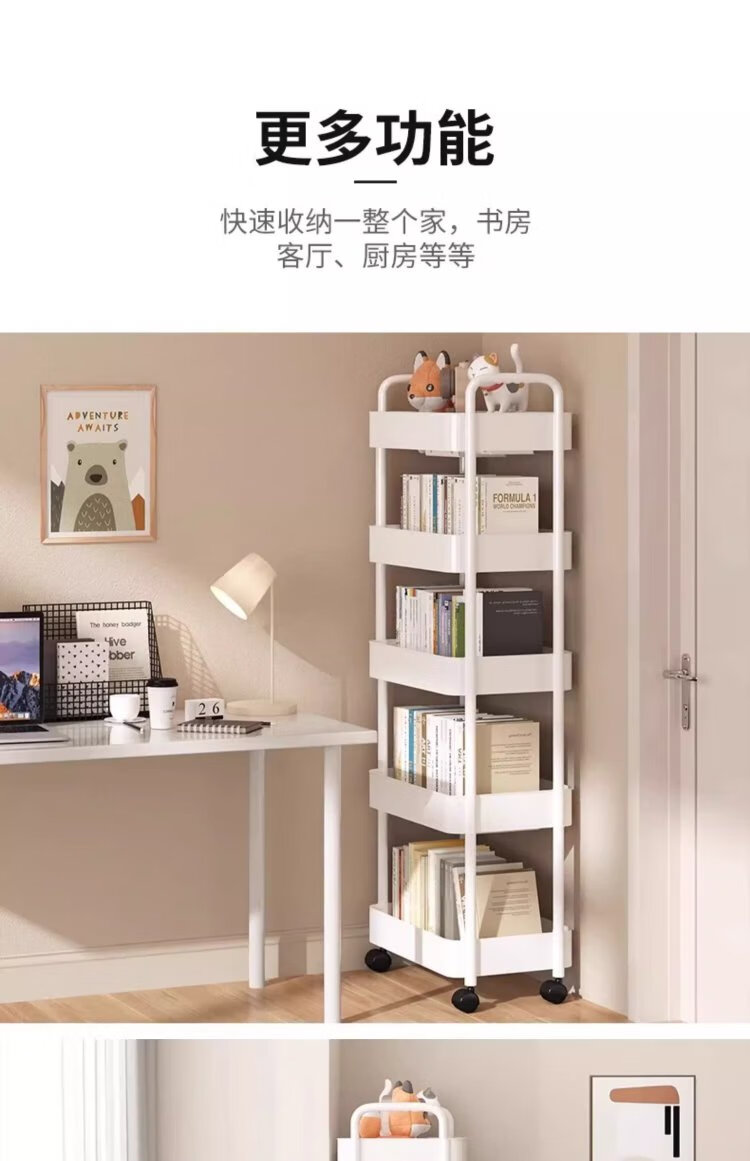 Xinwujia Bookshelf Trolley Storage Rack Desktop Storage Rack Simple Household Toy Bookcase with Wheels Mobile Floor-standing Snacks 3-layer-Milk White Free 4 Universal Wheels