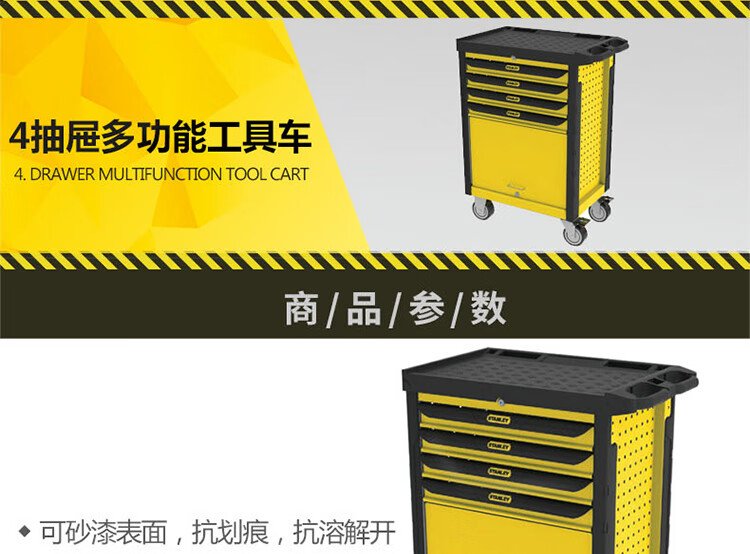 Stanley (STANLEY) Tool Cart Trolley Tool Cabinet Auto Repair Workshop Storage Rack Drawer Tool Storage Cabinet Mobile Workbench 4-Drawer Multi-Function Tool Cart 93-711-23