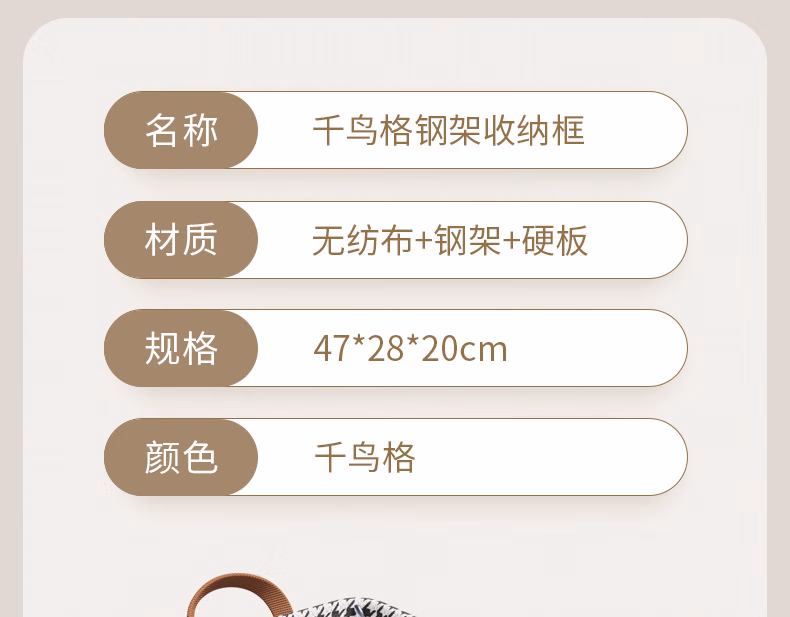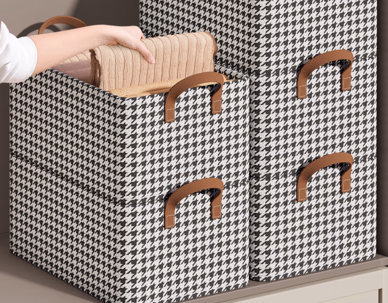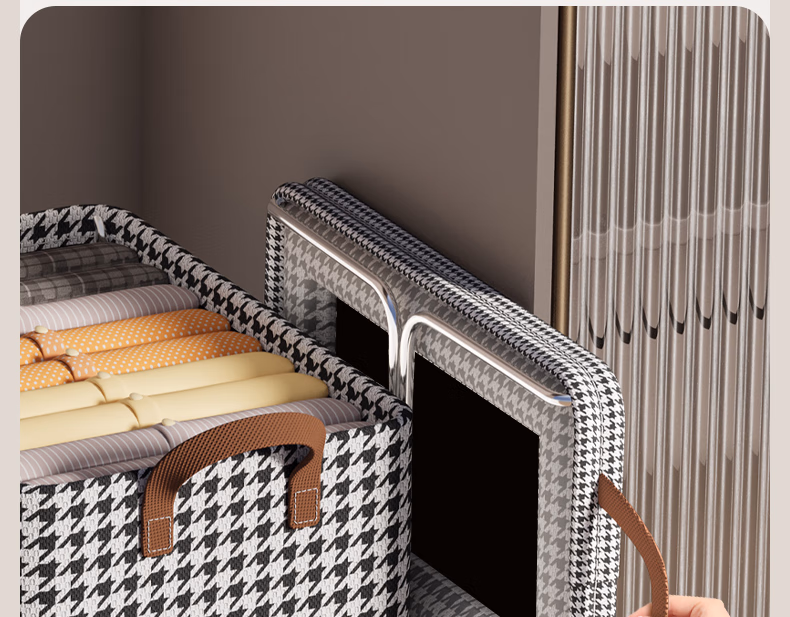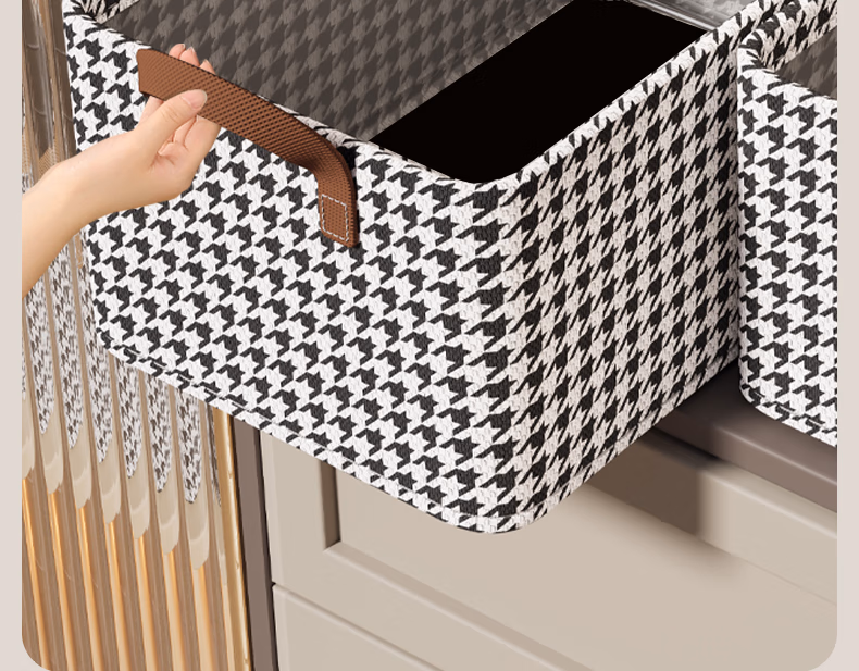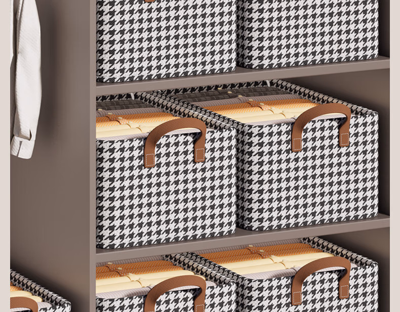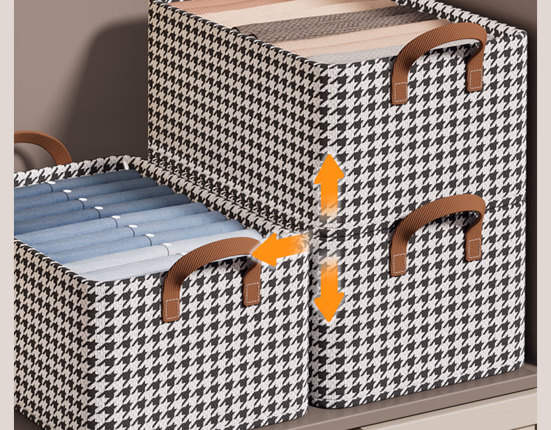 JD Logistics Houndstooth Clothes Storage Box Home Drawer-type Fabric Organizing Storage Box Cabinet Layered Storage Upgraded Model - With Steel Frame 1 piece 47*28*20cm