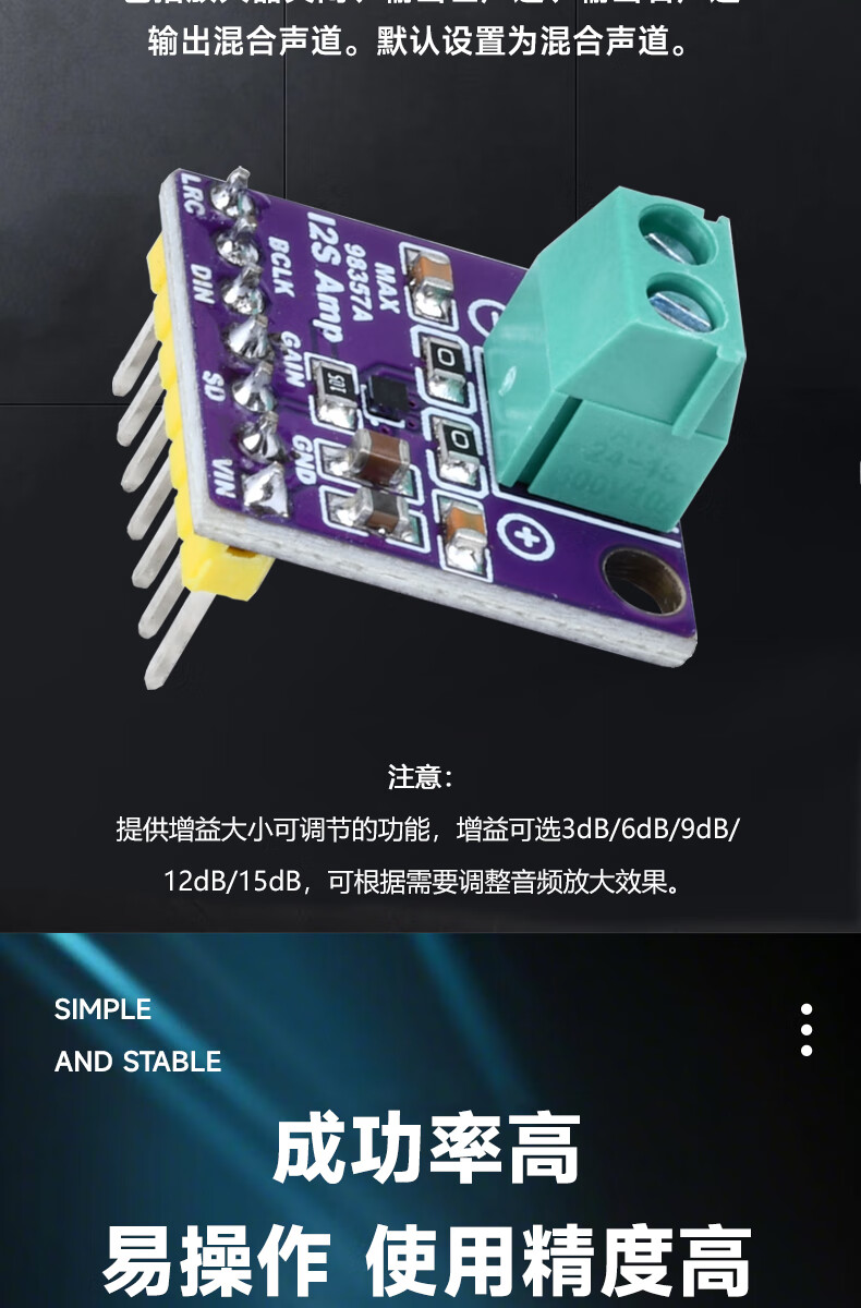 Dengshitang MAX98357 audio amplifier module I2S filter-free Class D signal amplifier Class D amplification power amplifier board BGA MAX98357-BGA does not weld