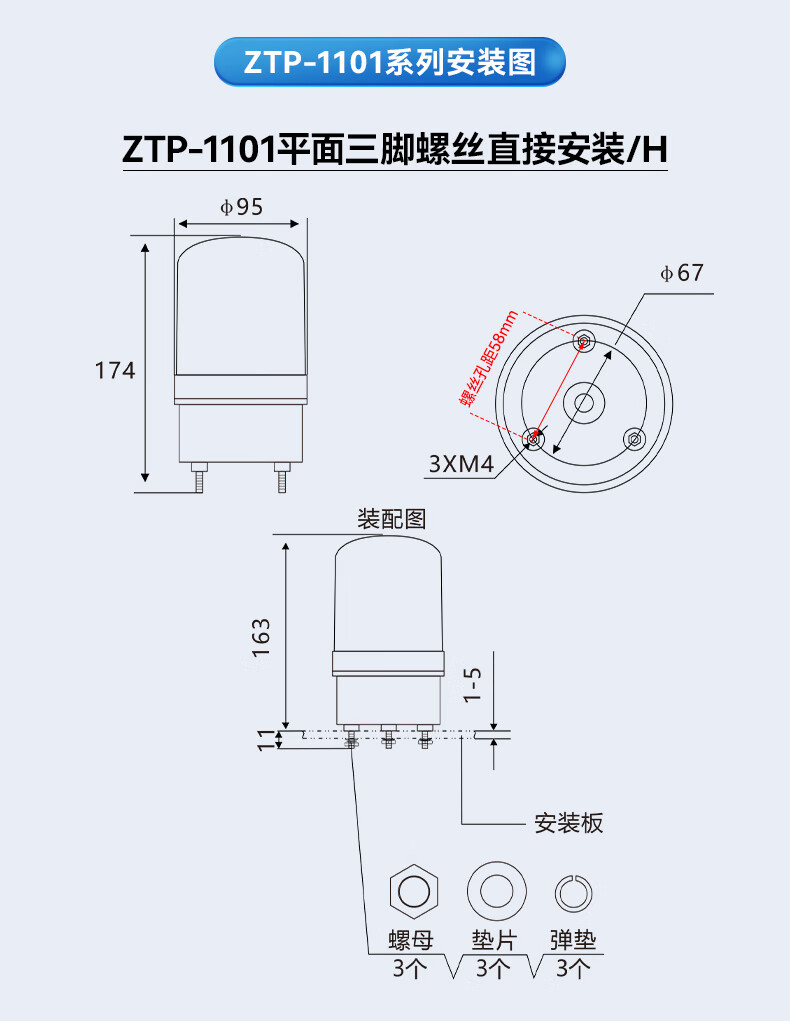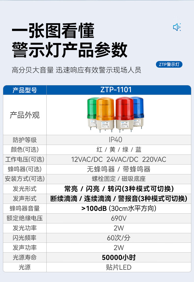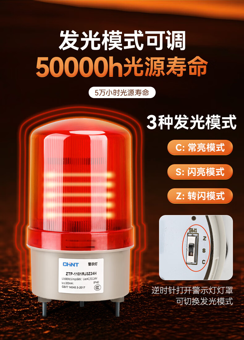 Chint (CHNT) sound and light alarm warning light rotating strobe LED light flashing light signal light ZTP-1101 yellow silent flashing magnetic suction 220V