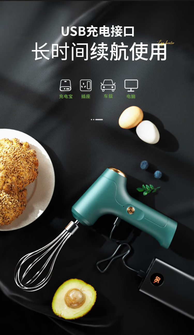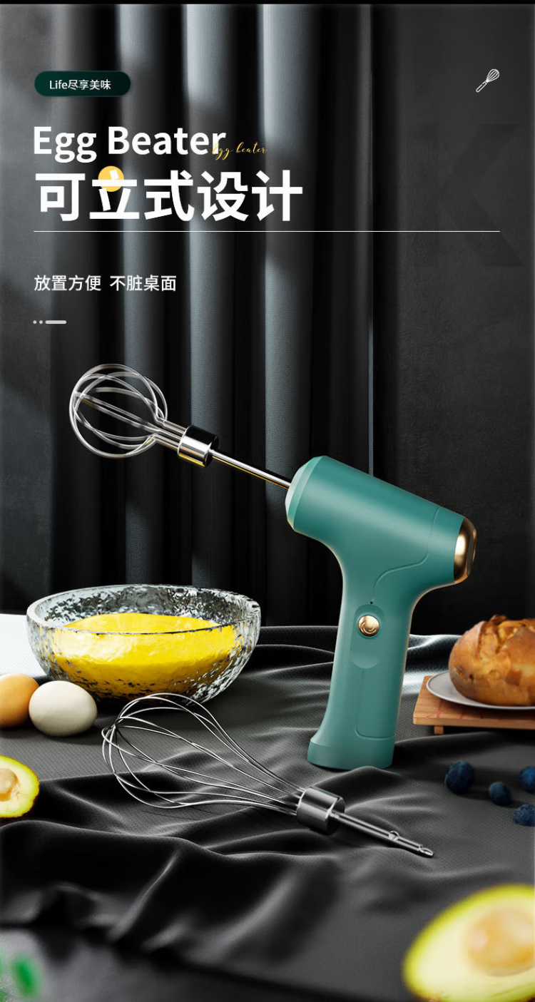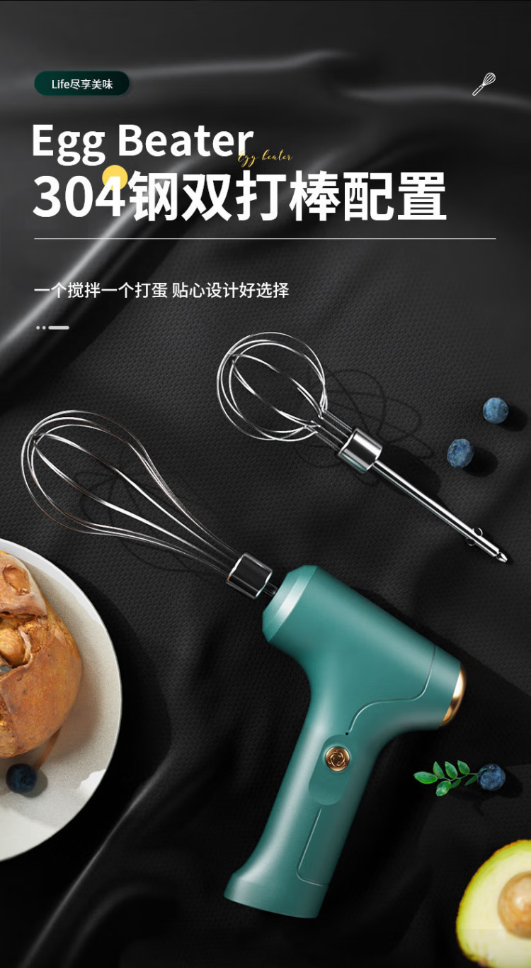 LNGA LANDGRE German imported quality electric egg beater small handheld household cream sauce egg mixer ice cream powder dyeing three-speed double head-green smart model