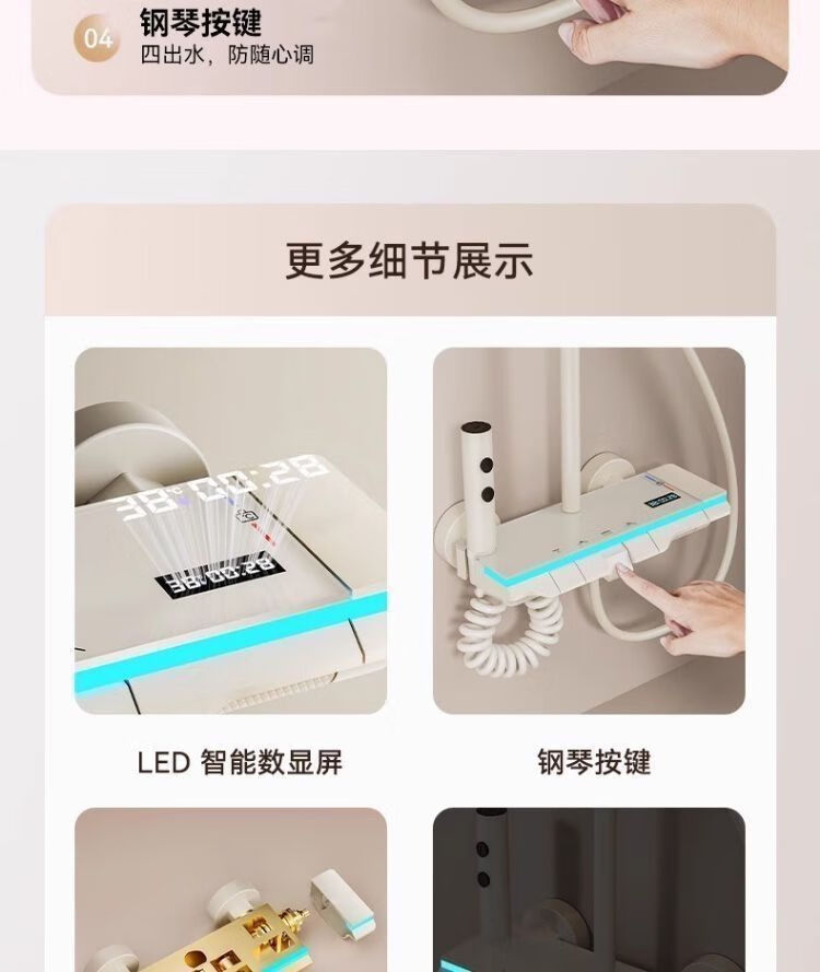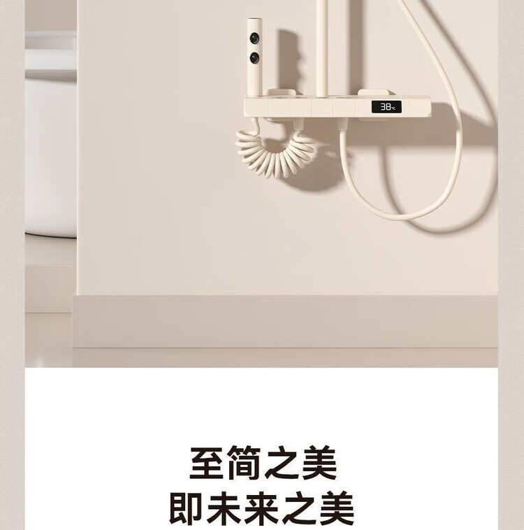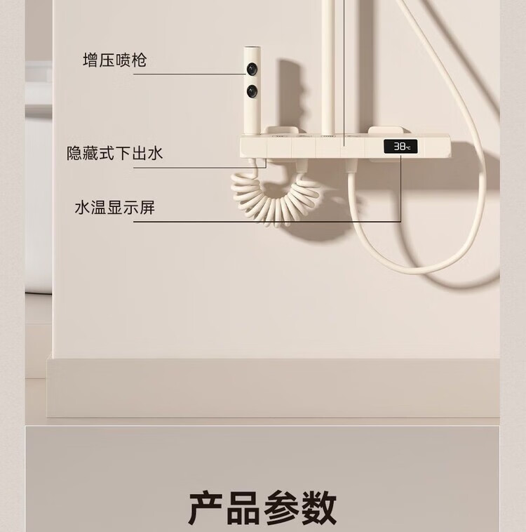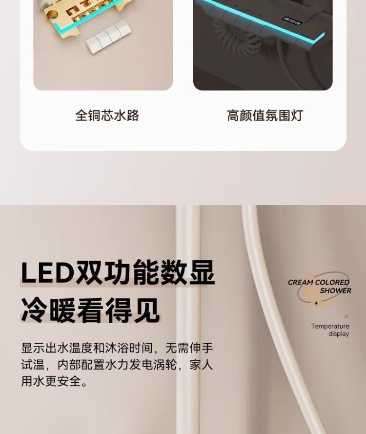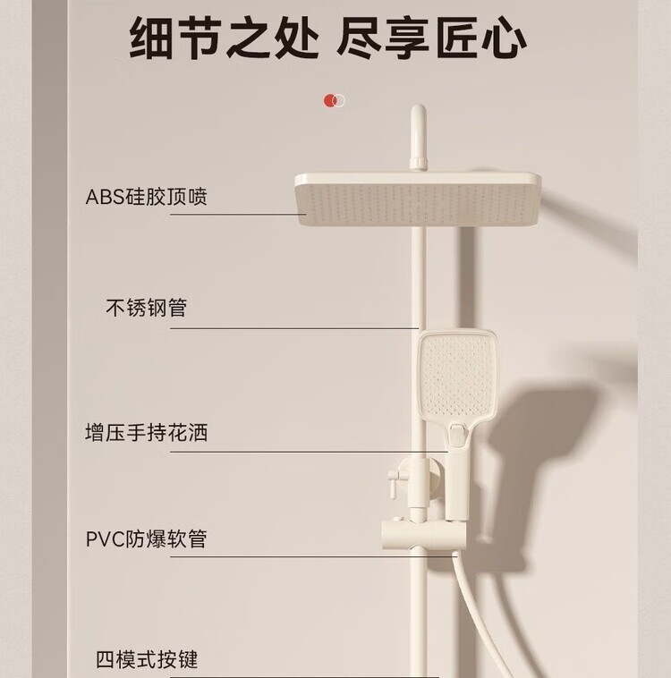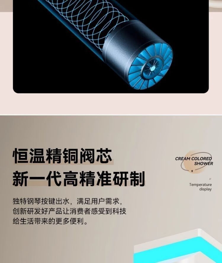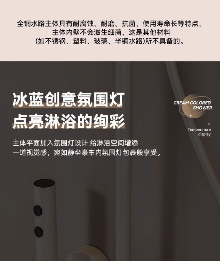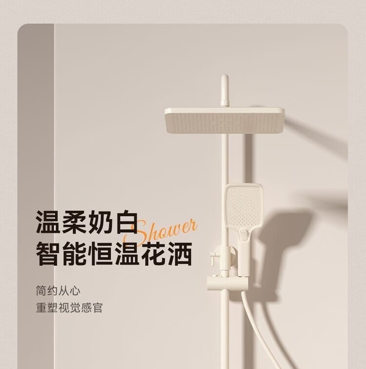 JOMOO New 2025 latest cream color all-copper shower head set with digital display constant temperature bathroom household piano supercharged shower head milk white upgraded PVD atmosphere light four-stop + constant temperature + digital display Master on-site installation No need to dismantle the old one Default concealed installation