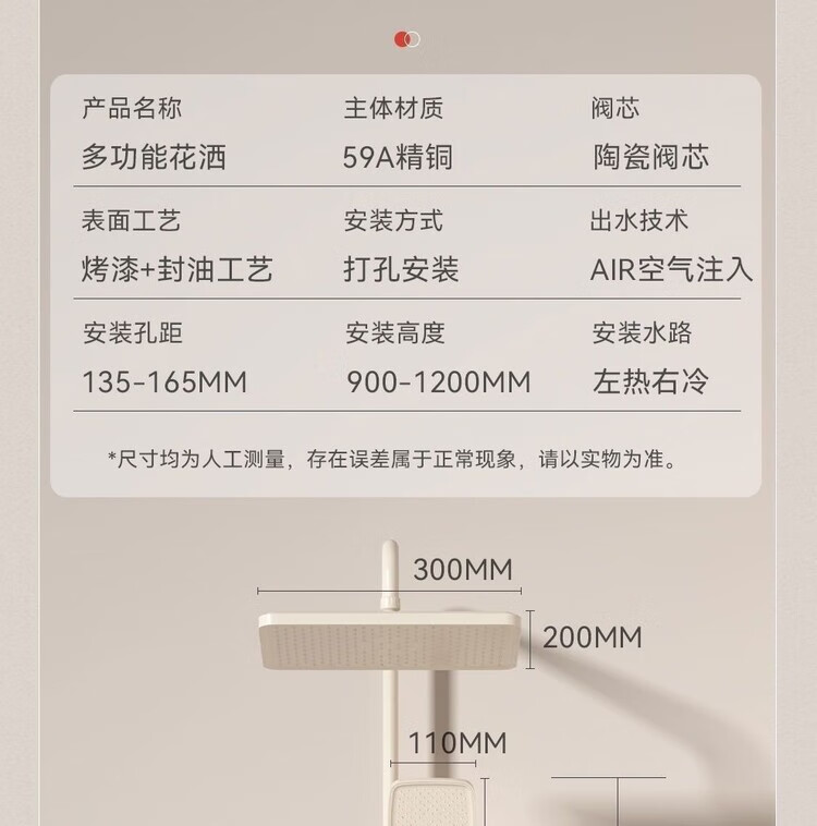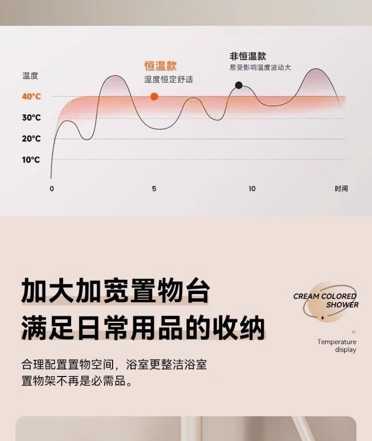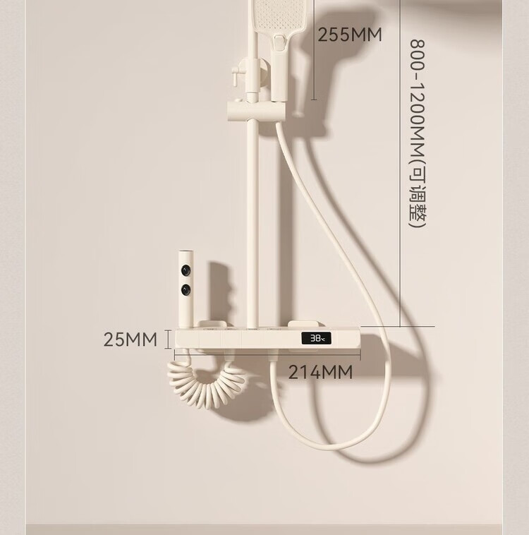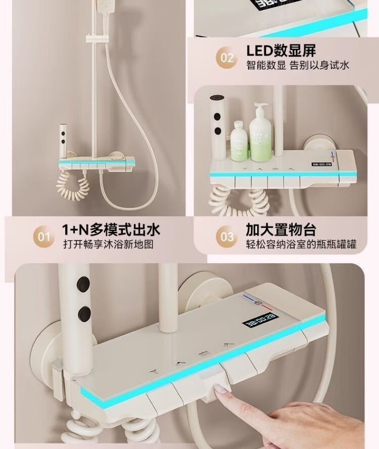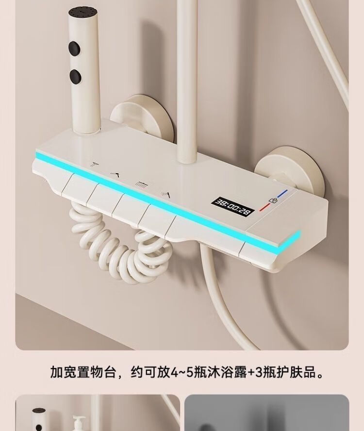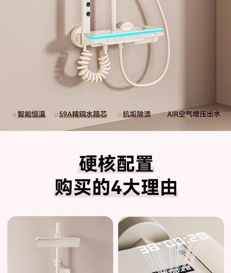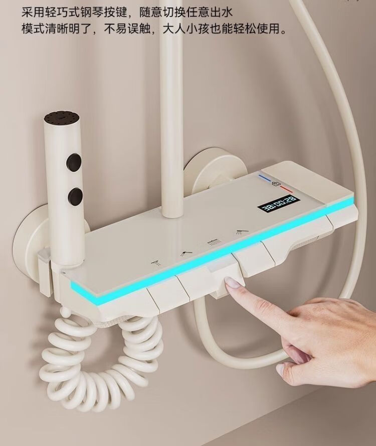 JOMOO New 2025 latest cream color all-copper shower head set with digital display constant temperature bathroom household piano supercharged shower head milk white upgraded PVD atmosphere light four-stop + constant temperature + digital display Master on-site installation No need to dismantle the old one Default concealed installation