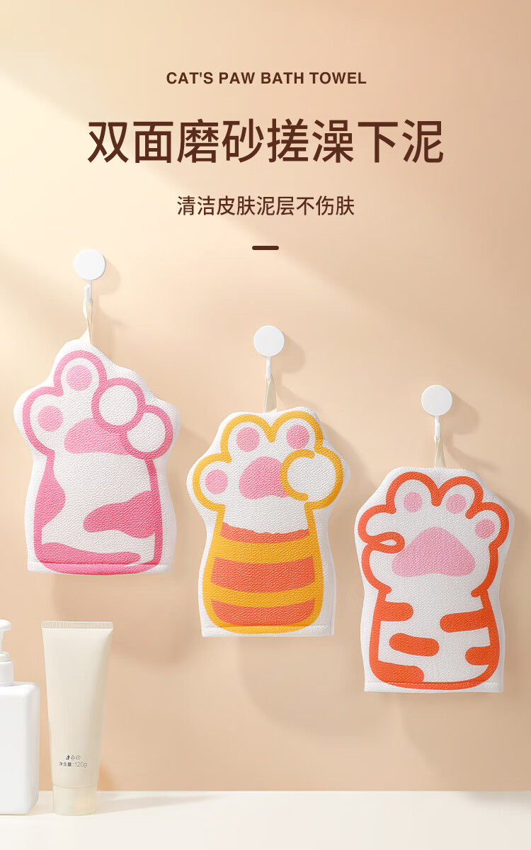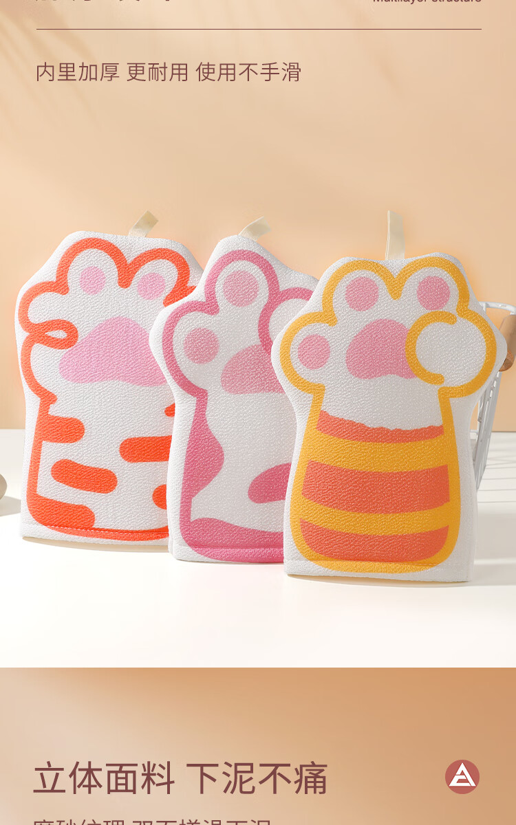 Creative art children's bath towel bath towel bath towel rub mud treasure exfoliating mud rub artifact strong bath towel for men and women 2.0 soft fine sand orange cat claw bath towel