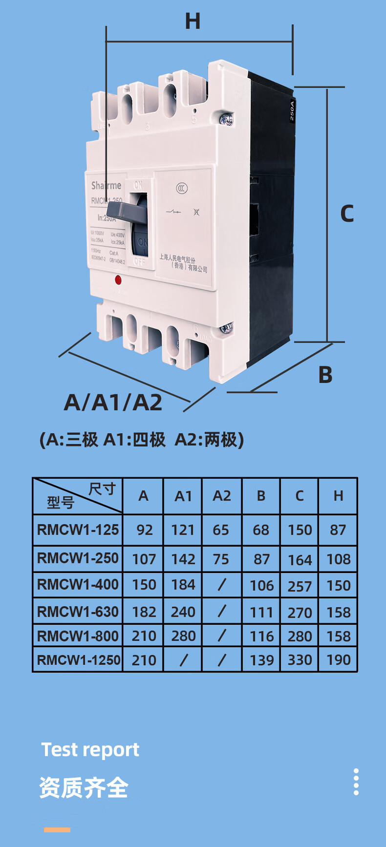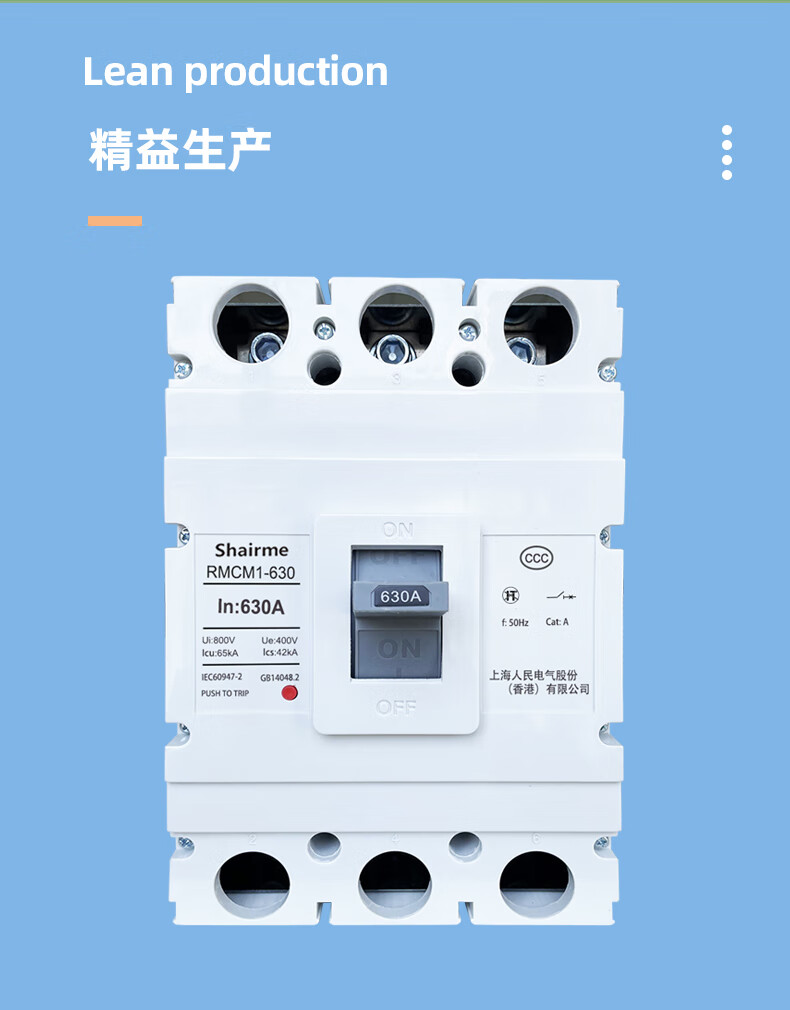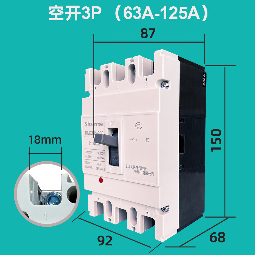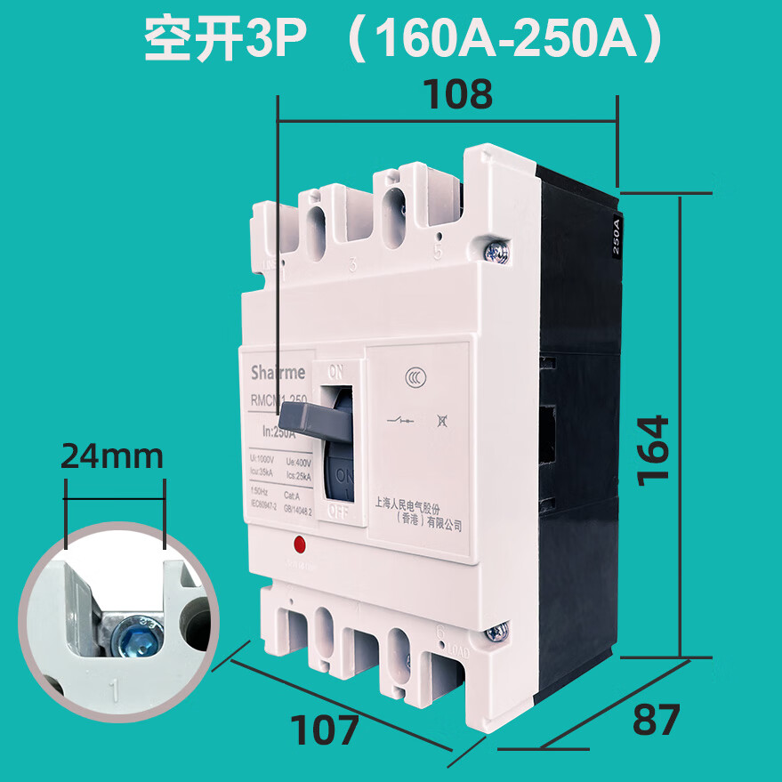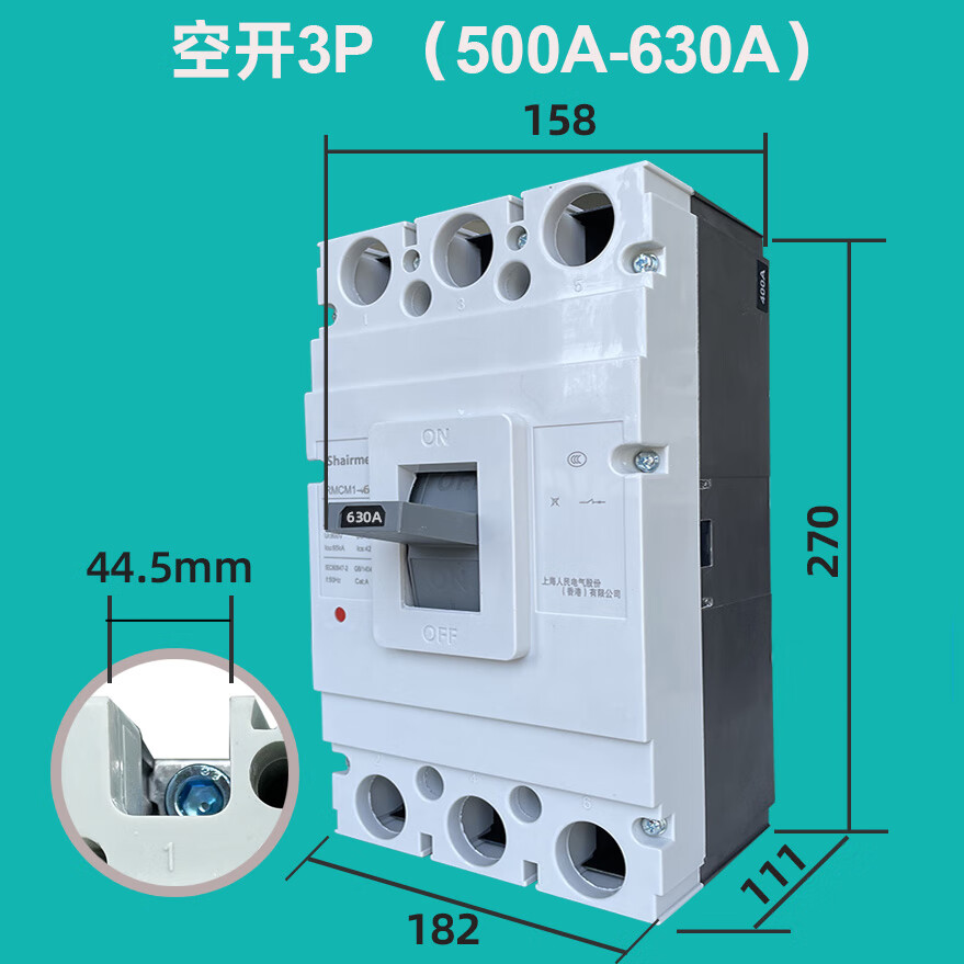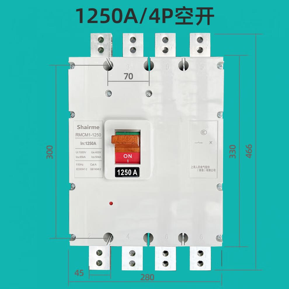 Shanghai People's CM1 plastic case circuit breaker air switch three-phase 3P four-wire air switch 125A250A400A630A 1600A 4p