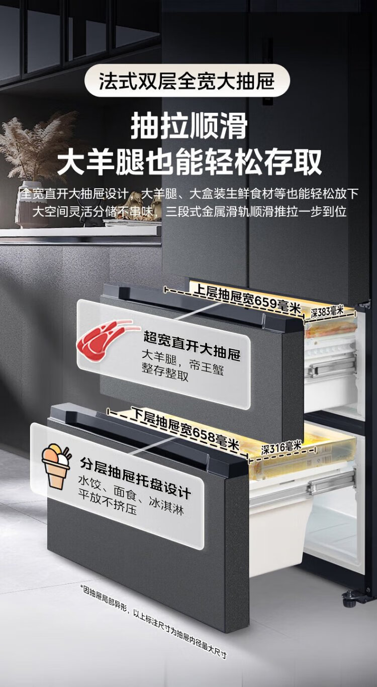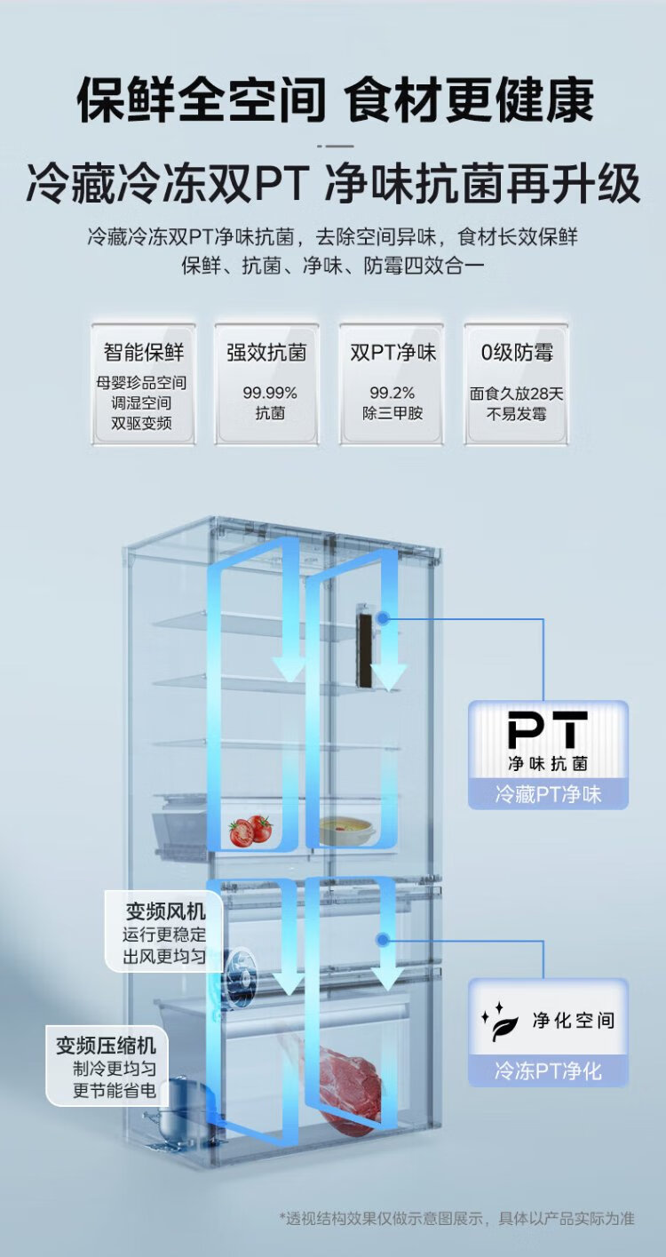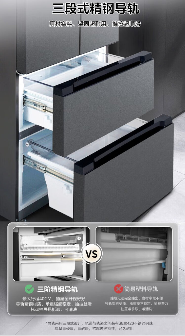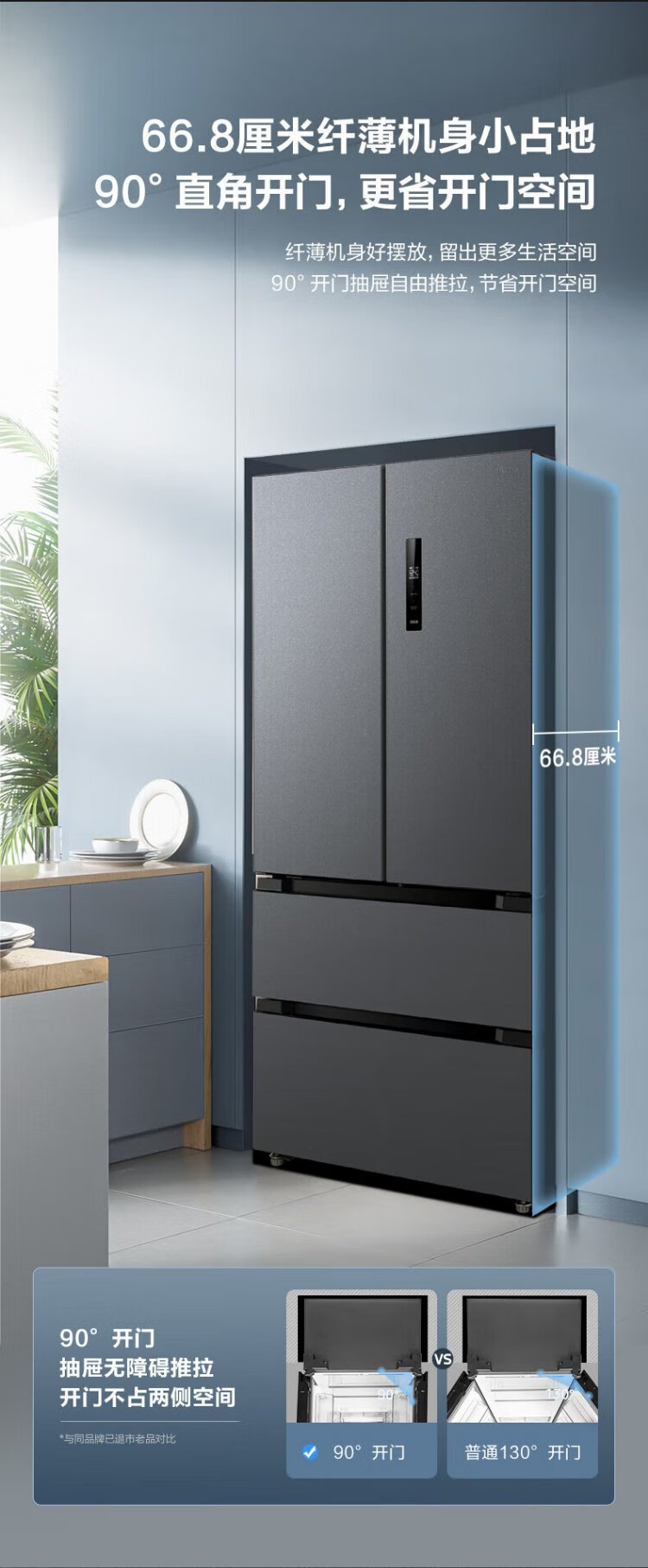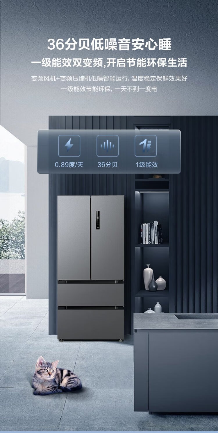 Midea 532 French multi-door four-door refrigerator with variable frequency, first-level energy efficiency, household air-cooling, frost-free, variable frequency, dual system, dual cycle, maternal and infant household 506L, government subsidy, dual system, dual cycle, 532 all-purpose machine emperor - Cangwan Gray