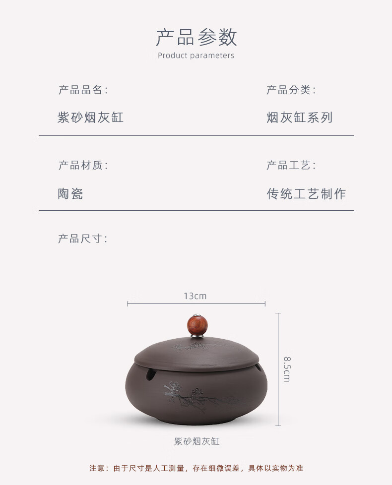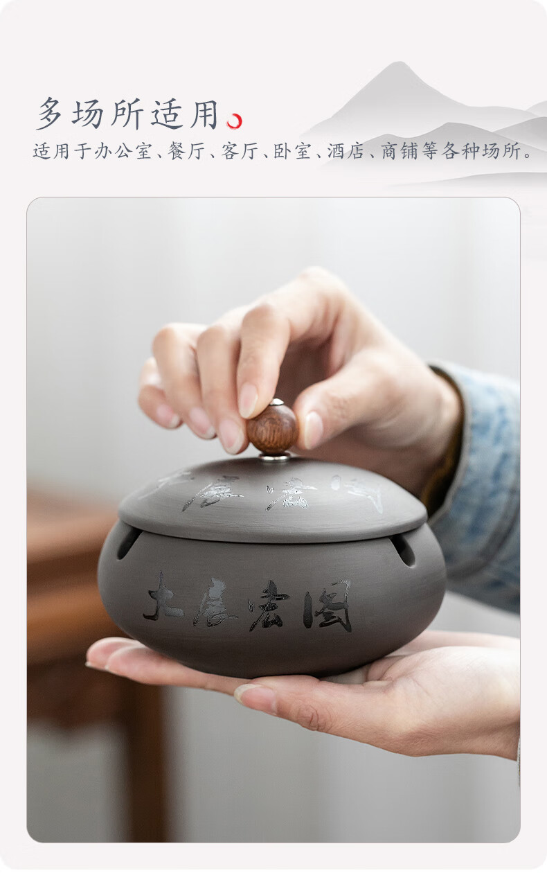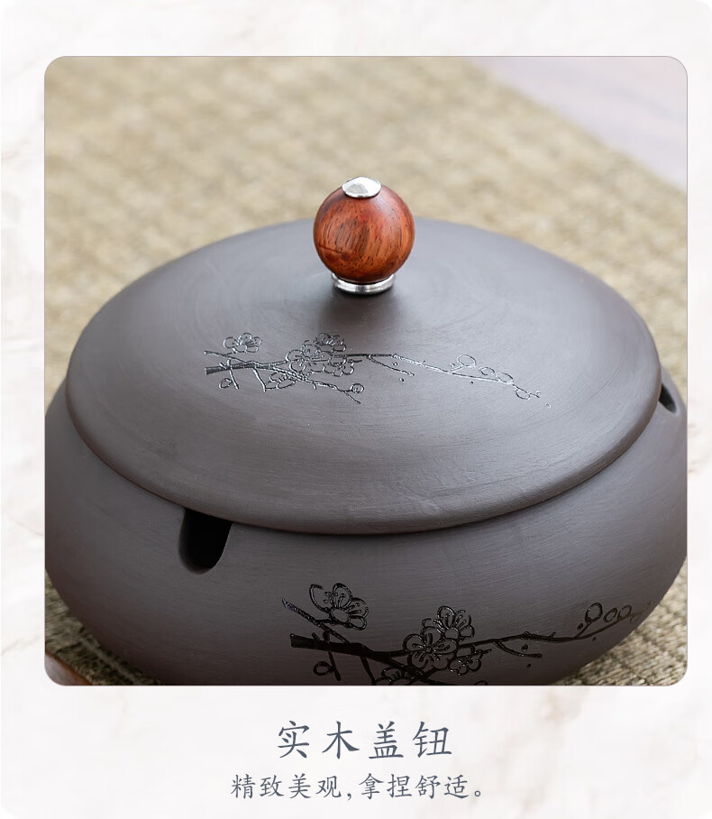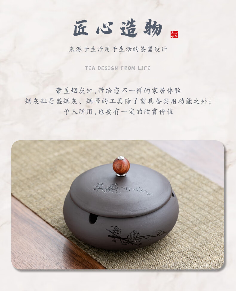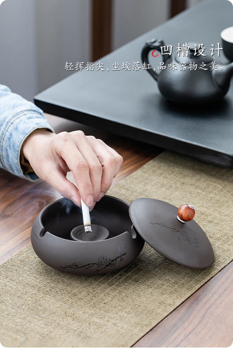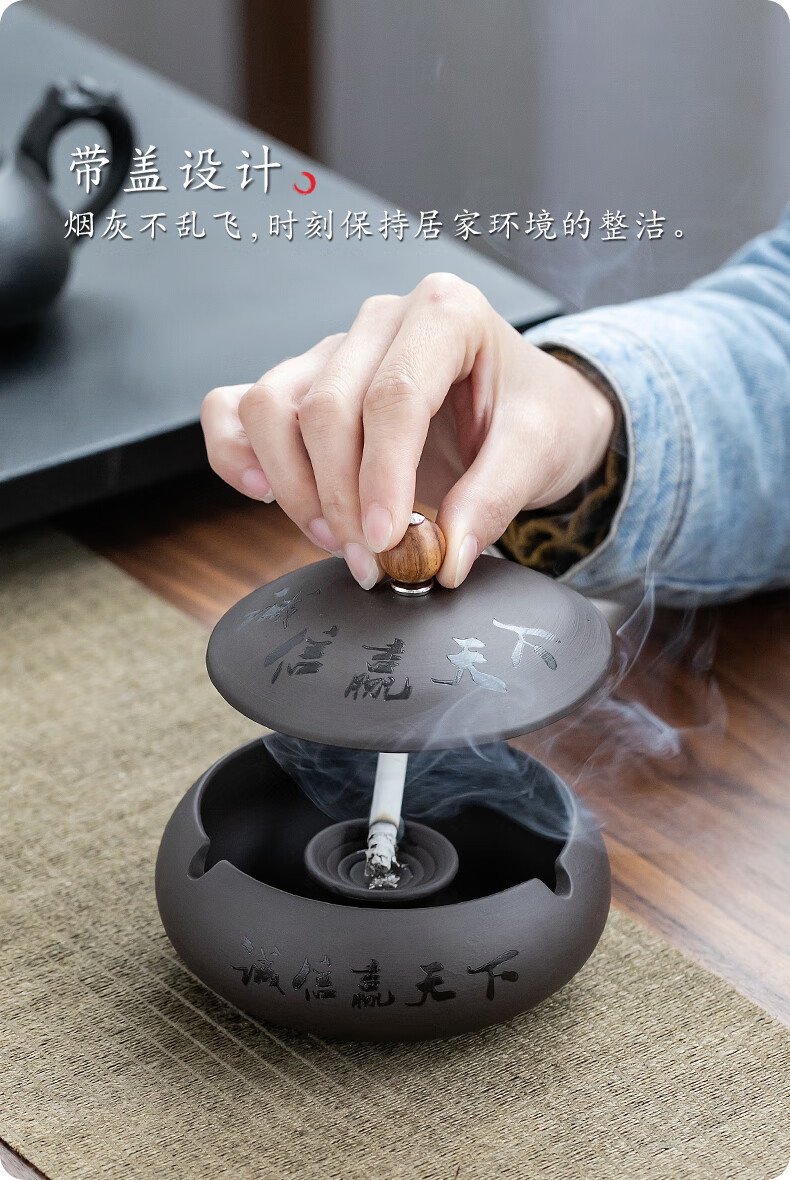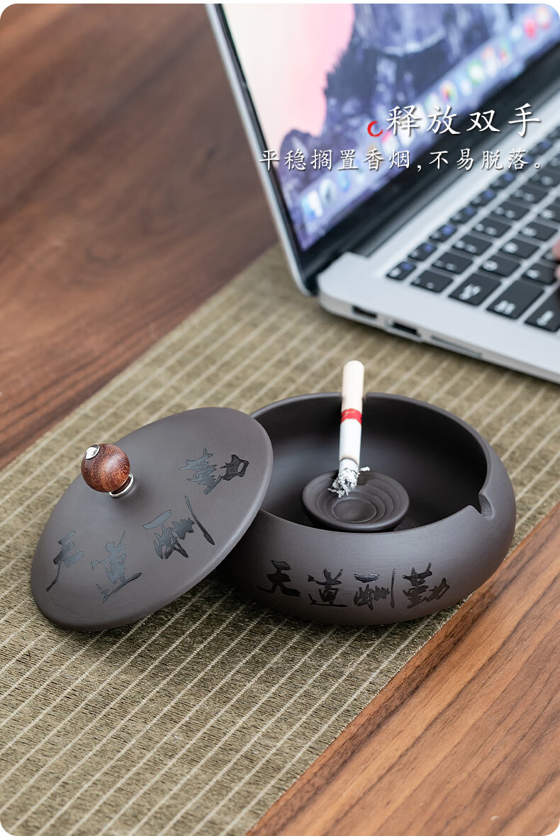 Tuojin German imported high-quality anti-fly ash creative personality home living room office commercial large ceramic ashtray with lid customized purple sand ashtray - Houde Zaiwu