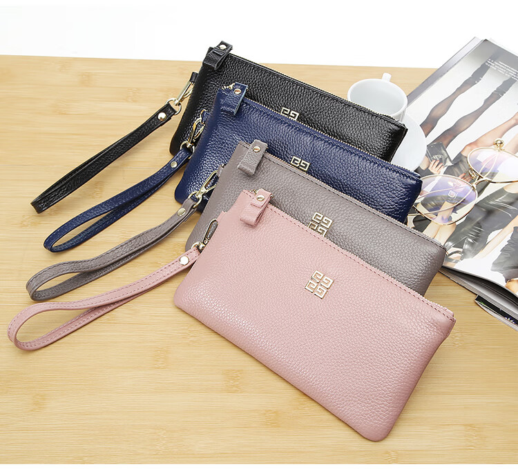 Chongsukei small&ck first layer cowhide clutch bag women's bag 2025 new coin purse long temperament soft leather small clutch elephant gray