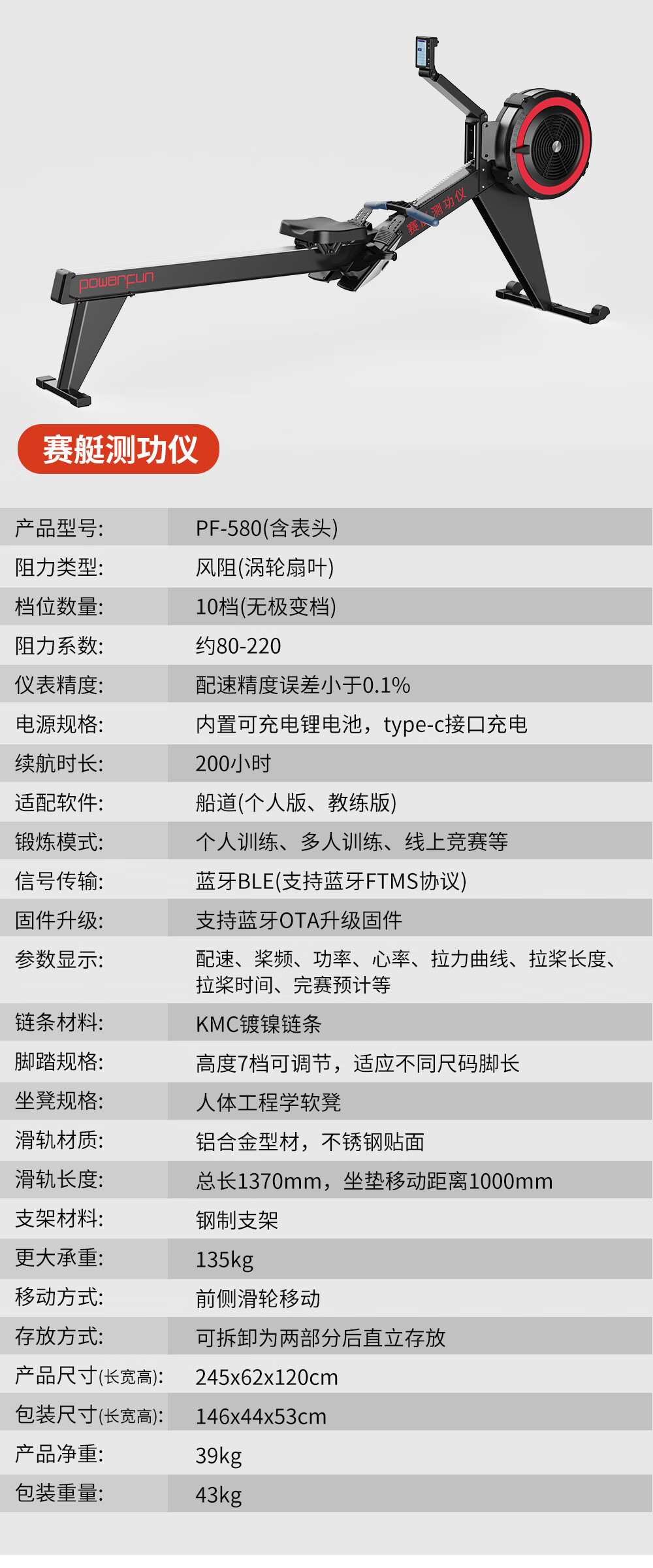 POWERFUN Wind Resistance Rowing Machine Home Indoor Training Silent Rowing Machine Power Measurement Sports Aerobic Gym Rowing New Style PF580 Black (Heightened Instrument Model)